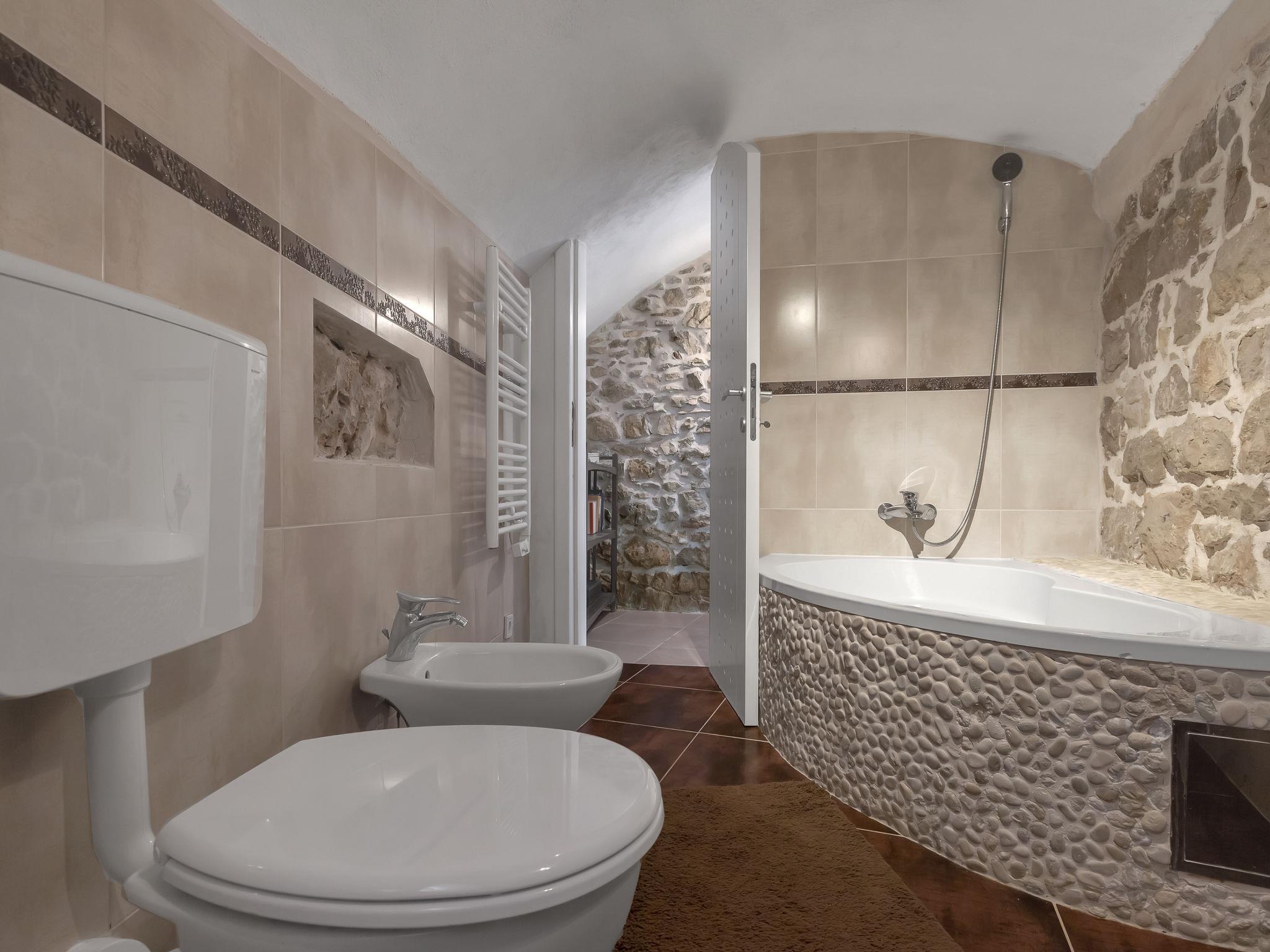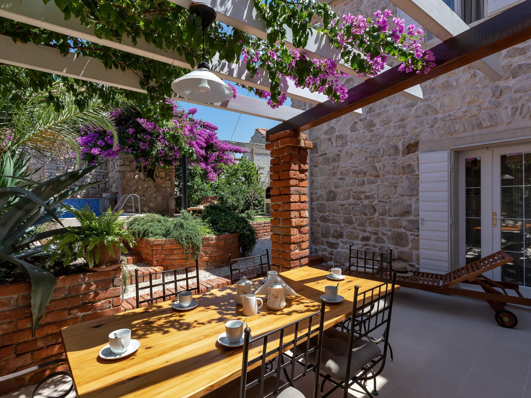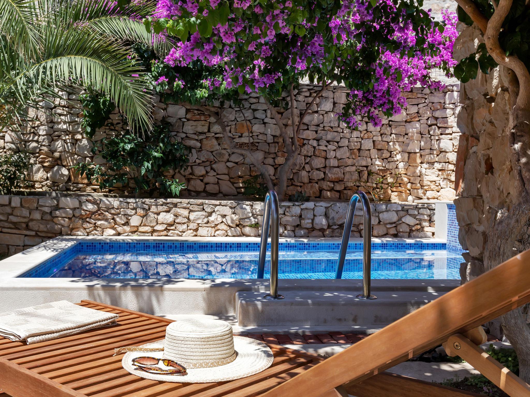Single-family house "Marijan", 2 storeys. In a sunny position, excellent location: right in the centre but still quiet, in the heart of the city, 50 m from the sea, 50 m from the beach. Private: property 120 m2 (fenced), well-kept terraced garden, swimming pool angular, heated (4 x 3 m, 14 m2, depth 150 cm, seasonal availability: 10.Apr. - 10.Oct.) with salt-electrolysis pool-cleaning system. Outdoor shower, barbecue. In the house: internet access, roof terrace, washing machine. Parking (for 2 cars) at the house on the premises. Shop, restaurant 400 m, bus stop 1 km, pebble beach 50 m. Swimming pool with hydromassage. Parking space for 2 small cars.
