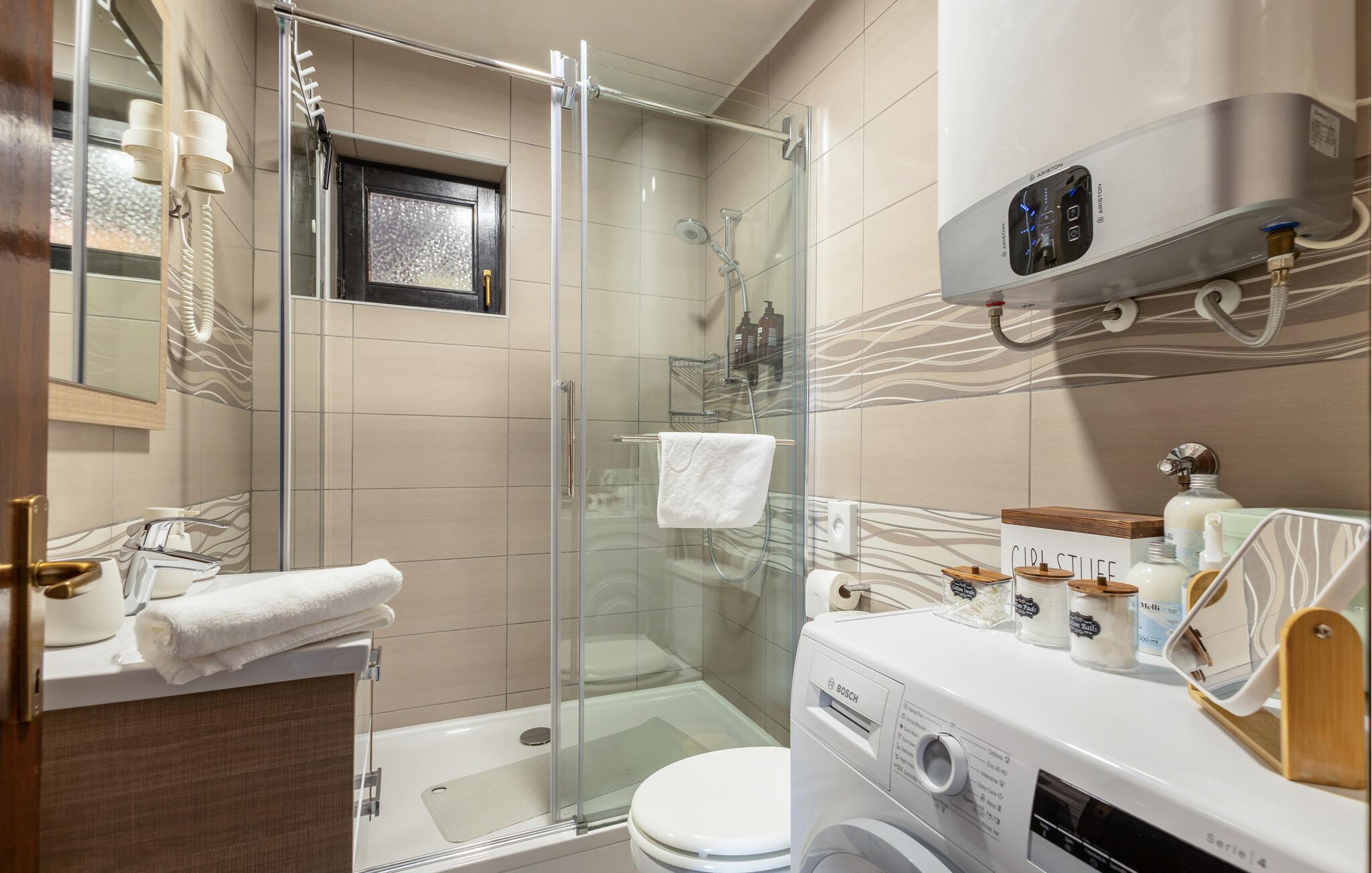 - WC mit warmem und kaltem Wasser, Dusche