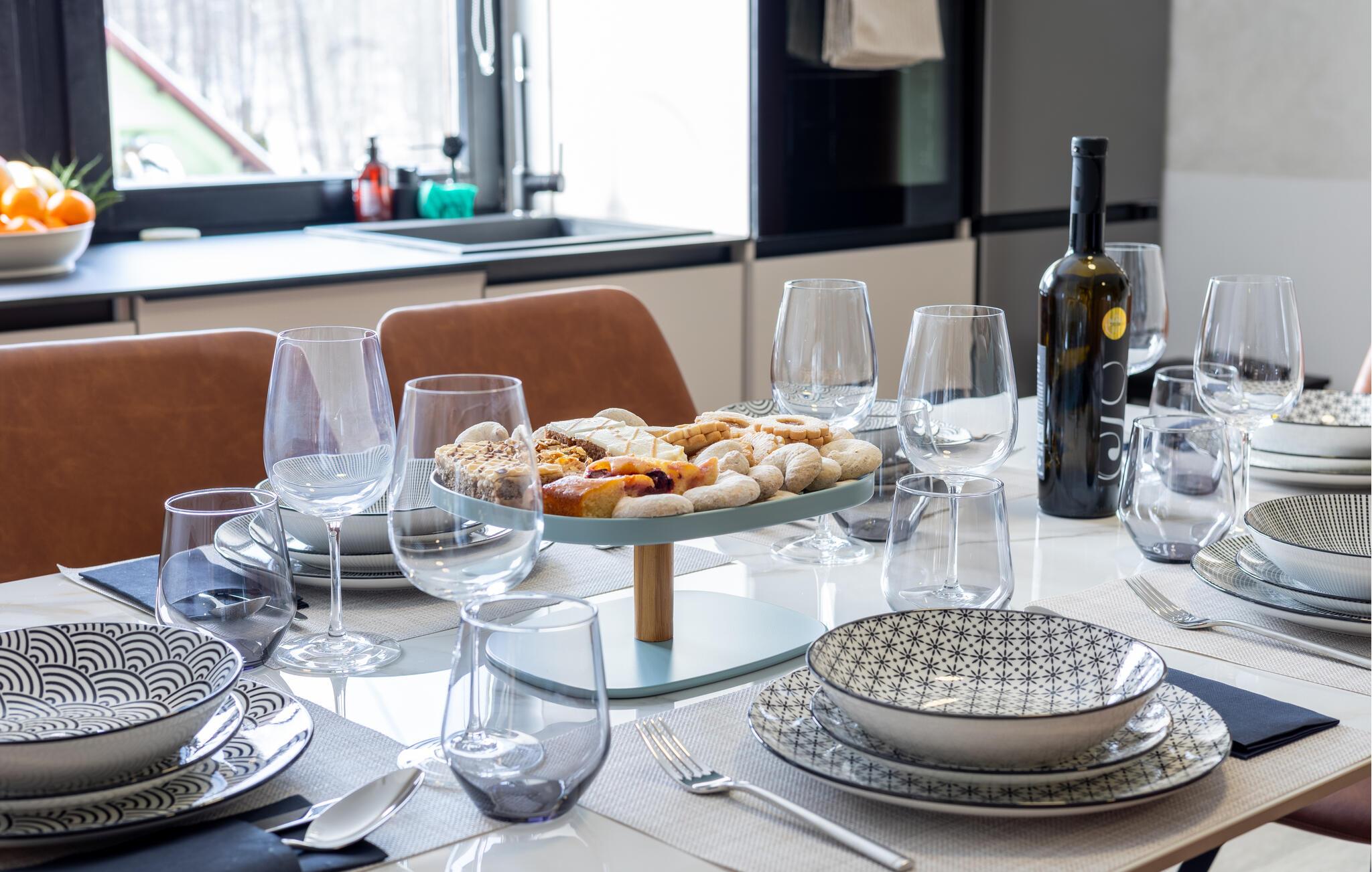 Das gekonnt eingerichtete Interieur wird Sie begeistern und die eleganten Töne in Kombination mit einheimischen Elementen verleihen dem Haus einen besonderen Charme. Abgerundet wird Ihr Aufenthalt durch eine überdachte Terrasse mit fantastischem Blick auf die Natur. Eine rustikale Taverne mit einem großen offenen Kamin ist die perfekte Wahl, um Köstlichkeiten zuzubereiten und angenehme Abende mit Familie und Freunden zu verbringen.