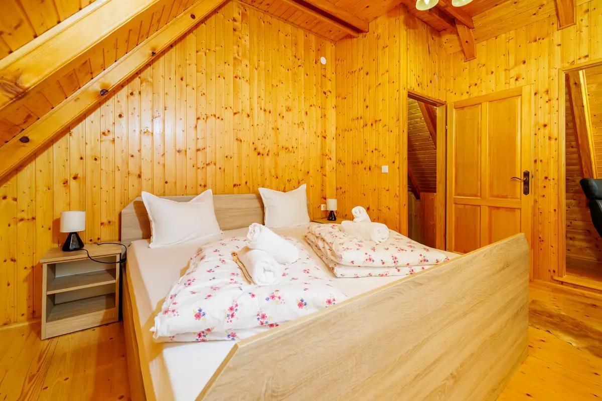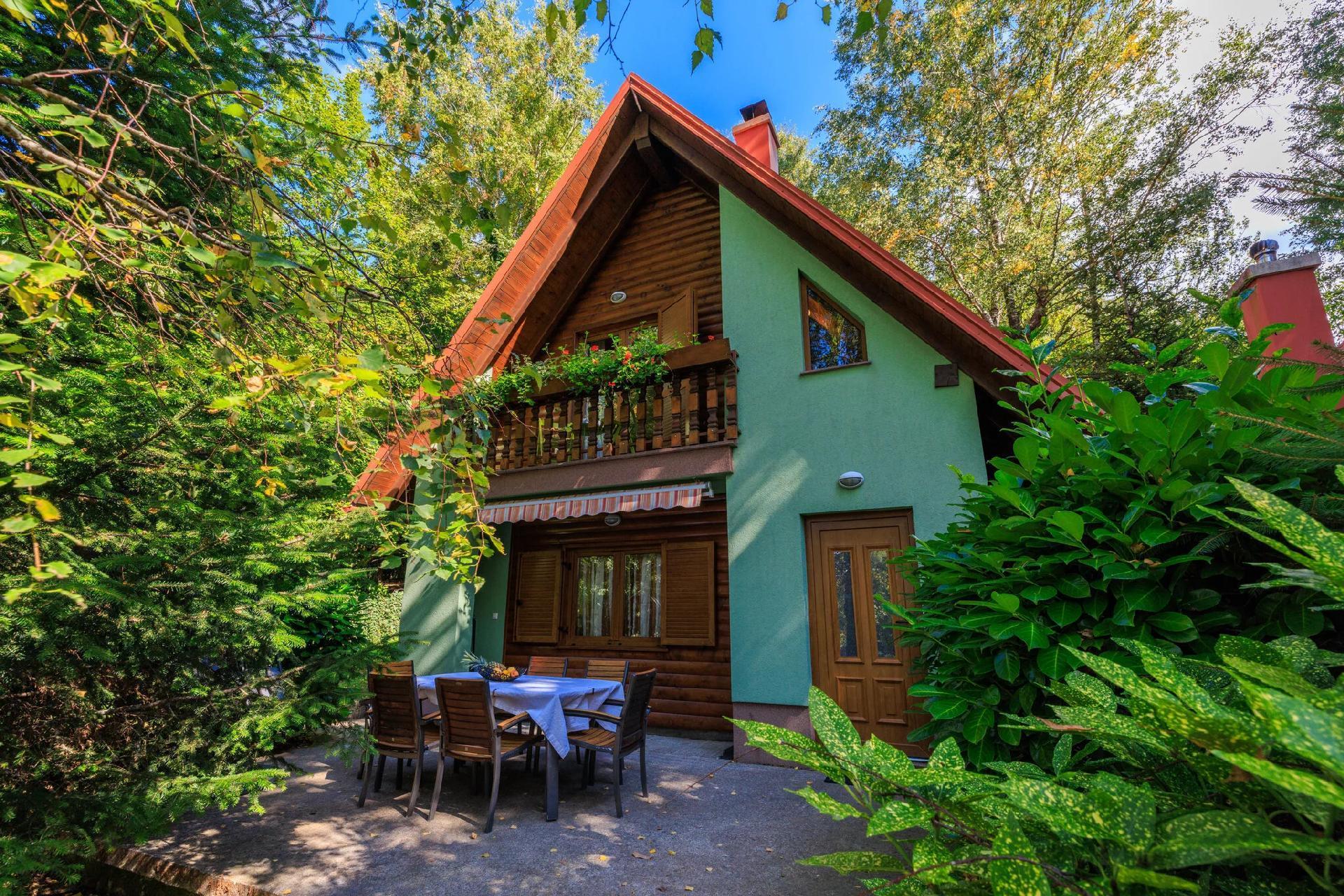 Holiday home in the green hinterland of Novi Vinodolski – Pure nature in BrezeThis charming holiday home in the idyllic village of Breze accommodates 4-5 people and is the perfect retreat for anyone seeking peace, nature, and relaxation. Nestled in the forest and surrounded by lush greenery, you'll enjoy absolute privacy and a relaxed atmosphere – ideal for a holiday far from the hustle and bustle of the coast, yet still within a short drive of the sea.On the ground floor, you'll find a bright living and dining area with a cozy fireplace and a fully equipped kitchen where you can cook and enjoy meals together. A bathroom provides additional comfort. Upstairs, you'll find two bedrooms and a small additional room, which is a wonderful retreat for reading, meditating, or relaxing.The holiday home also offers numerous outdoor opportunities for relaxation. The private terrace with a barbecue is perfect for spending convivial evenings, while another terrace invites you to relax amidst nature. In the garden, which is shared with another house, you'll find a jacuzzi, a small pool, and a trampoline. Private parking is available directly at the house, and there's a reserved free parking space for guests who want to drive to the seaside in Novi Vinodolski.Pets are also welcome and are allowed for a small daily fee of €7. Whether for a family vacation, a romantic getaway, or a small group of friends, this holiday home combines comfort, nature, and relaxation in a dream setting.AmenitiesLiving AreaLiving/dining area and kitchen are in one room, sofa bed for 1 person, access to balcony/terrace, tiled floor, satellite TVKitchenDishes, kitchen towels, combined electric/gas stove, 4 burners, oven, refrigerator with freezer, coffee machine, kettle, toaster, dishwasherBedroomBedroom with 2 single beds, parquet flooringBedroom with double bed, access to balcony/terrace, parquet flooringBathroomBathroom with toilet, showerBalcony & TerracePrivate balcony, partially covered, seating, balcony size: 3 m²Private terrace, shared terrace, seating, loungers, terrace size: 20 m²Further InformationGarden for use, barbecue available, private parking on site, swimming pool (10 m²), whirlpool, pets allowed (for a fee: €7.00 per day / per pet), bed linen provided, towels provided, washing machine in the accommodation, internet via Wi-FiA shared terrace in the garden, which is shared with another house, features a jacuzzi, a small assembly pool, and a trampoline.Private parking is available directly at the house, and there is a reserved free parking space for guests who wish to drive to the sea in Novi Vinodolski.DistancesSea 16 km, nearest beach 16 km, pebble beach 16.5 km, rocky beach 16 km, concrete sunbathing areas 16 km, town center 17 km, restaurant 16.3 km, supermarket 17.2 km, boat mooring 16.3 km, diving center 17 km