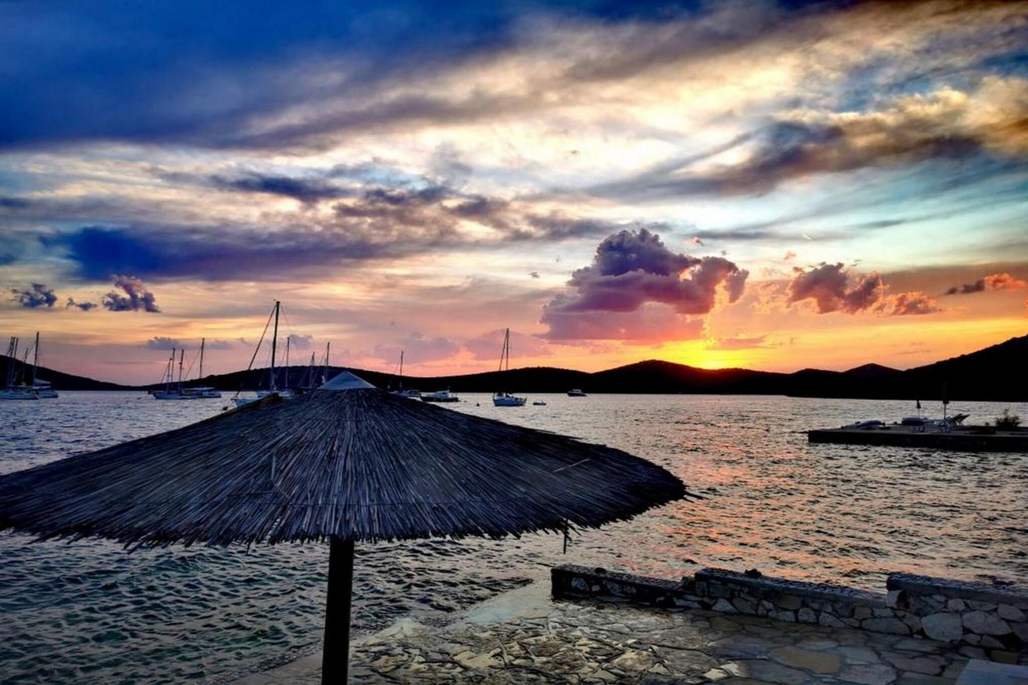 A charming studio apartment, this cozy 25?m² holiday home is ideal for couples or solo travelers seeking a peaceful beachfront retreat. It accommodates two guests with a queen-size bed and includes free air conditioning and Wi-Fi. While pets and youth groups are not permitted, guests can enjoy a private outdoor balcony with access to shared garden furniture, a BBQ area, and an outdoor shower. One parking space is available per apartment, and boat mooring is also offered on request for vessels up to 4 meters. Perfectly located in the scenic village of Brgulje, this studio sits just 10 meters from both sandy and rocky beaches, offering direct access to crystal-clear waters. A restaurant is also within walking distance, while other essentials like a supermarket can be found nearby. With its beachfront setting and tranquil surroundings, the property offers sweeping sea and garden views, ensuring a relaxing environment throughout your stay. Zadar Airport, located 64 kilometers away, makes this location convenient for international visitors. Inside, the open-plan kitchenette includes a fridge, freezer, coffee machine, and kitchenware for simple self-catering. Though compact, the apartment is well-equipped with a flat-screen TV, a first aid kit, and cleaning supplies. A washing machine and oven are available upon request. Smoking is not allowed indoors but permitted in designated outdoor areas, making this retreat a thoughtful choice for a quiet and comfortable Croatian coastal holiday.