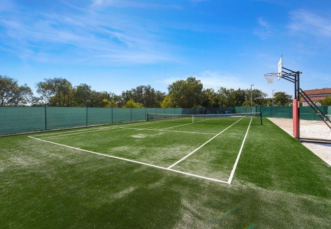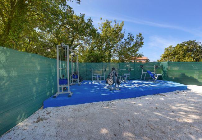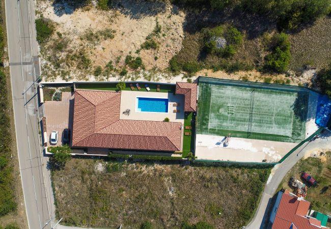 Exterior has large swimming pool surrounded by sun loungers, covered area with barbecue and summer kitchen, dining and lounge area. On one side villa offers tennis court and an outdoor exercise area. Also there is playground for children and parking space.