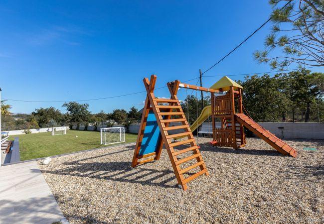 The fenced courtyard features a 40 m2 heated swimming pool, equipped with a waterfall and a counter-current swimming system, and guests can enjoy themselves on the poolside loungers or relax in the jacuzzi. The summer kitchen, equipped with a wood-burning fireplace and a large dining table, is perfect for preparing meals outdoors. The villa also offers a sauna, a children's playground, table tennis equipment, a small football pitch and outdoor seating for enjoying the fresh air.