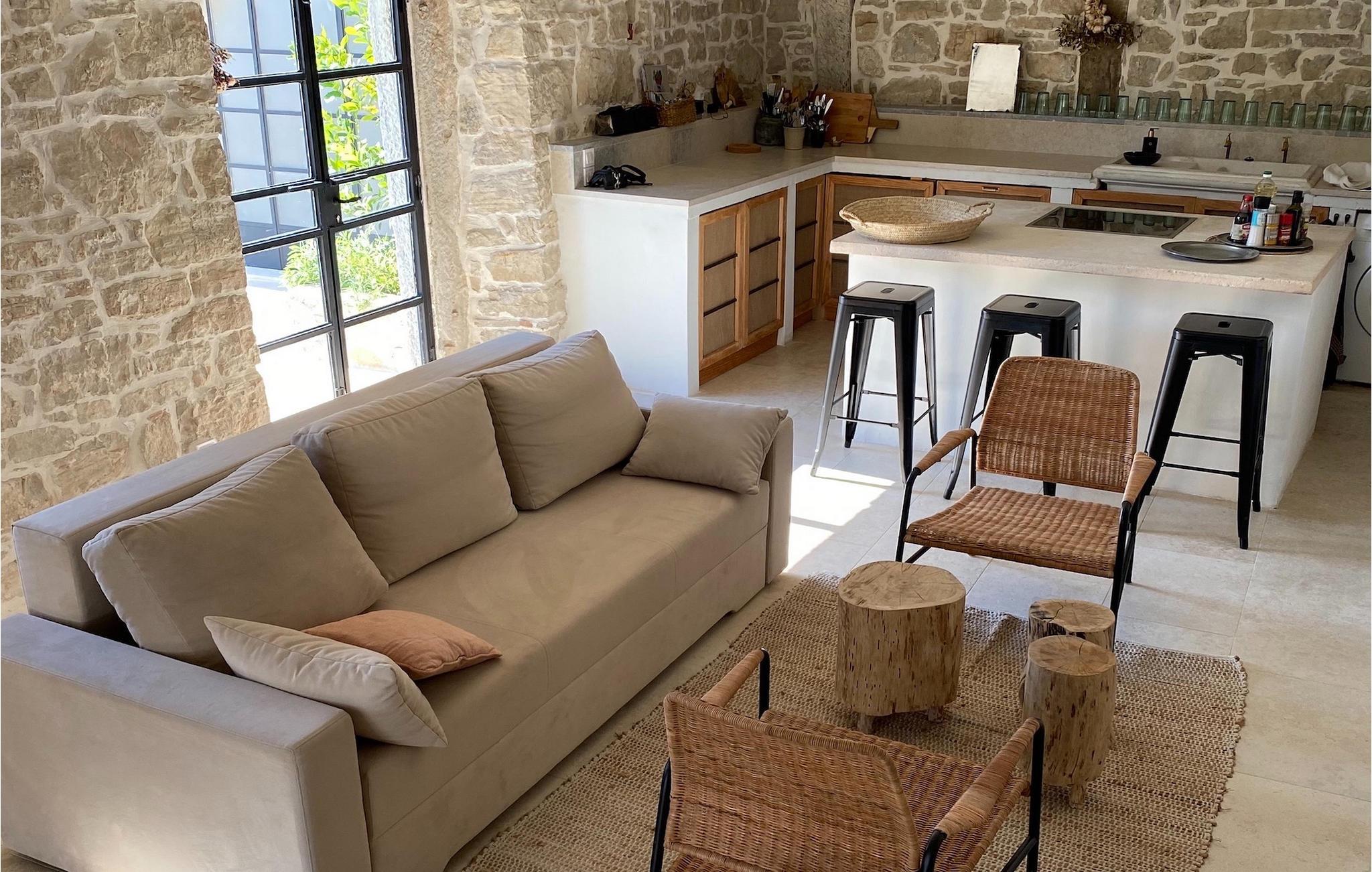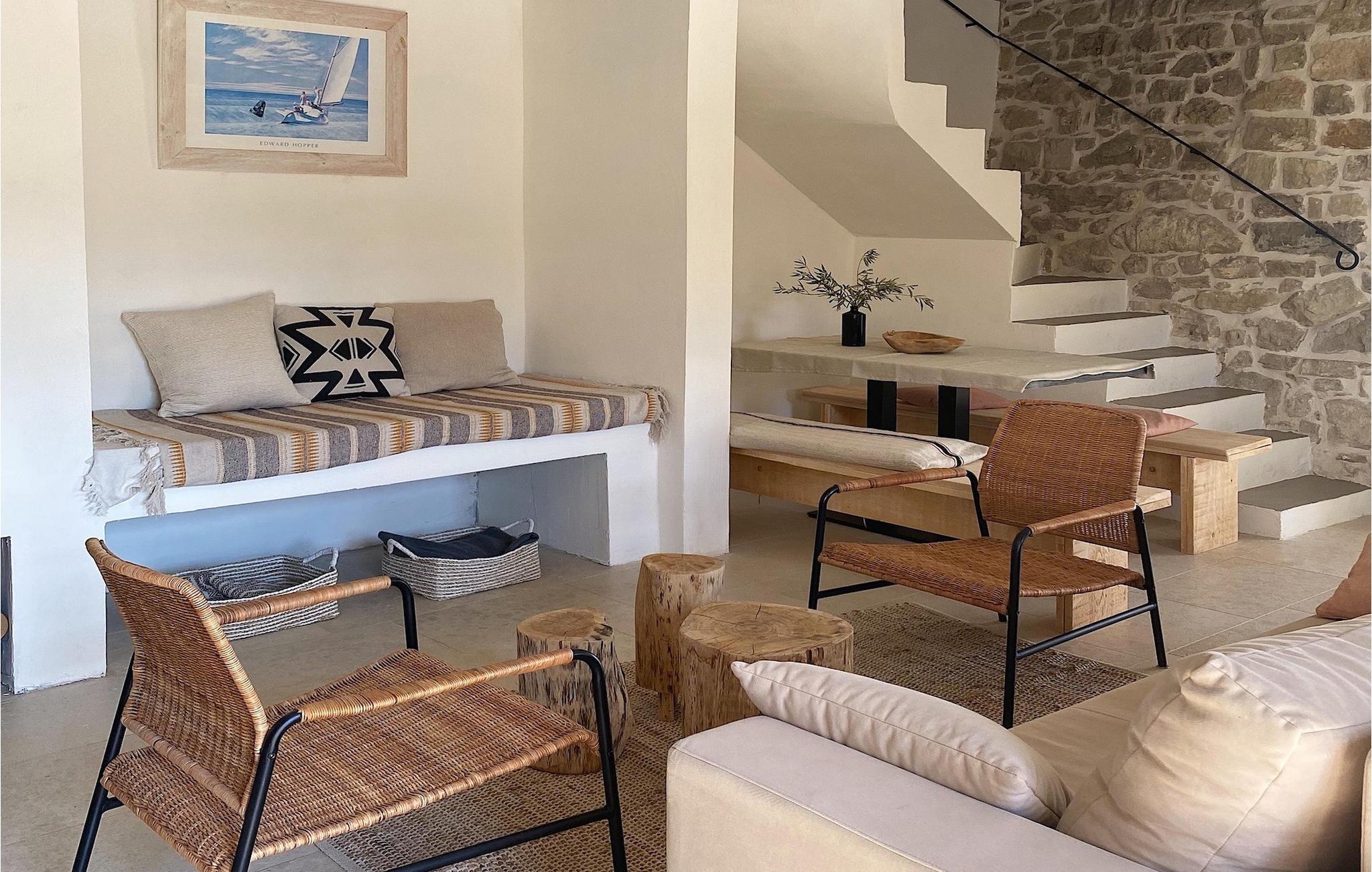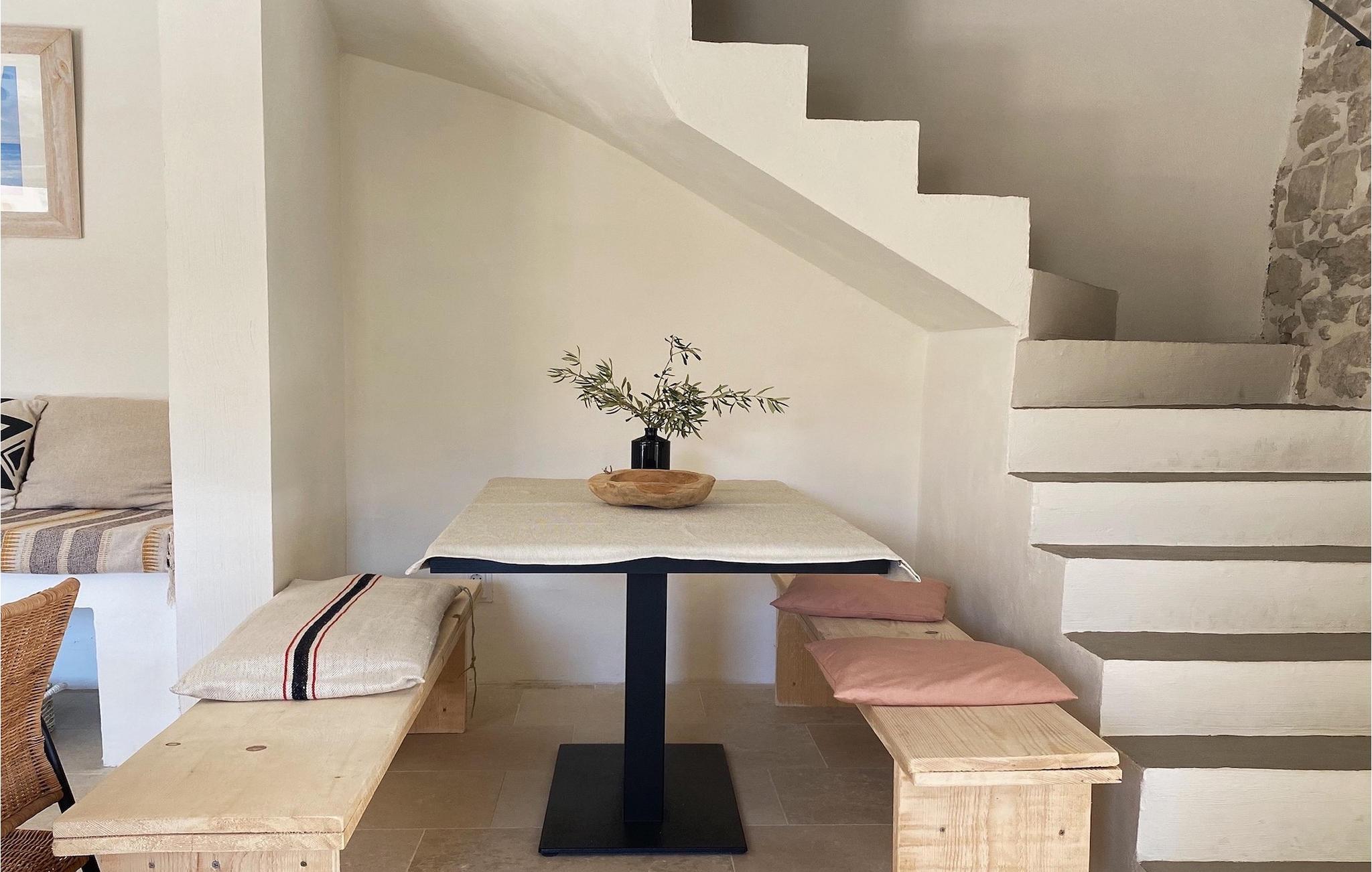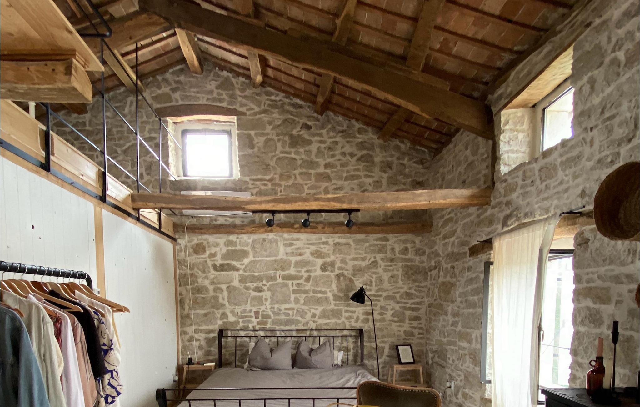 Auf der ersten Etage versprechen zwei Schlafzimmer mit Doppelbett erholsame Nächte. Ein separates Badezimmer ist mit einer Badewanne ausgestattet. Dort können Sie ein Bad nehmen, Kerzen anzünden und sich einfach entspannen. Nachdem Sie ein Bad genossen haben, können Sie sich ein kühles Getränk auf der charmanten oberen Terrasse gönnen, die durch eines der Schlafzimmer zugänglich ist.