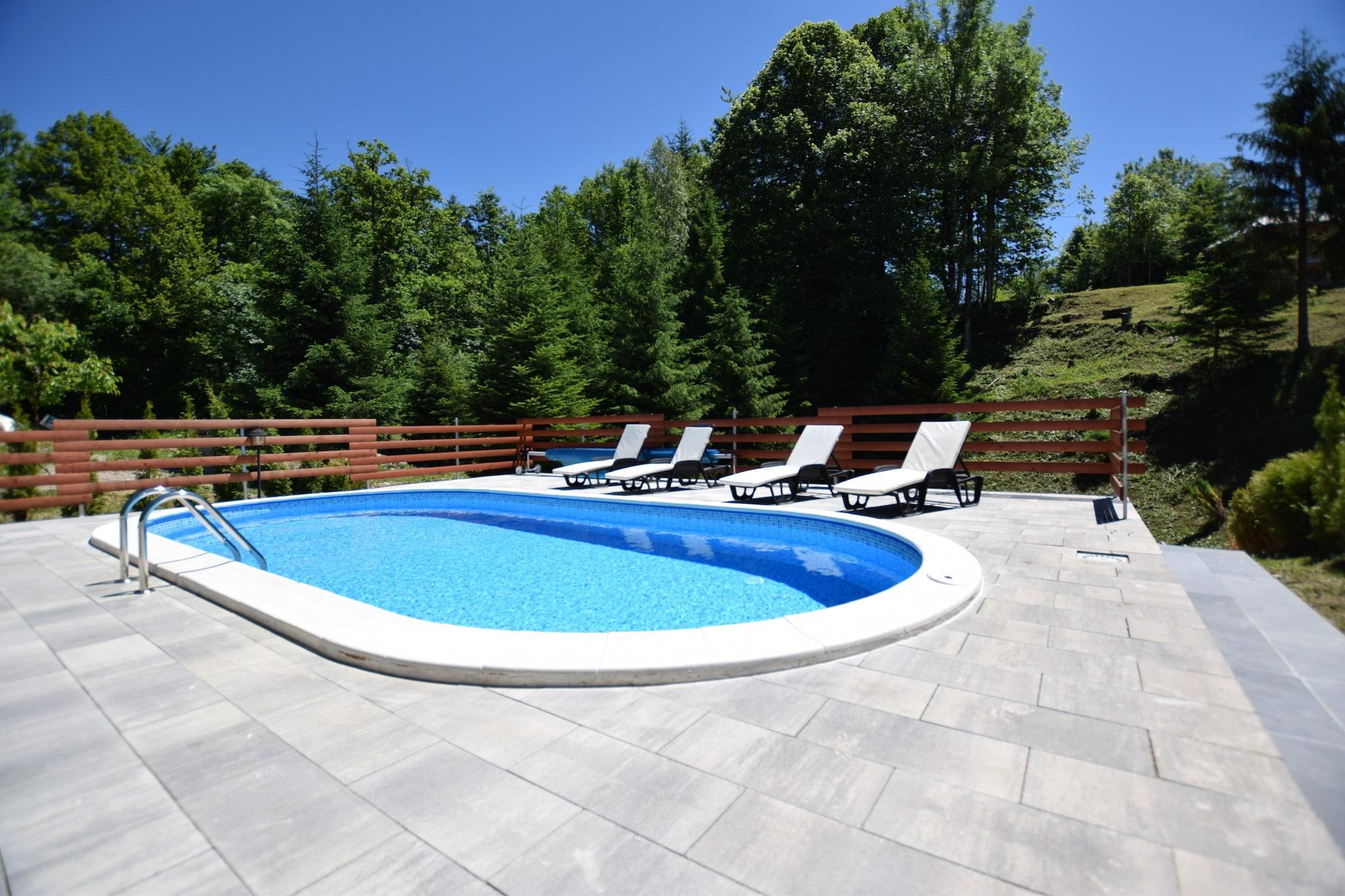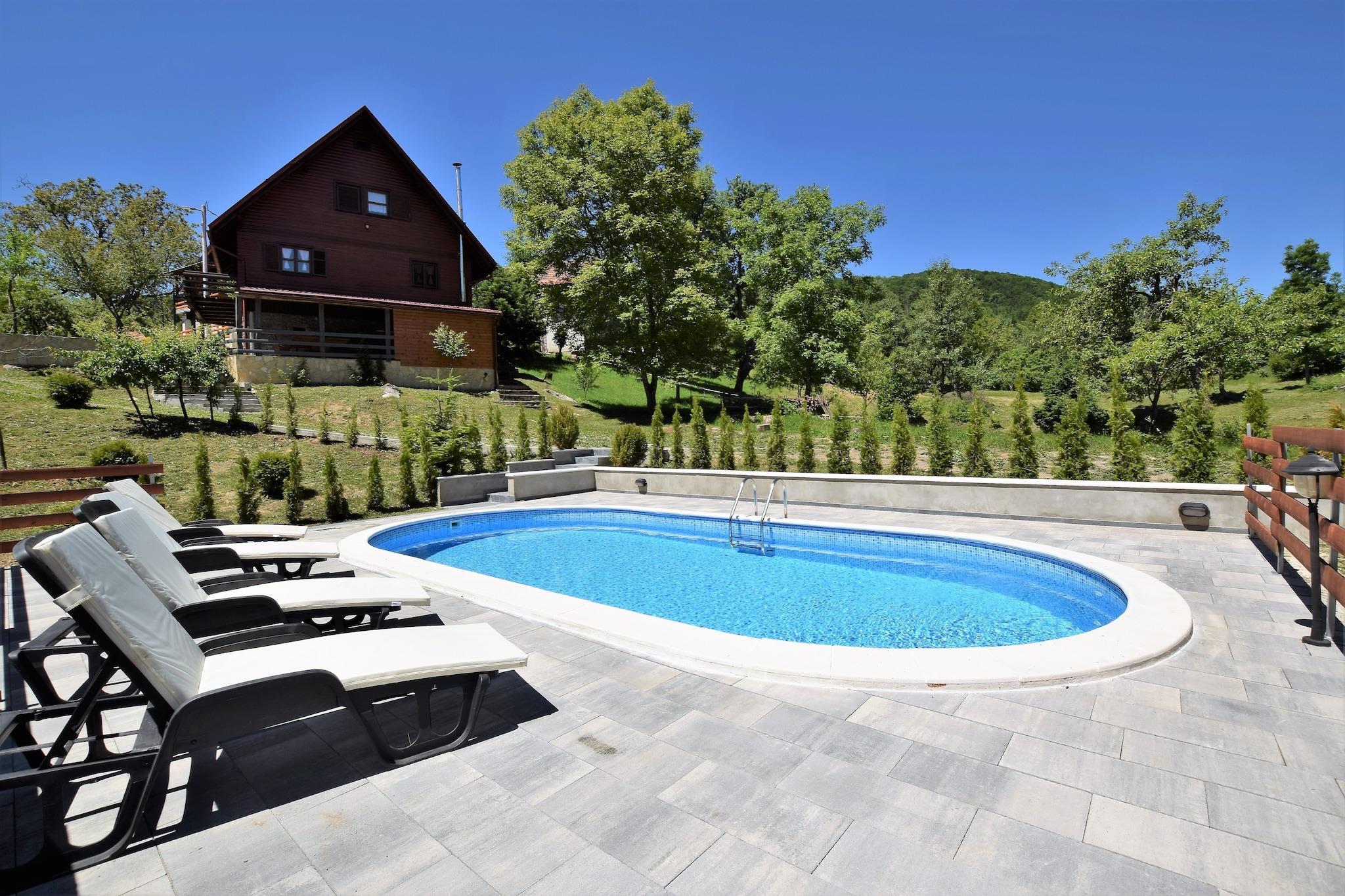 With sun-loungers by the swimming pool and a bubble bath to unwind in privacy, this is a 4-bedroom holiday home in Brod Moravice. It is perfect to bring together a family of up to 10 persons or a large group. The holiday home is surrounded by nature. You will be staying in the beautiful Gorski Kotar nature reserve near the river Kupa. Nature lovers and sports enthusiasts can enjoy themselves, with the extensive hiking trails for the most beautiful of walks, kayaking, river rafting, or fishing. There are several restaurants at 14 km serving mostly local specialties. Supermarkets are at 7 km. The holiday home is built largely of wood, giving it a cozy atmosphere. You have a view from your covered terrace over the pool and from bubble bath to the forest. If you love tranquility and a good book, the garden, and roofed terrace offer plenty of space. In the evenings, you can set up the barbecue and enjoy smoked chicken with some traditional wine. Krk-Rijeka Airport is 70 km.