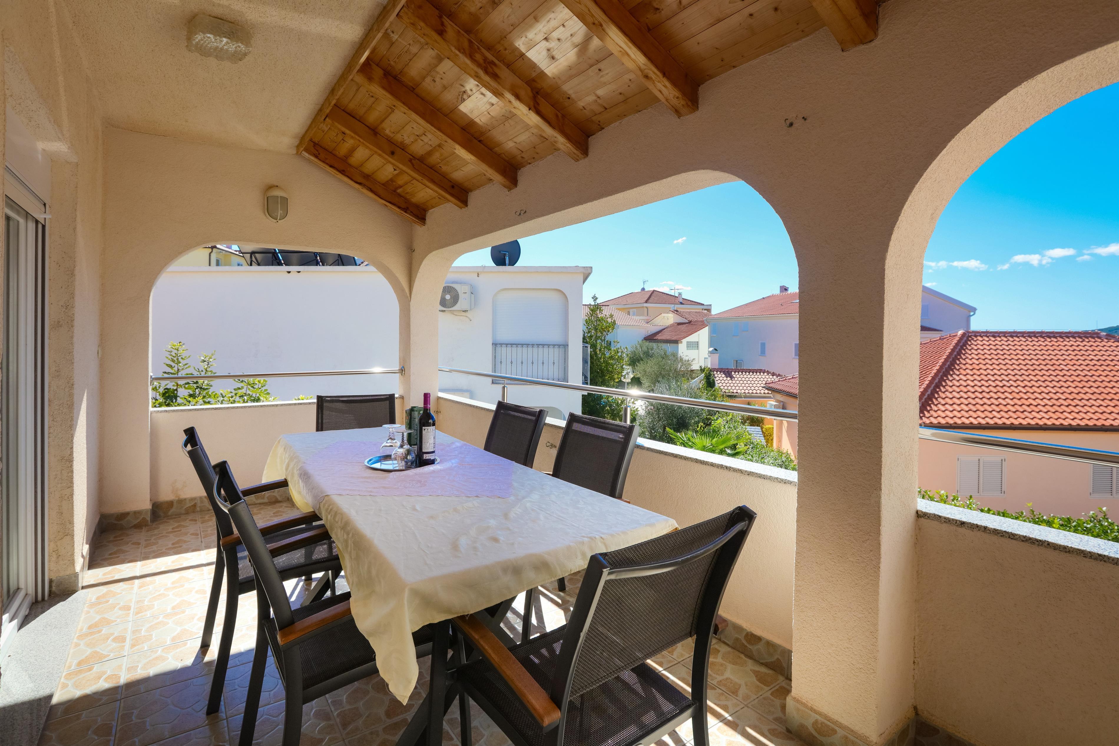 Apartment can accommodate 6 guests. Beds are situated in 2 sleeping rooms, but also in the living room, within 70m2. Guests can use a private terrace to enjoy the warm summer evenings. The apartment offers the sea view. Food can be prepared using barbecue which is shared with other guests too. This accommodation unit welcomes pets at an additional charge.