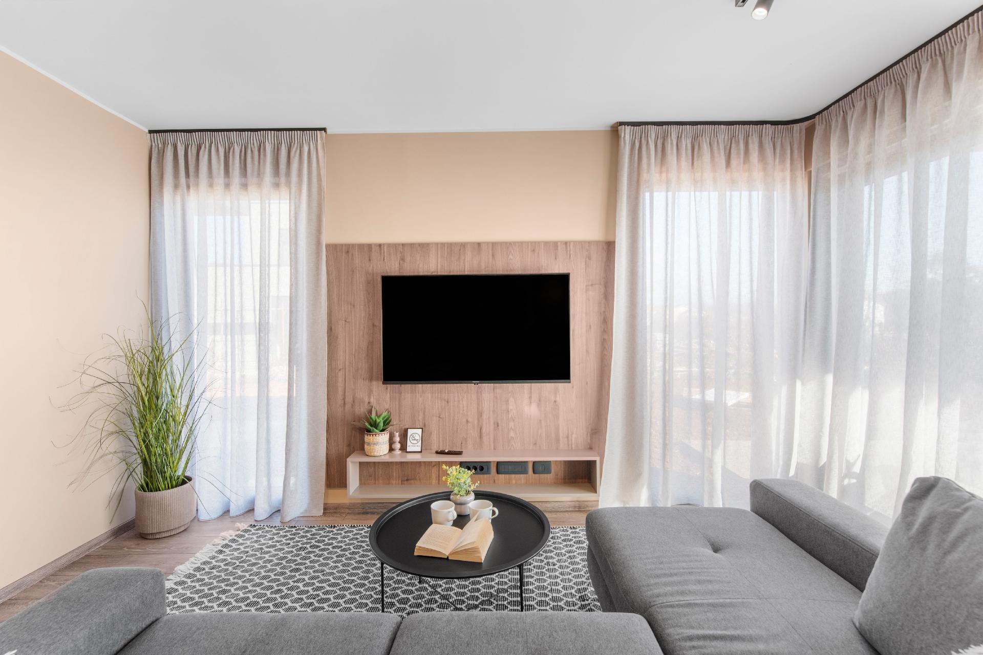 Inside the flat, you will find well thought-out furnishings to make your stay as comfortable as possible. There are two cosy bedrooms and two fully equipped bathrooms at your disposal. For added convenience, there is a washing machine and air conditioning, which ensures a pleasant temperature throughout the flat. Further equipment includes an espresso pot and a dishwasher to make everyday life easier.