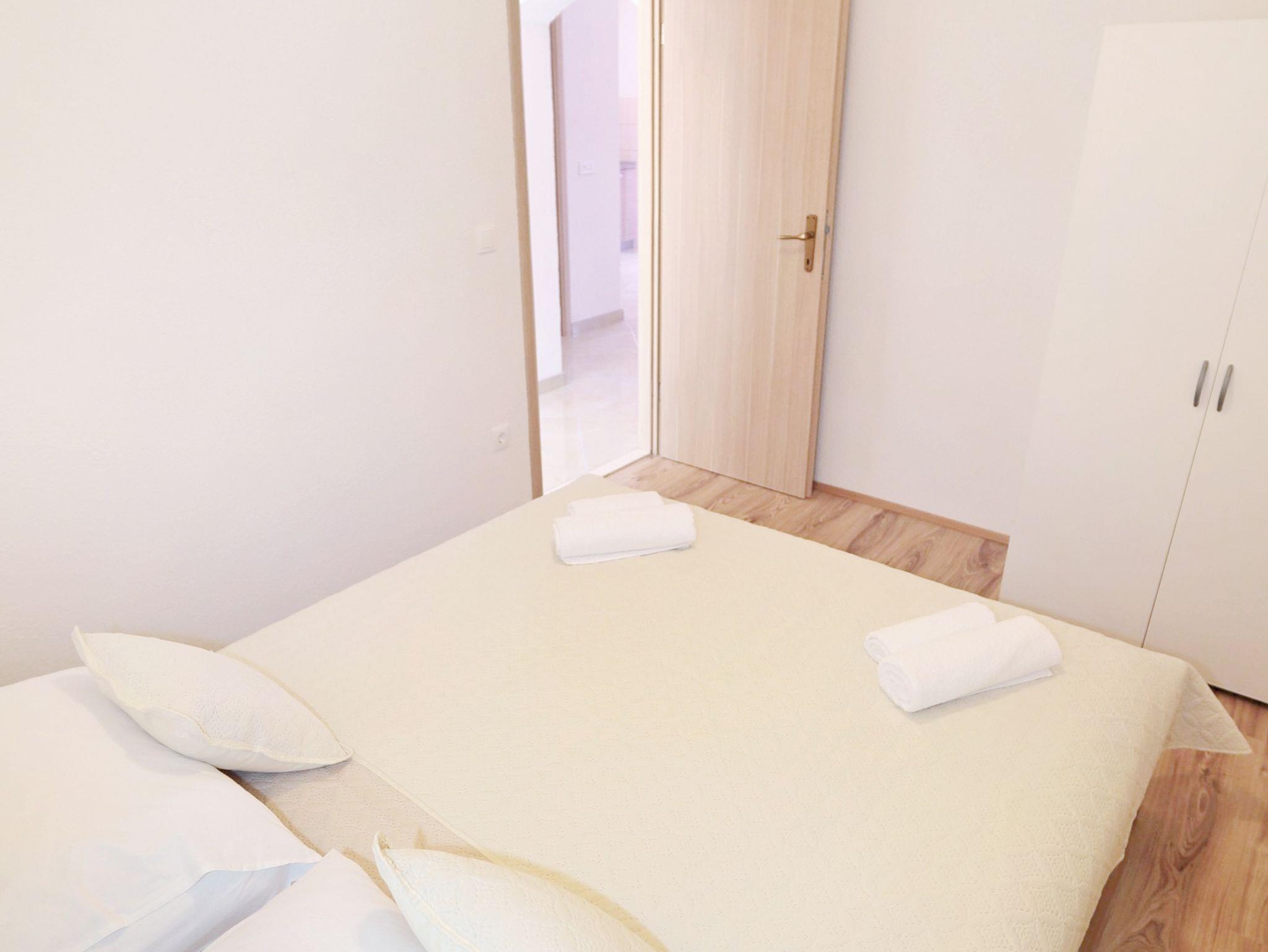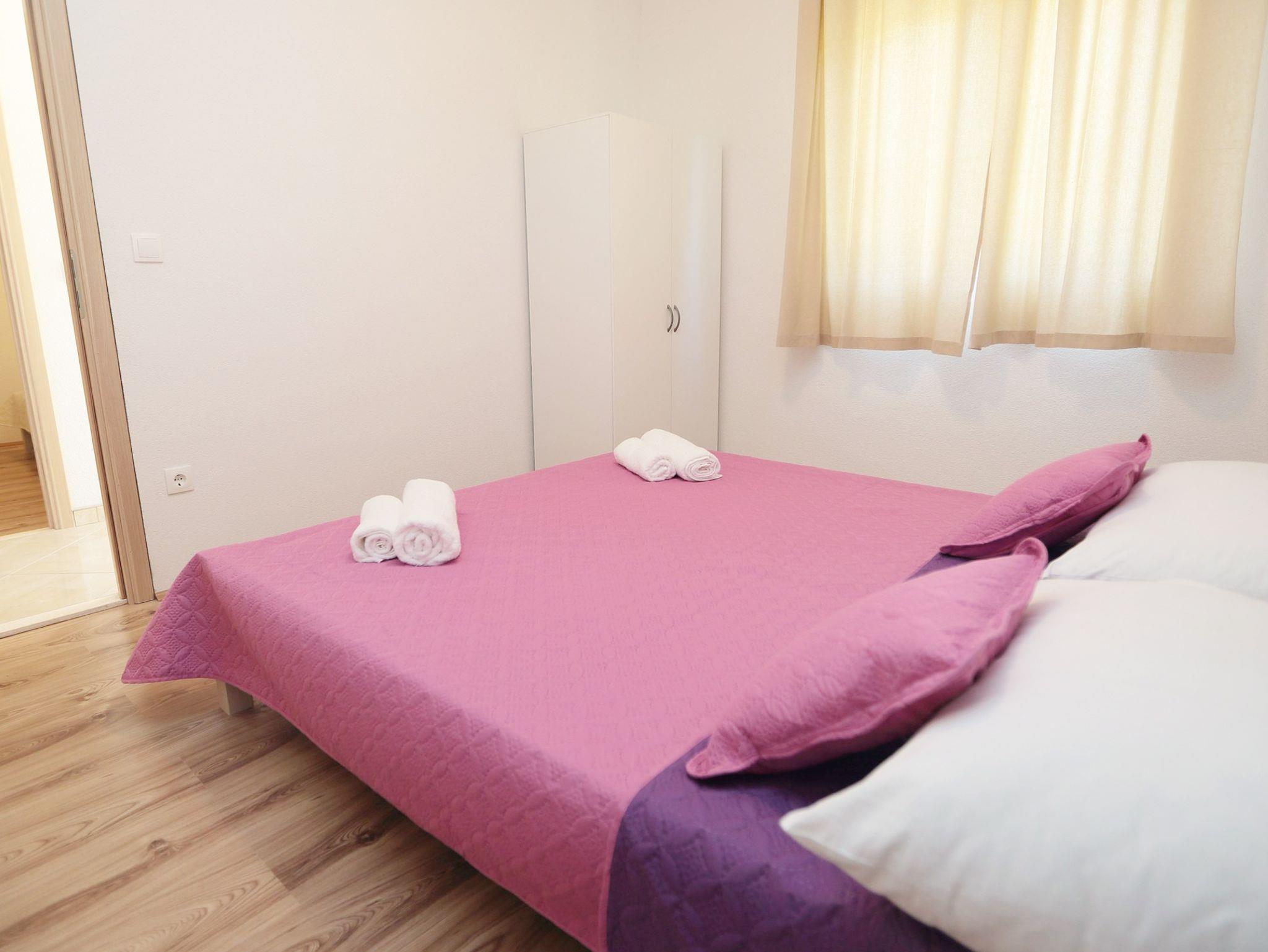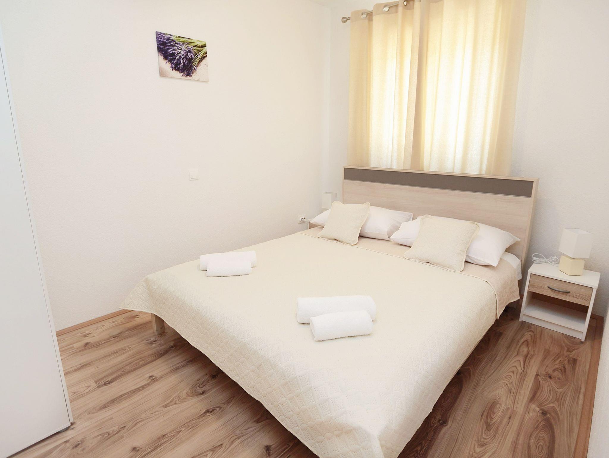 Ferienwohnung bietet Platz für 4 Gäste. Die Betten sind in Schlafzimmern, die es 2 gibt, innerhalb einer Gesamtfläche von 52m2, angeordnet. Die Gäste haben eine eigene Terrasse zur Verfügung, auf der sie in warmen Sommernächten genießen können. Das Apartment bietet Meerblick. Es ist erlaubt, Speisen auf dem Gemeinschafts-Grill vorzubereiten. IM PREIS INBEGRIFFEN: Kurtaxe, Endreinigung, Klimatisierung, Parkplatz, Internet, Bootsanlegeplatz, Bügeleisen, Föhn, Sonnenschirm, Liegestühle. VERBINDLICHE ZUSÄTZLICHE KOSTEN: Aufzahlung für Kurzaufenthalte (prozentualer Zuschlag pro Nächtigungsanzahl: 30% - 1, 20% - 2, 10% - 3). Die Verfügbarkeit zusätzlicher Dienstleistungen in Ihrem reservierten Termin und die Preise derselben (falls nicht aufgeführt) müssen im Voraus überprüft werden. Zusätzliche Dienstleistungen die in der Zahlungsaufforderung nicht aufgeführt sind werden direkt beim Vermieter bezahlt, angenommen der Gast nutzt auch diese.