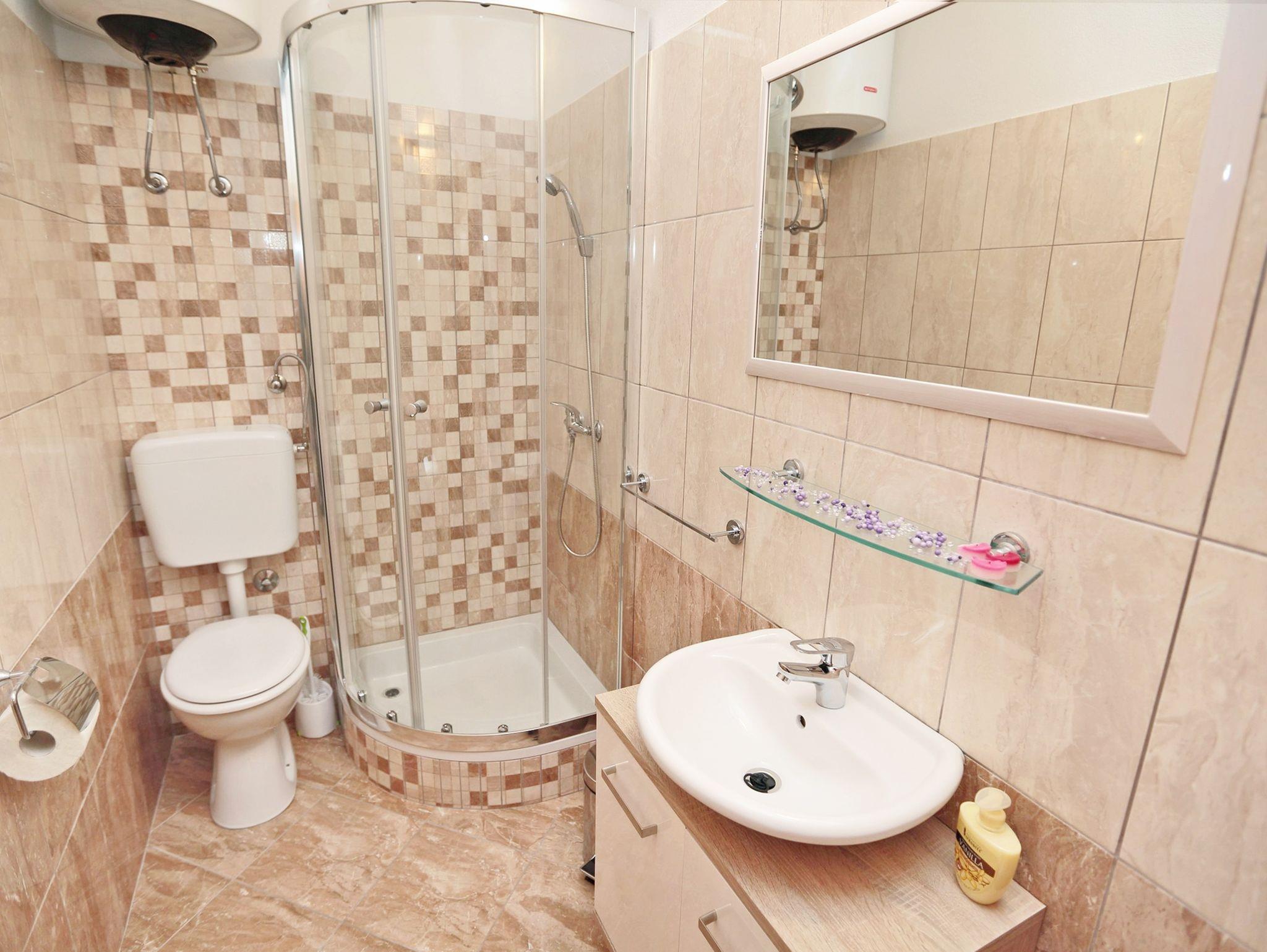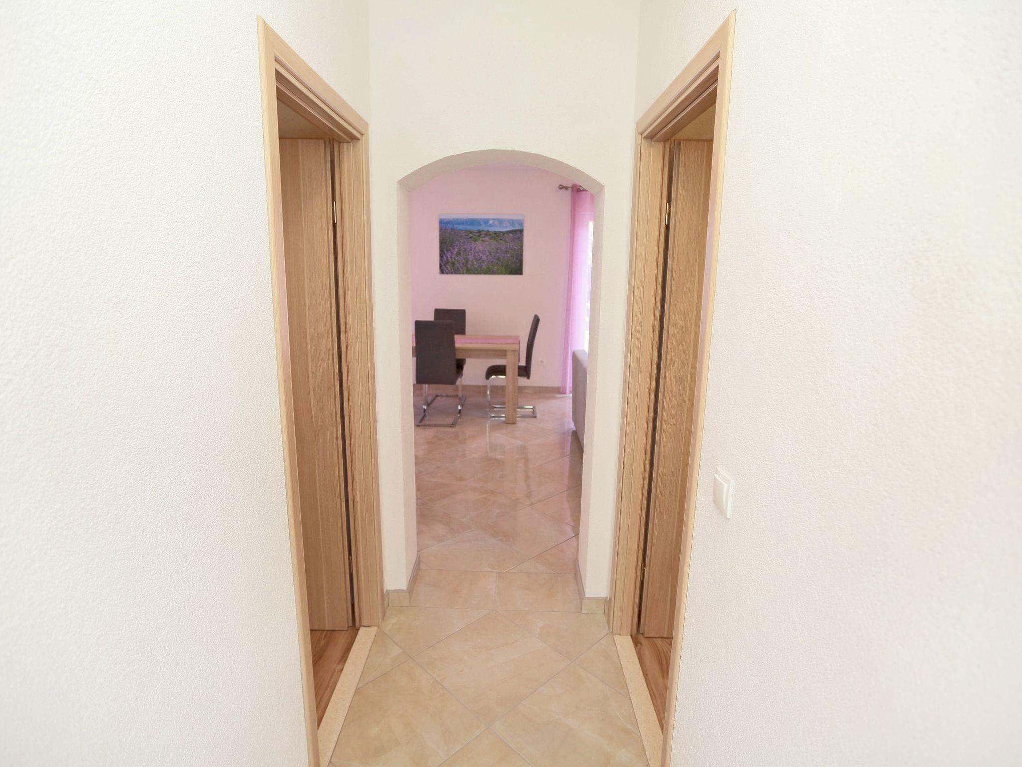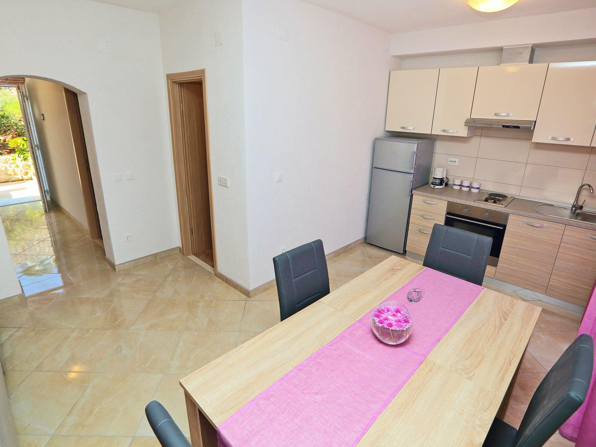 Ferienwohnung bietet Platz für 4 Gäste. Die Betten sind in Schlafzimmern, die es 2 gibt, innerhalb einer Gesamtfläche von 52m2, angeordnet. Die Gäste haben eine eigene Terrasse zur Verfügung, auf der sie in warmen Sommernächten genießen können. Das Apartment bietet Meerblick. Es ist erlaubt, Speisen auf dem Gemeinschafts-Grill vorzubereiten. IM PREIS INBEGRIFFEN: Kurtaxe, Endreinigung, Klimatisierung, Parkplatz, Internet, Bootsanlegeplatz, Bügeleisen, Föhn, Sonnenschirm, Liegestühle. VERBINDLICHE ZUSÄTZLICHE KOSTEN: Aufzahlung für Kurzaufenthalte (prozentualer Zuschlag pro Nächtigungsanzahl: 30% - 1, 20% - 2, 10% - 3). Die Verfügbarkeit zusätzlicher Dienstleistungen in Ihrem reservierten Termin und die Preise derselben (falls nicht aufgeführt) müssen im Voraus überprüft werden. Zusätzliche Dienstleistungen die in der Zahlungsaufforderung nicht aufgeführt sind werden direkt beim Vermieter bezahlt, angenommen der Gast nutzt auch diese.