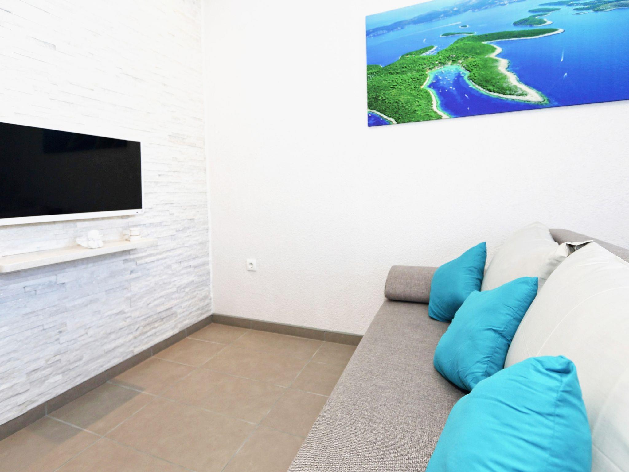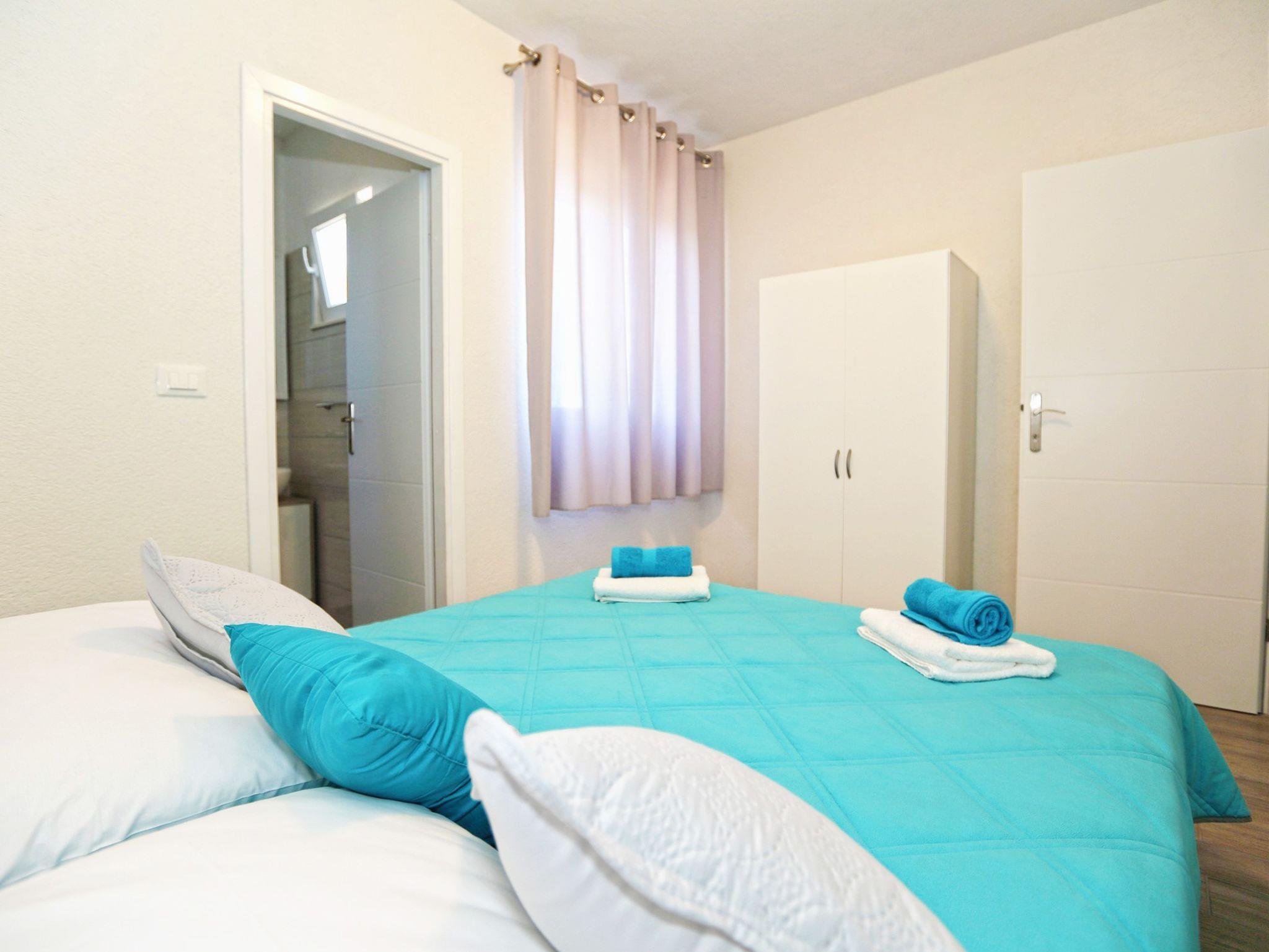 Ferienwohnung bietet Platz für 3 Gäste. Die Betten sind in Schlafzimmern, die es 1 gibt, und in Wohnzimmer, innerhalb einer Gesamtfläche von 29m2, angeordnet. Die Gäste haben einen eigenen Balkon zur Verfügung, auf der sie in warmen Sommernächten genießen können. Das Apartment bietet Meerblick. Es ist erlaubt, Speisen auf dem Gemeinschafts-Grill vorzubereiten. IM PREIS INBEGRIFFEN: Kurtaxe, Endreinigung, Klimatisierung, Parkplatz, Internet, Bootsanlegeplatz, Bügeleisen, Föhn, Sonnenschirm, Liegestühle. VERBINDLICHE ZUSÄTZLICHE KOSTEN: Aufzahlung für Kurzaufenthalte (prozentualer Zuschlag pro Nächtigungsanzahl: 30% - 1, 20% - 2, 10% - 3). Die Verfügbarkeit zusätzlicher Dienstleistungen in Ihrem reservierten Termin und die Preise derselben (falls nicht aufgeführt) müssen im Voraus überprüft werden. Zusätzliche Dienstleistungen die in der Zahlungsaufforderung nicht aufgeführt sind werden direkt beim Vermieter bezahlt, angenommen der Gast nutzt auch diese.