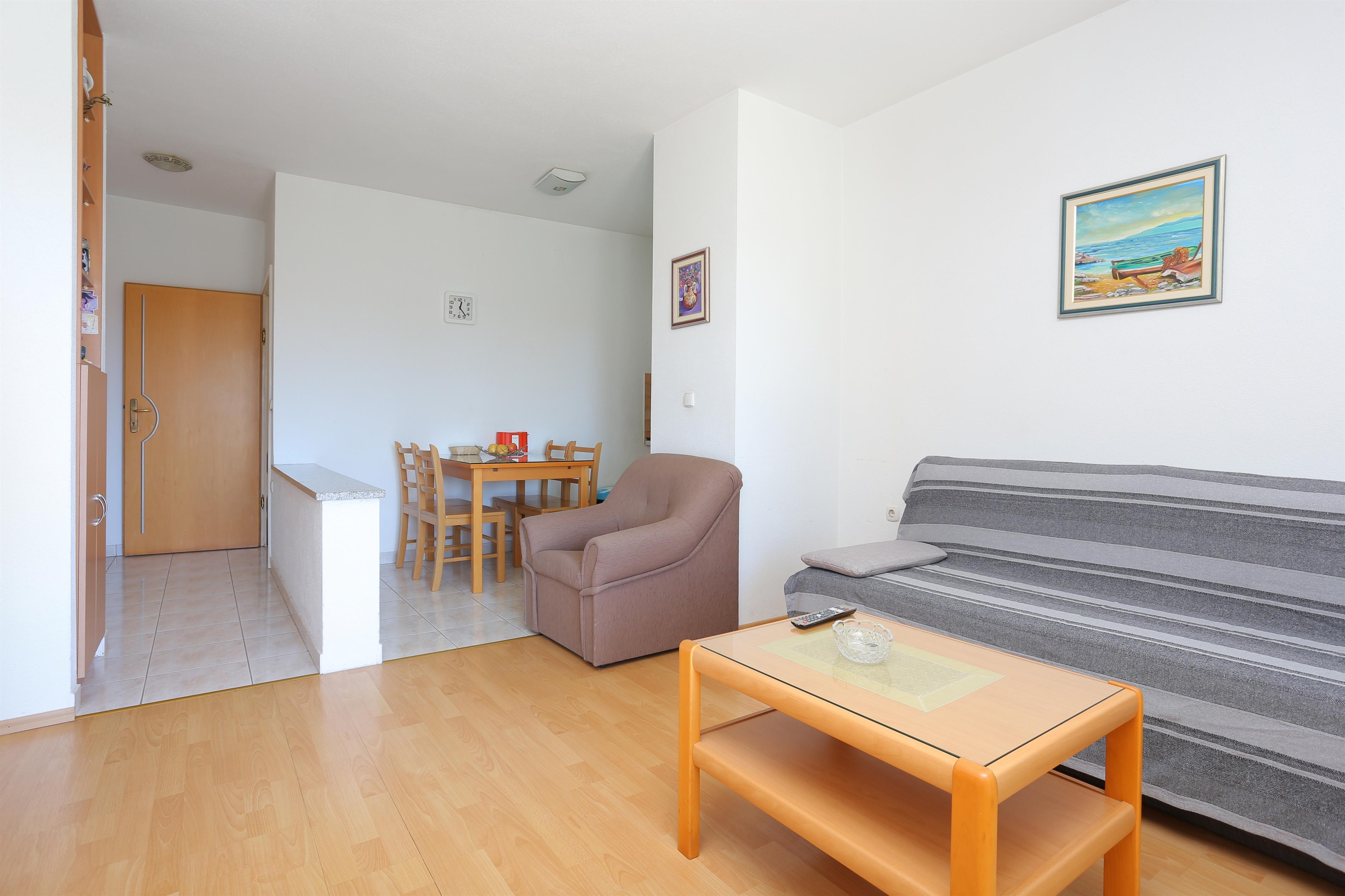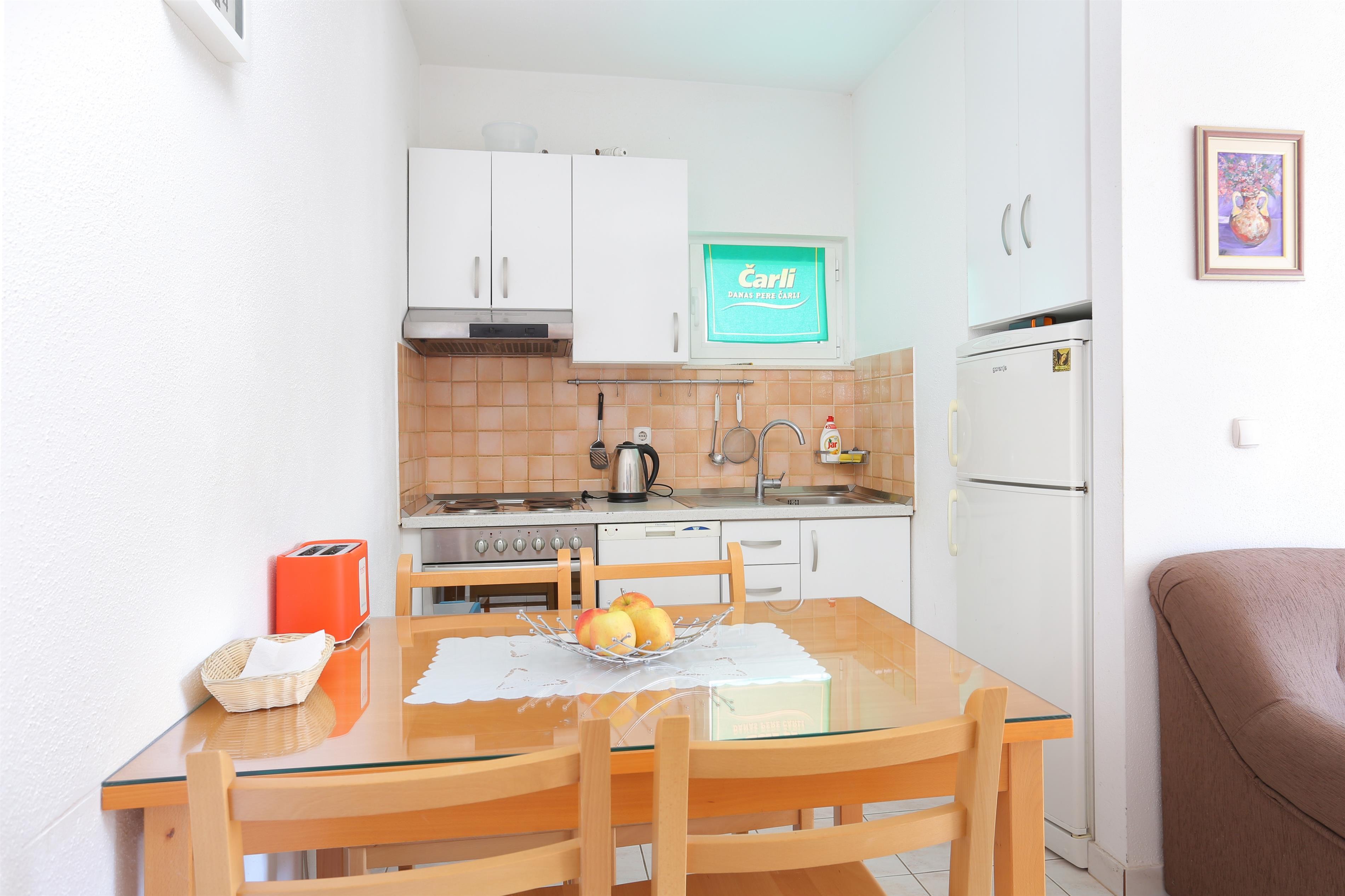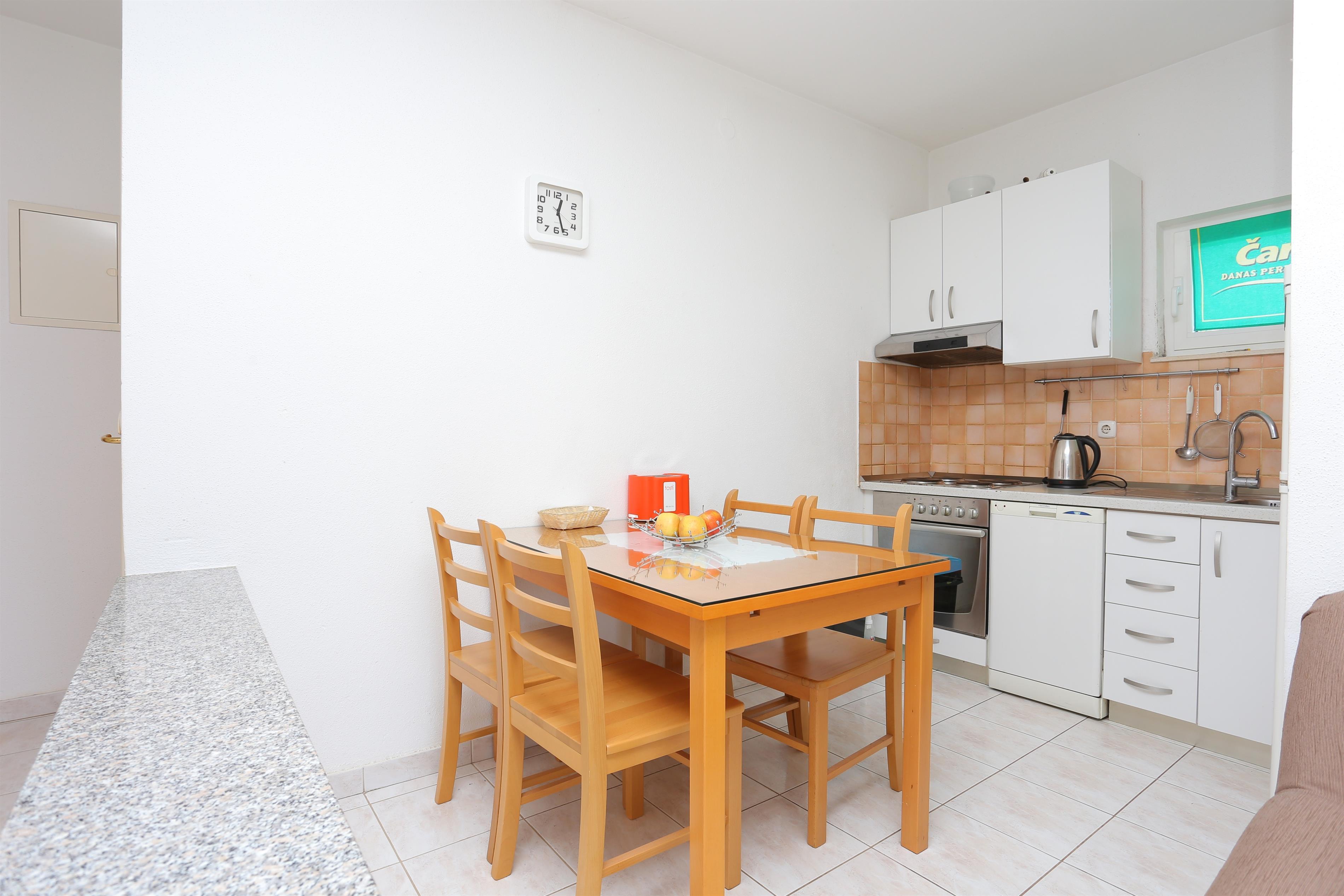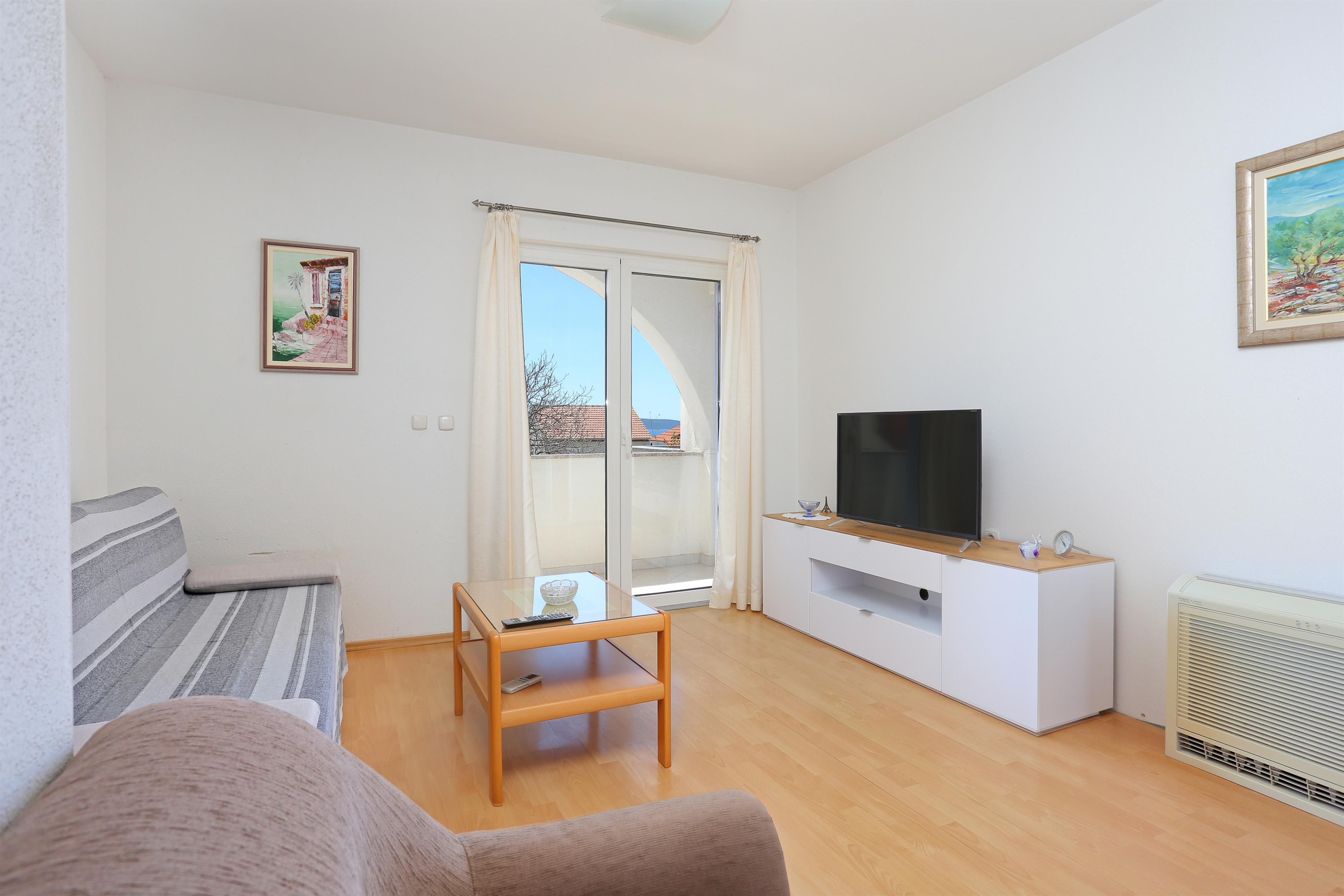 Apartment can accommodate 4 guests. Beds are situated in 1 sleeping rooms, but also in the living room, within 35m2. Guests can use a private terrace to enjoy the warm summer evenings. The apartment offers the sea view. Food can be prepared using barbecue which is shared with other guests too.