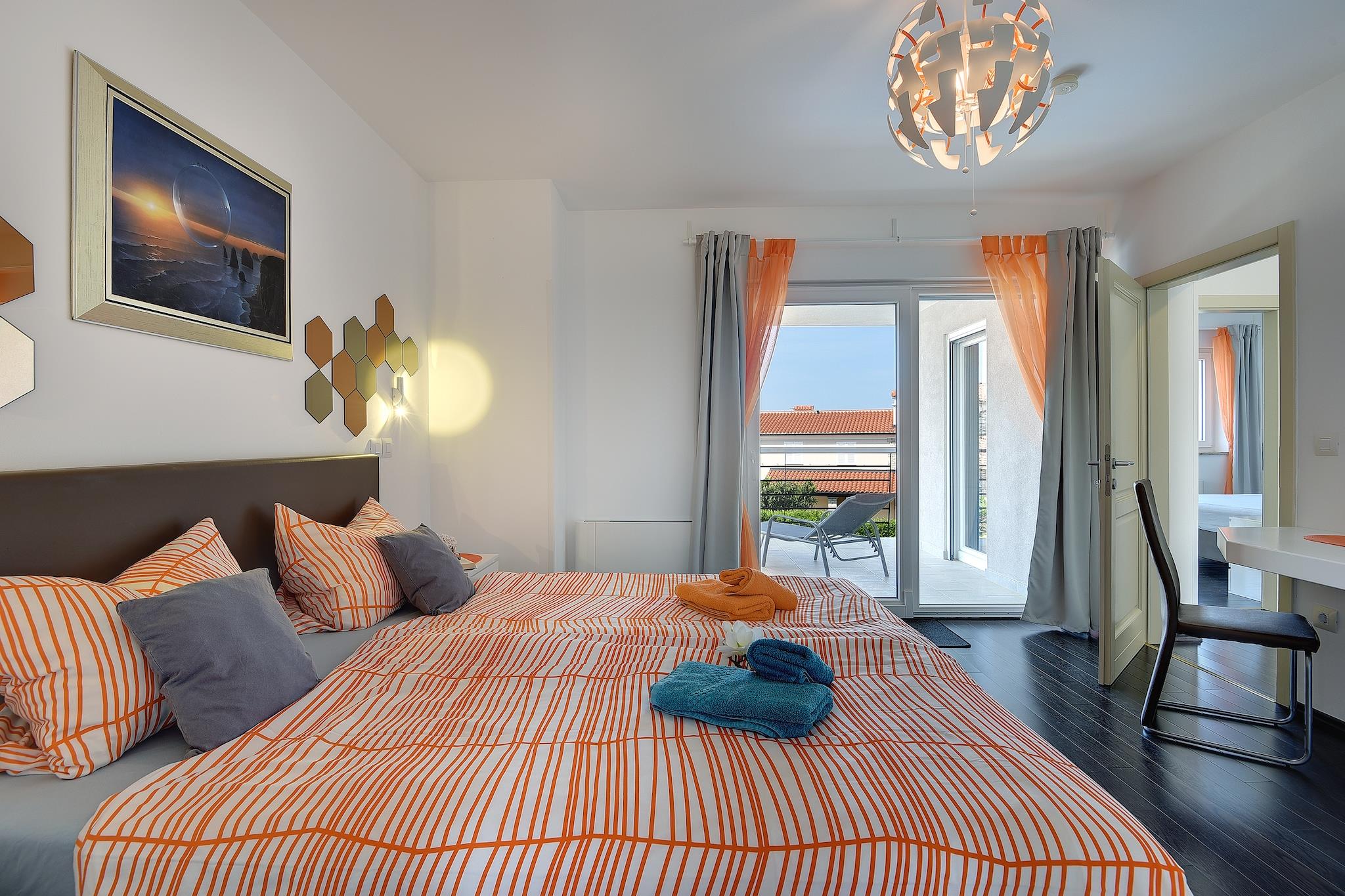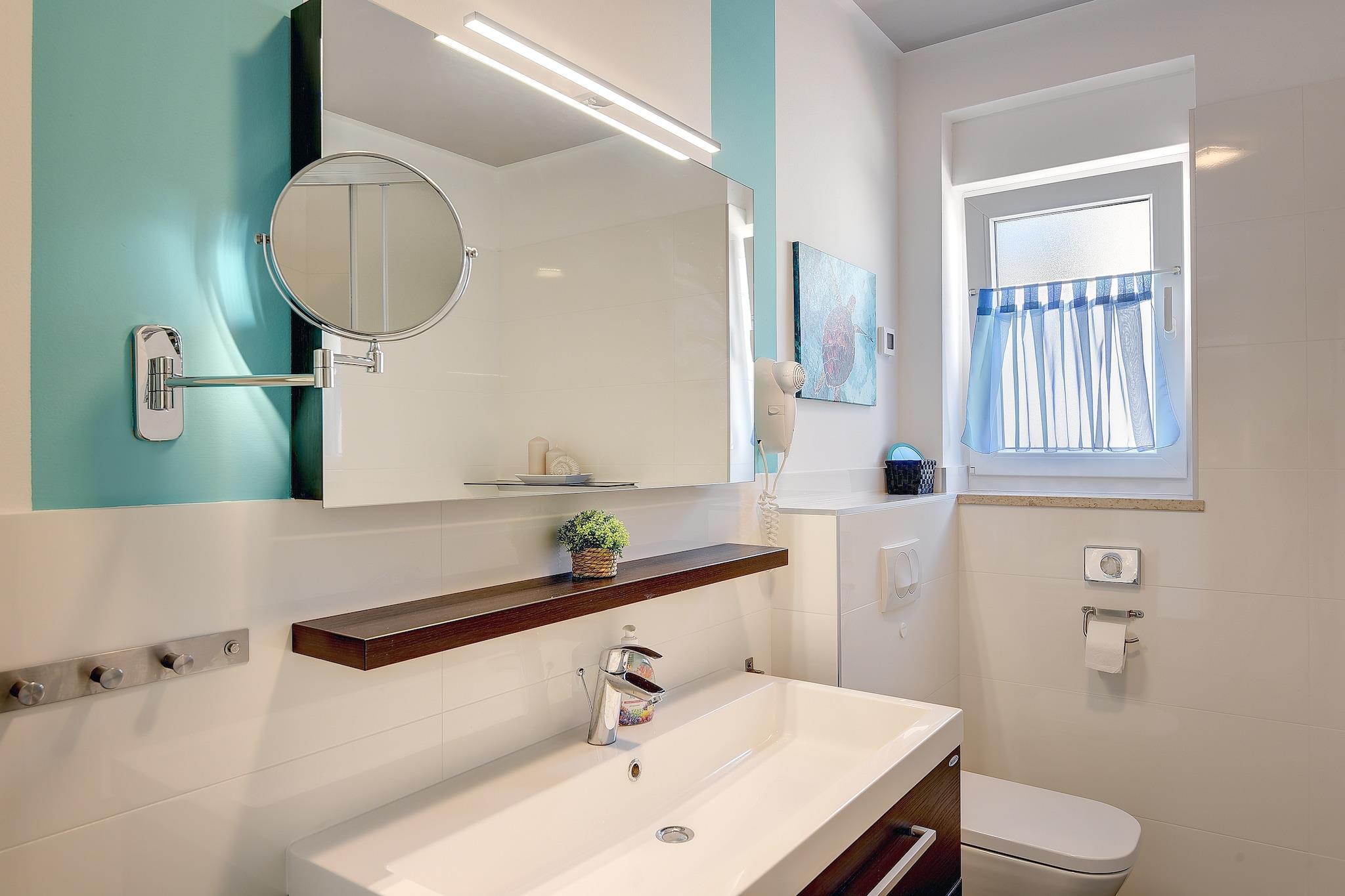 This holiday home in Novigrad has 3 bedrooms accommodating 8 people comfortably. It is perfect for a group or families with children to stay and enjoy the rural location, private swimming pool, and roofed terrace. The roofed terrace has a barbecue to enjoy and the kids will be happy to play in the garden. The beach (3.5 km) and sports field (3 km) give all fun you need for your vacation. You can find the restaurants (300 m) and a supermarket (2.5 km) to have a great time relishing delicious food and shopping. You can be comfortable inside the home with a modern kitchen, spacious living room, and relaxing bedrooms. The surrounding green meadows and olive groves are beautiful to watch from the balcony. Pool heating with heat pump upon request at least 2 weeks before arrival; weather-related temperature; the pool is available in the period: 13.4. - 12.10. For reasons of tranquillity, this holiday home will not be rented to groups of youngsters.