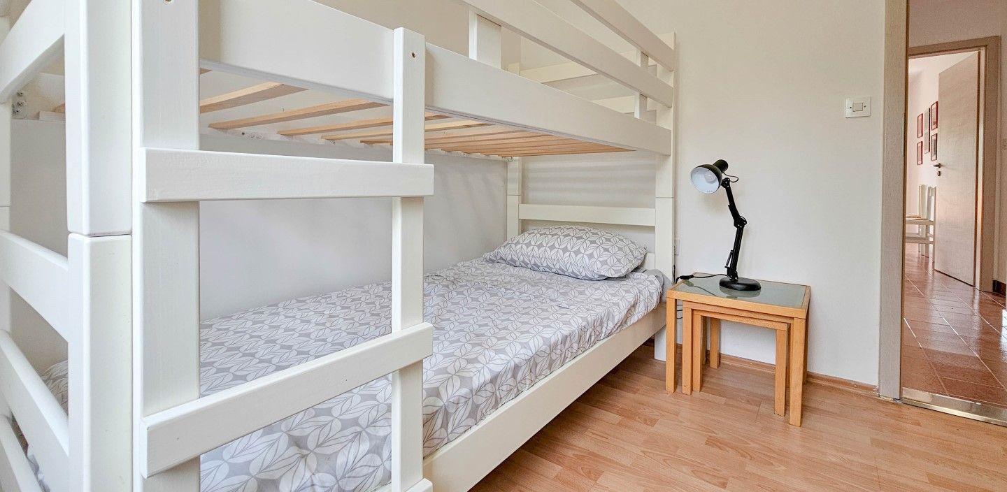The apartment offers three bedrooms - two with a double bed and one with a single bed - while two more people can sleep in the spacious living room. Guests have two bathrooms at their disposal, one with a bathtub and a washing machine, the other with a shower. The kitchen with a dining area is equipped with basic items for preparing meals, and the living room leads to a terrace with - the perfect place for morning coffee or evening socializing.