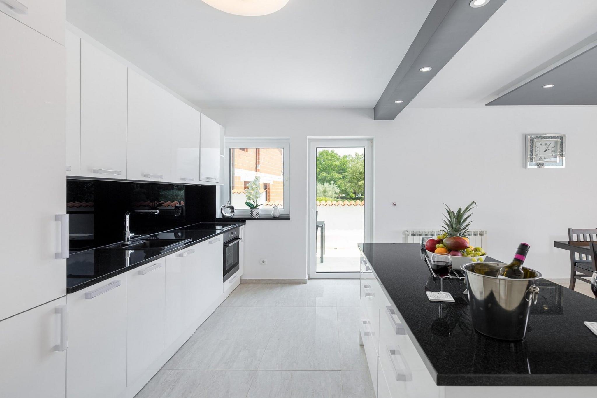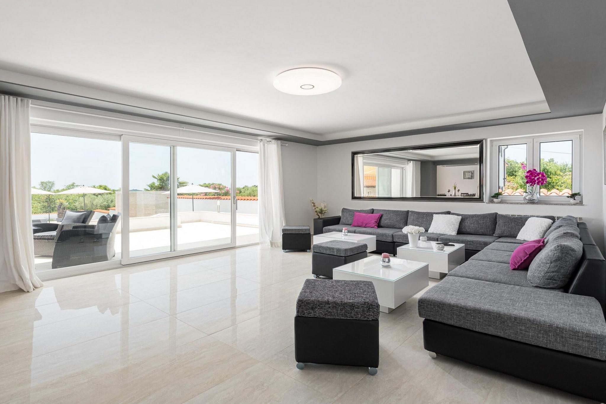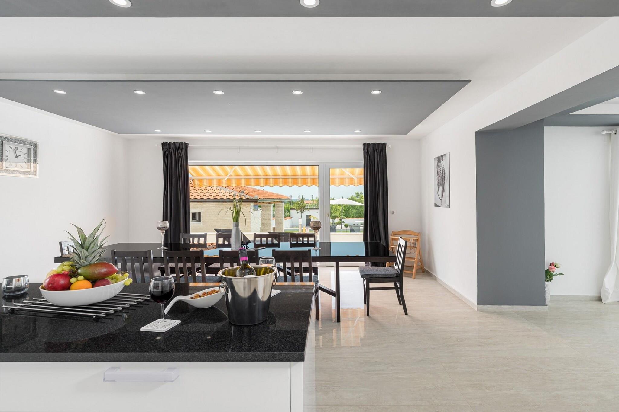 This spacious villa is beautifully furnished and designed to accommodate large groups or families, with six bedrooms and a total capacity of 12 guests. The property offers a variety of outdoor amenities, including a private swimming pool, garden, and a terrace with outdoor furniture, ideal for relaxing or dining in the open air. The villa is fully equipped with modern conveniences, such as Wi-Fi, air conditioning, central heating, and 8 satellite TVs offering channels in multiple languages. Additional features include a gym/fitness center, a sauna, a hot tub, and a children’s play area, making it an excellent choice for families seeking relaxation and entertainment. Open-air parking is also available on-site. Located in a family-friendly zone near the sea, the villa offers easy access to a range of local attractions. It is just 200 meters from the popular restaurant "Istarska konoba," while the nearest supermarket, Žbandaj, is only 3 km away. Guests can visit the sandy and rocky Pical beaches, located 6 km from the villa, or explore the city of Porec, also 6 km away. For those seeking more adventurous experiences, the nearby Aquacolors water park (7 km) offers family-friendly fun. The villa is conveniently situated for travelers, with Pula Airport and train station located about 60 km away, and Trieste’s airport and train station around 85–110 km from the property. The villa's independent kitchen is fully equipped with high-quality appliances, including an induction cooktop, refrigerator, microwave, oven, freezer, dishwasher, and all necessary kitchenware. A coffee machine, toaster, and kettle are provided to make your stay even more comfortable.