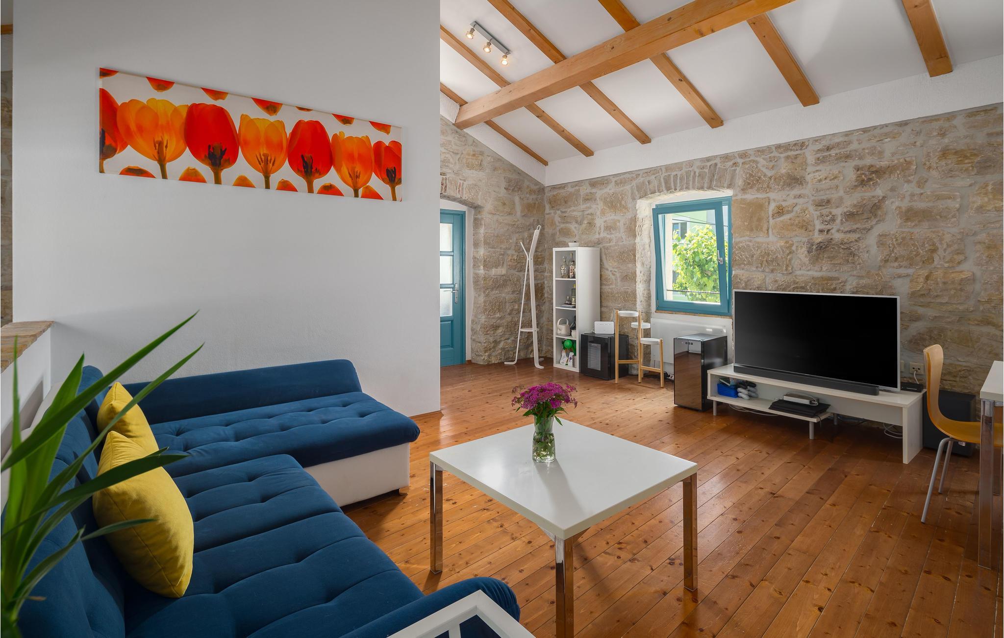 In traumhafter Lage begrüßt Sie das komfortable Haus, hier sind Sie von der Weite der Landschaft umgeben. In den hellen, ansprechenden Räumen treffen zum Teil sichtbares Mauerwerk und gepflegte Holzböden auf moderne Möbel, eine ideale Mischung, um sich gleich wohlzufühlen. Hier können Sie die gemeinsamen Tage so richtig genießen. Machen Sie es sich abends nach einem herrlichen Tag am Pool oder einem schönen Ausflug in der Umgebung im Wohnbereich bequem und lassen Sie die Erlebnisse des Tages noch einmal auf sich wirken.