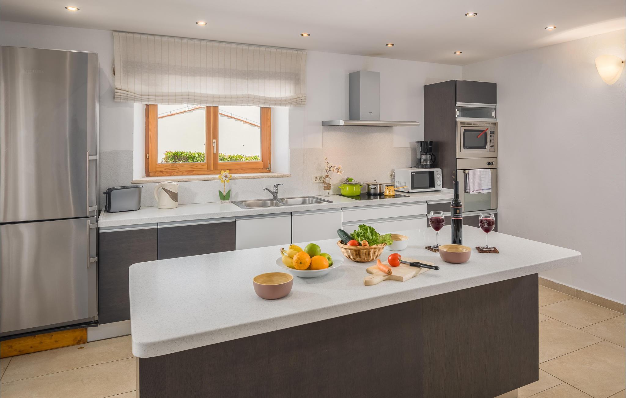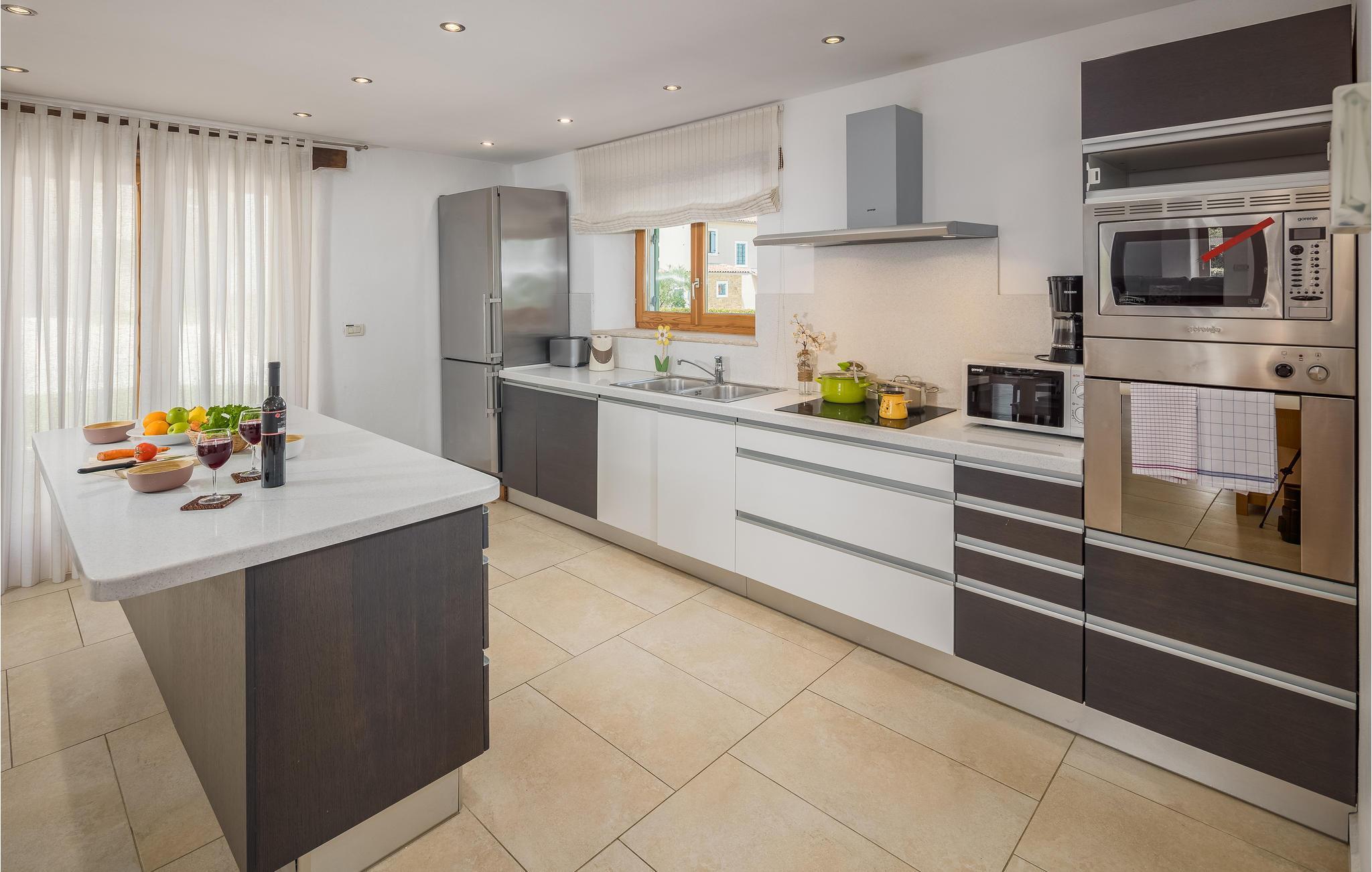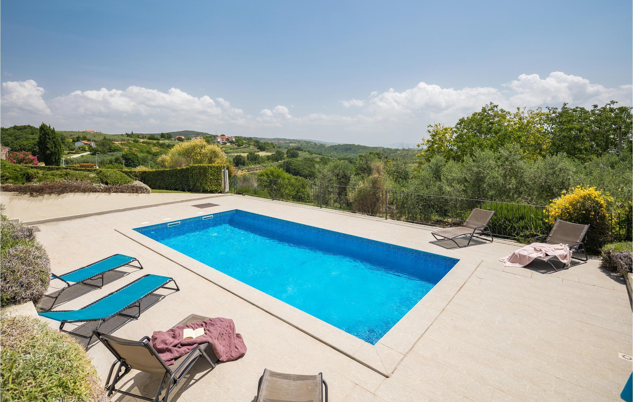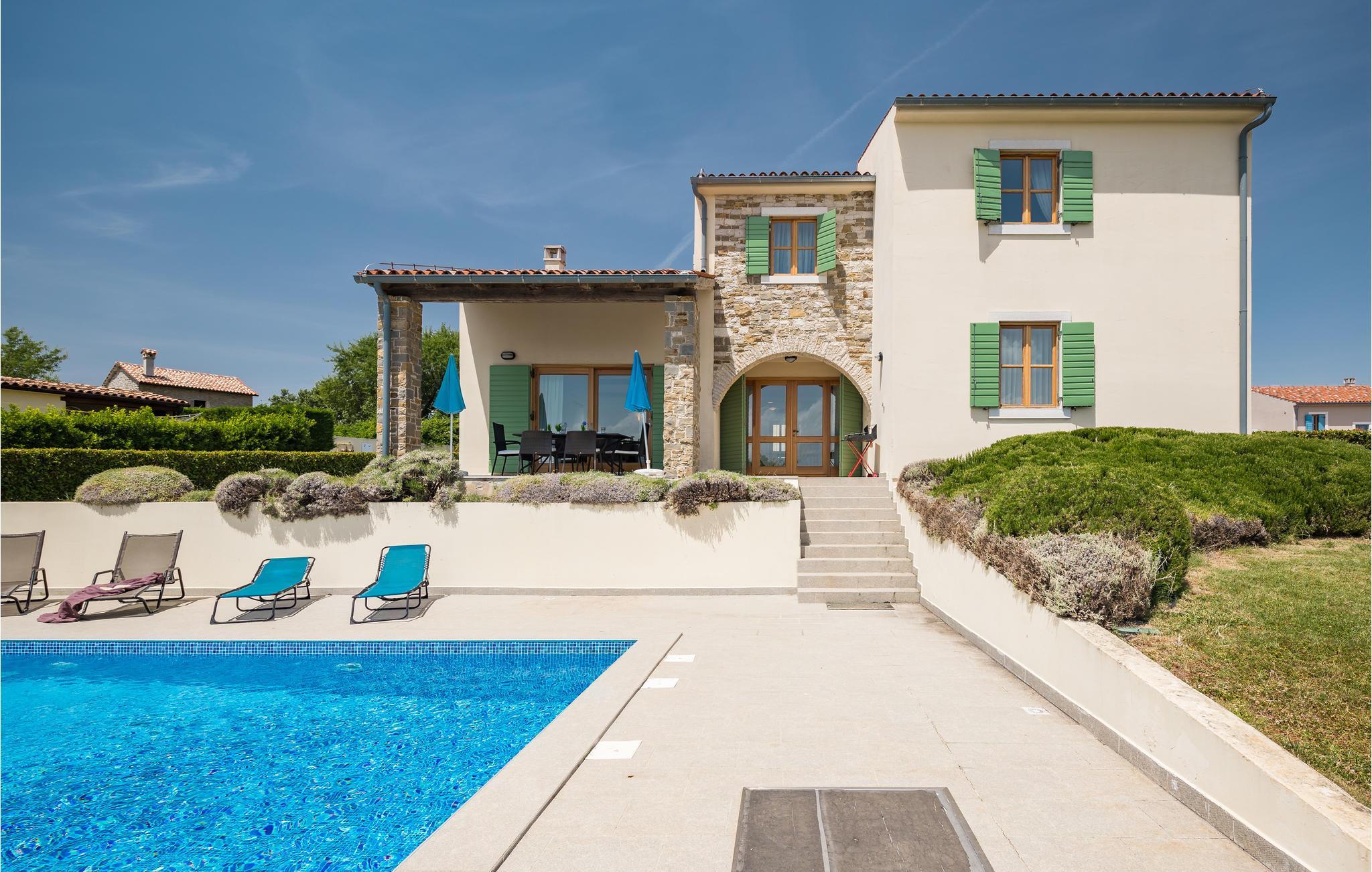 Auf der Anhöhe des Ortes Baredine, unweit der Stadt Buje liegt diese schöne Villa. Sie ist modern und komfortabel eingerichtet. Sie erstreckt sich über zwei Ebenen. Im Erdgeschoss liegen das gemütliche Wohnzimmer, die große Küche mit Essbereich, ein Baderaum und ein Schlafraum. Weitere Schlafräume gibt es im ersten Stock. Im Hof des Hauses lädt der Swimmingpool mit Aussicht auf Hügel und Täler zum Schwimmen und Entspannen ein. In der näheren Umgebung befinden sich vier ähnliche Villen, die auch vermietet werden. Die Lage des Hauses ermöglicht Ihnen einen ruhigen Urlaub, in dem Sie sich vom Alltagsstress erholen können. Von hier aus können Sie Fahrradtouren durch die bezaubernde Landschaft unternehmen. Die nahe gelegene Stadt Groznjan wird in den Sommermonaten gern von Künstlern besucht, die ihr Können in Konzerten und Galerien präsentieren. Genießen Sie die lokalen Spezialitäten mit einem der besten Weine, die in dieser Region angebaut und produziert werden!
