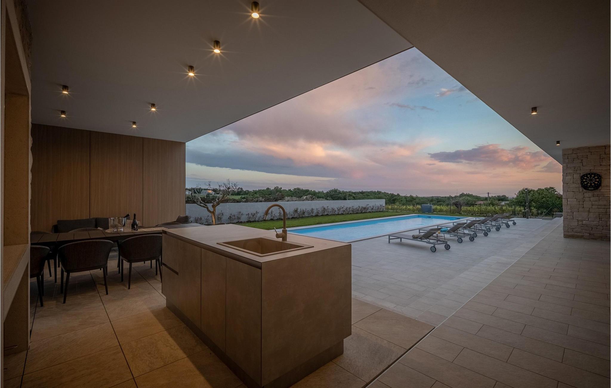 Die wunderschöne Villa La Reina Brtonigla liegt in einer malerischen Stadt im nordwestlichen Teil Istriens. Der moderne Baustil, das minimalistische Innendesign und das ästhetisch ansprechende Äußere dieser Villa machen Ihren Urlaub zu einer echten Luxusoase. Die Villa liegt an einem ruhigen Ort voller Grün und Natur, abseits vom Lärm und der Hektik der Stadt. Die maximale Kapazität der Villa beträgt 13 Personen und die Villa verfügt über insgesamt 5 Luxuszimmer mit eigenem Bad. Drei Zimmer verfügen über Doppelbetten und die anderen beiden Zimmer über jeweils zwei Einzelbetten. Außerdem gibt es ein Schlafsofa und zwei Zustellbetten. Zwei Zimmer befinden sich im Obergeschoss und drei weitere Schlafzimmer im Erdgeschoss. Im Obergeschoss befinden sich zwei geräumige Terrassen mit Whirlpool, auf denen Sie ruhige Abende genießen und den Sonnenuntergang beobachten können. Das Erdgeschoss der Villa verfügt über eine moderne Küche, ein geräumiges Esszimmer, ein luftiges Wohnzimmer und zwei zusätzliche Toiletten. Auf der großen Terrasse der Villa befindet sich ein wunderschöner Hydromassage-Pool von 60 m² und einer Tiefe von 1,35 m, umgeben von 8 Liegestühlen. Zum Poolzubehör gehört die Heizung, allerdings gegen Aufpreis. Im Innenhof der Villa gibt es eine Sommerterrasse mit Esstisch und Grill, wo Sie typisch istrische Spezialitäten zubereiten können. Zu den weiteren Einrichtungen der Villa gehören ein Trampolin und ein Kinderspielplatz, Fahrräder, Darts oder Badminton, an denen die Kleinsten sicherlich Freude haben werden. Neben dem bereits erwähnten Whirlpool verfügt die Villa auch über eine Sauna, die sich im Erdgeschoss der Villa befindet. Im Innenhof der Villa gibt es drei Parkplätze und zwei zusätzliche Plätze außerhalb des Innenhofs. Villa La Reina Brtonigla ist Teil eines größeren Komplexes aus drei Villen. Sie wird als separate Villa vermietet, bildet aber zusammen mit den benachbarten Schwestervillen Primavera und Estate einen modernen Komplex, der insgesamt 33 Gästen Unterkunft bietet. Die nebeneinander liegenden Villen sind eine ideale Wahl für große Gruppen und Familien, die den perfekten Urlaub inmitten unberührter Natur genießen möchten. Alle drei Villen sind in ihrer Aufteilung sehr ähnlich, ausgestattet mit einer schönen Terrasse mit Pool, zusätzlichen Einrichtungen wie Fahrrädern oder Whirlpools. Villa Estate und Villa Primavera liegen nebeneinander, verfügen jeweils über 4 Zimmer und sind für maximal 10 Personen geeignet, während die größere und etwas weiter entfernte Villa La Reina Brtonigla über 5 Zimmer und eine maximale Kapazität für 13 Personen verfügt . Brtonigla bietet eine Handvoll interessanter Inhalte, die Ihren Urlaub mit Aktivitäten wie Weintouren, Olivenöltouren oder Trüffeljagdtouren füllen werden. Istrien ist bekannt für sein außergewöhnlich hochwertiges gastronomisches Angebot und eine lange Tradition im Anbau und der Verarbeitung von Weinreben und Oliven. Trüffel sind eine weitere teure gastronomische Besonderheit Istriens, und die Standorte dieses unterirdischen Juwels befinden sich in Zentralistrien, im Motovun-Wald. Besuchen Sie unbedingt die umliegenden Sehenswürdigkeiten wie die Mramornica-Höhle in der Nähe von Brtonigla. Die Höhle wird erstmals in den Aufzeichnungen von Albert Fortis erwähnt, einem berühmten italienischen Reiseschriftsteller aus dem 18. Jahrhundert. Die Temperatur der Höhle beträgt konstant 14 Grad, weshalb sie als Lager für Barriquefässer dient, in denen hochwertige istrische Weine reifen. Für alle, die lieber kulturelle und historische Denkmäler erkunden möchten, gibt es an der Küste zahlreiche Sehenswürdigkeiten und historische Städte wie Umag oder Porec, die viele monumentale Gebäude aus der Antike verbergen. Im Landesinneren Istriens finden Sie auch das malerische Motovun, eine mittelalterliche Stadt, deren versteckte Gassen viele Geheimnisse des magischen Istriens offenbaren. Gönnen Sie sich die Erlebnisse Istriens und genießen Sie den Luxus der Villa La Reina Brtonigla, den Luxus, den Sie verdienen. Eine Poolheizung ist gegen eine zusätzliche Gebühr verfügbar, die vor Ort zu zahlen ist. Haustiere sind in dieser Unterkunft nach Ermessen des Eigentümers und gegen eine Gebühr gestattet. Bitte beachten Sie, dass diese Unterkunft Jugendgruppen nur gegen Zahlung einer erstattbaren Kaution von 1000 EUR akzeptiert. Eine Jugendgruppe in dieser Unterkunft besteht aus Personen im Alter von 27 Jahren oder jünger. Wenn Sie eine Jugendgruppe sind, werden Sie bei der Ankunft gebeten, die Kaution zu hinterlegen. Alle Beträge, die zur Behebung von Schäden an der Unterkunft erforderlich sind, die Sie während Ihres Aufenthalts verursacht haben, werden von der Kaution abgezogen und anschließend an Sie zurückerstattet.