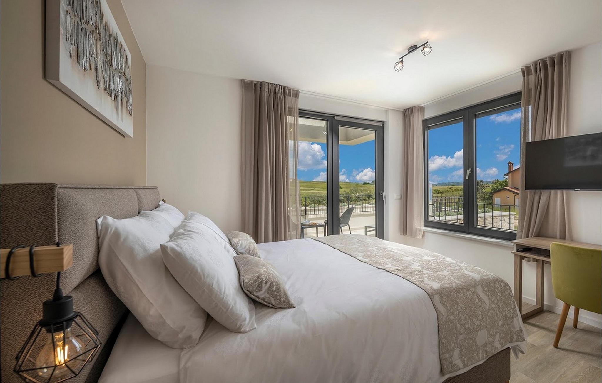 Das schöne, moderne Villa Estate befindet sich in einem kleinen Dorf Brtonigla im nordwestlichen Teil der Halbinsel Istrien. Umgeben von unberührter Natur ist diese Villa eine wahre Oase der Ruhe, die Ihren Urlaub zum Vergnügen machen wird. Die Villa bietet Platz für insgesamt 10 Personen und verfügt über 4 Schlafzimmer mit eigenem Bad. Im Obergeschoss der Villa befinden sich 3 Schlafzimmer und im Erdgeschoss ein weiteres Schlafzimmer. Im ersten Stock der Villa gibt es außerdem zwei Terrassen, auf denen Sie schöne und entspannende Momente genießen können. Im Erdgeschoss der Villa befinden sich eine moderne Küche, ein Esszimmer und ein geräumiges Wohnzimmer. Auf der großzügigen Terrasse der Villa befindet sich ein wunderschöner beheizter Pool von 40m2 und einer Tiefe von 1,35 m. Rund um den Pool stehen 6 Liegestühle bereit, auf denen Sie die Sommersonne genießen können. Im Innenhof der Villa gibt es auch eine Sommerküche sowie einen Tisch und Grill im Freien. Im Innenhof der Villa finden Sie einen Kinderspielplatz mit Trampolin und Fahrrädern, außerdem verfügt die Villa über zusätzliche Einrichtungen wie Whirlpool, Darts oder Badminton. Im Innenhof der Villa stehen Ihnen zwei Parkplätze zur Verfügung. Villa Estate ist Teil eines größeren Komplexes aus drei Villen. Sie wird als separate Villa vermietet, bildet aber zusammen mit den benachbarten Schwestervillen Primavera und La Reina Brtonigla einen modernen Komplex, der insgesamt 33 Gästen Unterkunft bietet. Die nebeneinander liegenden Villen sind eine ideale Wahl für große Gruppen und Familien, die den perfekten Urlaub inmitten unberührter Natur genießen möchten. Alle drei Villen sind in ihrer Aufteilung sehr ähnlich, ausgestattet mit einer schönen Terrasse mit Pool, zusätzlichen Einrichtungen wie Fahrrädern oder Whirlpools. Villa Estate und Villa Primavera liegen nebeneinander, verfügen jeweils über 4 Zimmer und sind für maximal 10 Personen geeignet, während die größere und etwas weiter entfernte Villa La Reina Brtonigla über 5 Zimmer und eine maximale Kapazität für 13 Personen verfügt . In Brtonigla werden Sie sicherlich zahlreiche Aktivitäten in der Natur oder das interessante kulturelle und gastronomische Angebot Istriens genießen. Verpassen Sie nicht, einige der Spezialitäten Istriens zu probieren, wie zum Beispiel den teuren Trüffel, einen unterirdischen Wildpilz, der im Motovun-Wald im Zentrum Istriens wächst. Neben Trüffeln ist Istrien auch für sein außergewöhnlich hochwertiges Wein- und Olivenölangebot bekannt und liegt damit vor Europameistern wie Spanien oder Frankreich. In Istrien stoßen Sie auf zahlreiche Weinberge und Weinstraßen, deren Landschaft, die Schönheit der Natur und die jahrhundertealte Kultur des Weinanbaus niemanden gleichgültig lassen. In Brtonigla finden in den Sommermonaten verschiedene Festivals statt, die dem reichen öno-gastronomischen Angebot Istriens gewidmet sind. Verpassen Sie nicht, das Festival der Schokolade und des Weins zu besuchen, das alle Gourmetfreuden hervorrufen wird, oder das Festival des istrischen Malvasia, einer einheimischen Sorte istrischen Weins. Nicht weit von Brtonigla entfernt liegt der Aquapark Istralandia, dessen Wasserabenteuer sicherlich auch die Kleinsten genießen werden. Etwas weiter entfernte Strände befinden sich im Stadtzentrum von Umag, beispielsweise der Felsenstrand Karigador oder der Strand Kanova. Gönnen Sie sich den ganzen Charme des magischen Istriens und gönnen Sie sich erholsame Momente im Luxus von Villa Estate! Eine Poolheizung ist gegen eine zusätzliche Gebühr verfügbar, die vor Ort zu zahlen ist. Haustiere sind in dieser Unterkunft nach Ermessen des Eigentümers und gegen eine Gebühr gestattet. Bitte beachten Sie, dass diese Unterkunft Jugendgruppen nur gegen Zahlung einer erstattbaren Kaution von 1000 EUR akzeptiert. Eine Jugendgruppe in dieser Unterkunft besteht aus Personen unter 27 Jahren. Wenn Sie eine Jugendgruppe sind, werden Sie bei der Ankunft gebeten, die Kaution zu hinterlegen. Alle Beträge, die zur Behebung von Schäden an der Unterkunft erforderlich sind, die Sie während Ihres Aufenthalts verursacht haben, werden von der Kaution abgezogen und anschließend an Sie zurückerstattet.