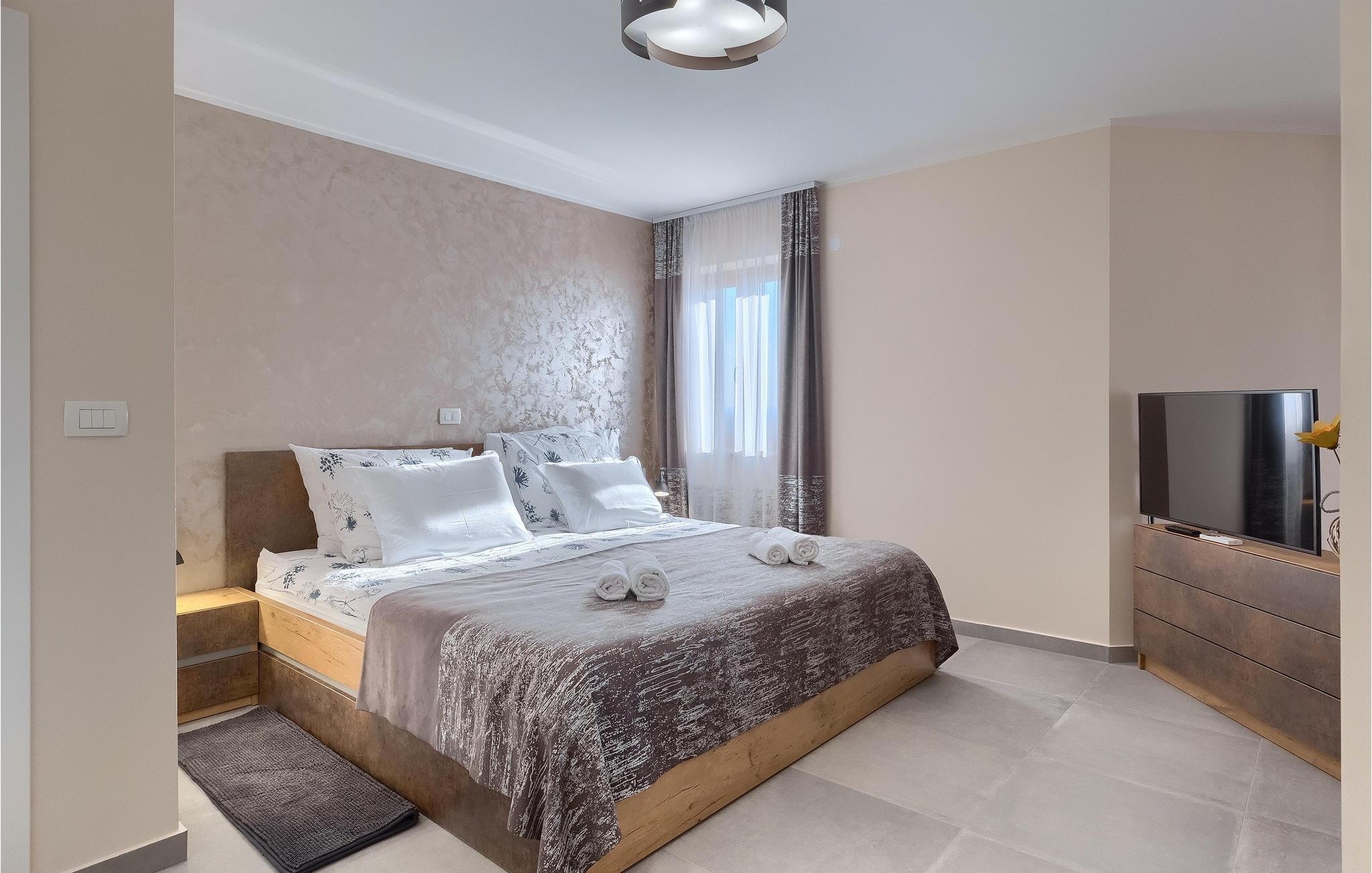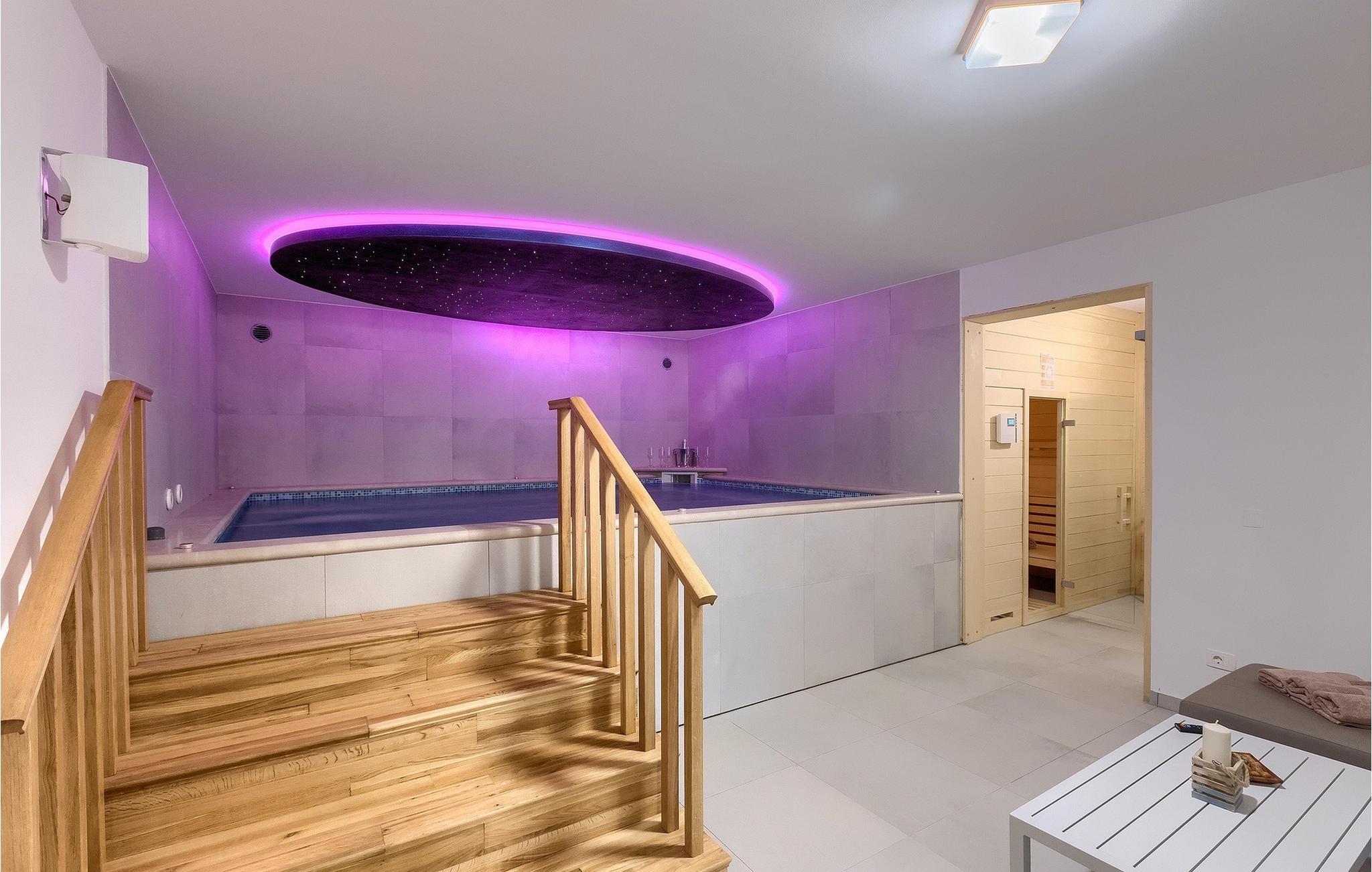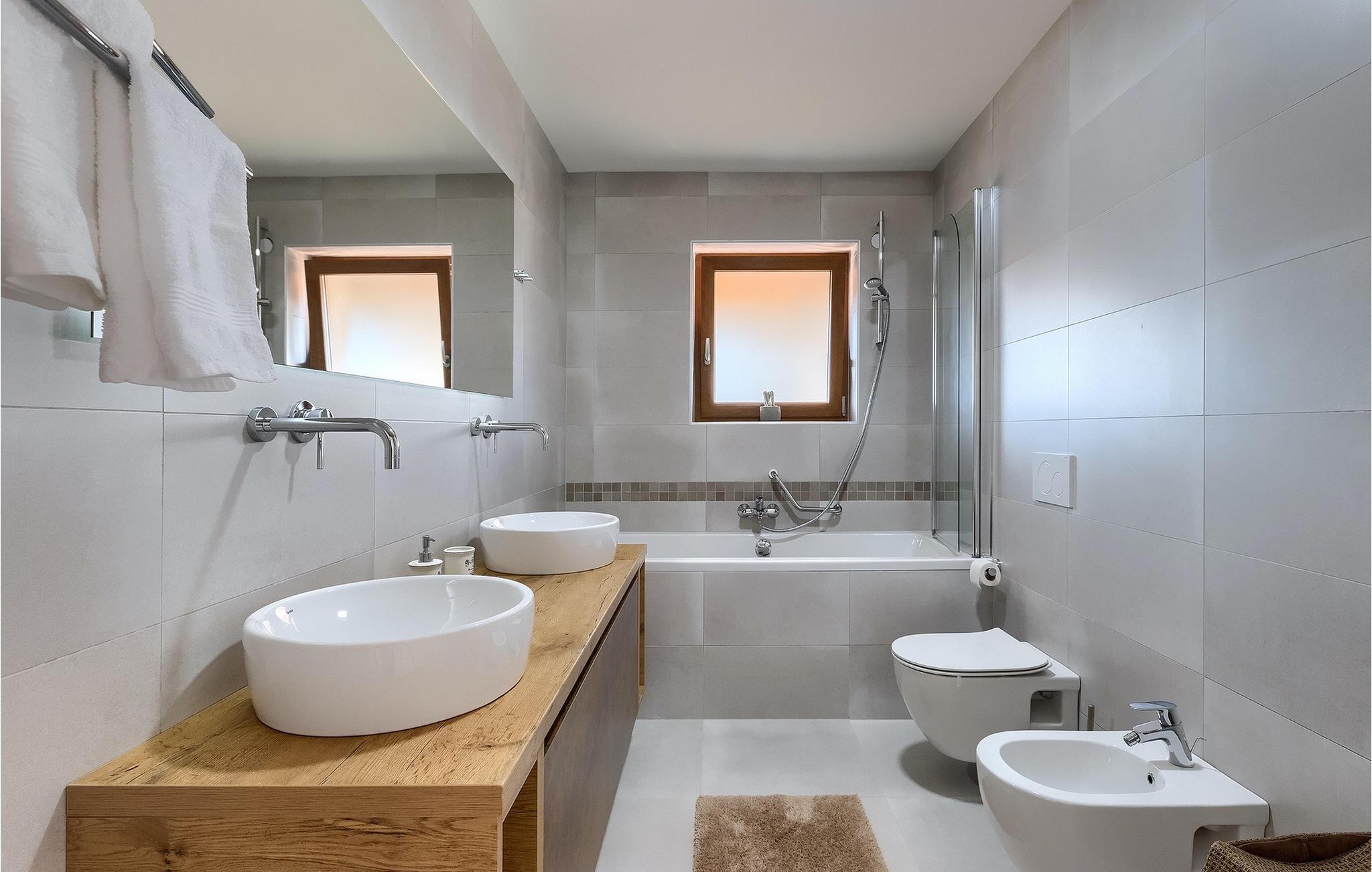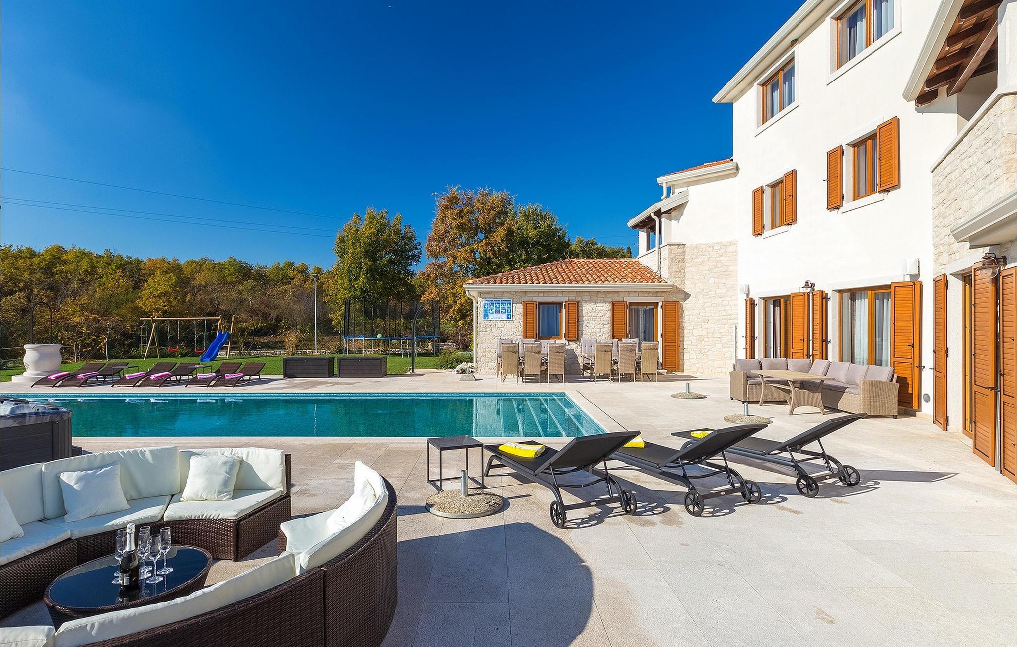 Die einzigartige Villa San Lorenzo befindet sich in dem kleinen Dorf Nova Vas in der Nähe der Küstenstadt Novigrad. Diese Villa ist eine perfekte Wahl für diejenigen, die einen erholsamen Urlaub verbringen möchten. Die Villa verfügt über 6 liebevoll dekorierte Schlafzimmer und bietet Platz für bis zu 14 Personen. Sie werden von der Inneneinrichtung der Villa beeindruckt sein. Das offene Erdgeschoss besteht aus einem hellen Wohnbereich mit Kamin, einer voll ausgestatteten Küche mit Essbereich und einer separaten Toilette. Im Erdgeschoss befinden sich außerdem 3 wunderschön dekorierte Schlafzimmer mit eigenen Badezimmern. Im ersten Stock sind zwei weitere gemütliche Schlafzimmer mit eigenem Bad. Der zweite Stock ist für das Hauptschlafzimmer mit eigenem Bad reserviert. Das Untergeschoss ist der beste Teil des Hauses. Dort befindet sich eine private Taverne und ein Esszimmer mit Holzkohlengrill, das sich perfekt für ein Familientreffen eignet. Wenn Sie sich entspannen möchten, gibt es einen Wellnessbereich mit einem beheizten Pool, eine Sauna und ein privates Fitnessstudio. Vor dem Haus finden Sie einen großen Pool, einen Außen-Whirlpool und ein Sonnendeck mit Liegestühlen, der perfekte Ort, an dem Sie warme Sommertage verbringen können, während Sie an einem kalten und erfrischenden Getränk nippen. Neben der Villa befindet sich ein Kinderspielplatz und ein Trampolin. Die Villa verfügt über 8 Fahrräder, mit denen Sie die Umgebung entdecken und erkunden können. Die Villa San Lorenzo ist eine elegante und geräumige Villa, die ihren Gästen alles bietet, was sie sich wünschen. HINWEIS: Massageservice auf Anfrage verfügbar (gegen Aufpreis). Die Gastgeberin steht den Gästen in den Morgenstunden zur Verfügung. WICHTIG: Villa San Lorenzo ist kein Partyhaus und jüngere Besuchergruppen sind nicht erlaubt.Die Villa San Lorenzo befindet sich in dem istrischen Ort Nova Vas, unweit der Küstenstadt Novigrad. Novigrad ist ein beliebtes Touristenziel, das viele Möglichkeiten bietet, wie zum Beispiel Spitzenrestaurants und Bars. Schlendern Sie durch die engen Gassen der Stadt und besuchen Sie die vielen Galerien und Geschäfte, die traditionelle Souvenirs verkaufen. Zusätzlich zu den kulturellen Attraktionen gibt es in Novigrad zahlreiche Kiesel- und Sandstrände mit vielen Strandbars, an denen Sie heiße Sommertage genießen können. Für die Jüngsten gibt es unweit der Villa San Lorenzo den größten Wasserpark Europas - Istralandia, den Sie sich nicht entgehen lassen sollten. Besuchen Sie den Wald von Motovun und suchen Sie nach weißen Trüffeln. Danach probieren Sie traditionelle istrische Gerichte, wie Fuzi mit Trüffeln, Pljukanci mit Wild oder istrische Suppe. Geschäfte, Restaurants und Cafés befinden sich im Umkreis von 600 Metern der Villa San Lorenzo.