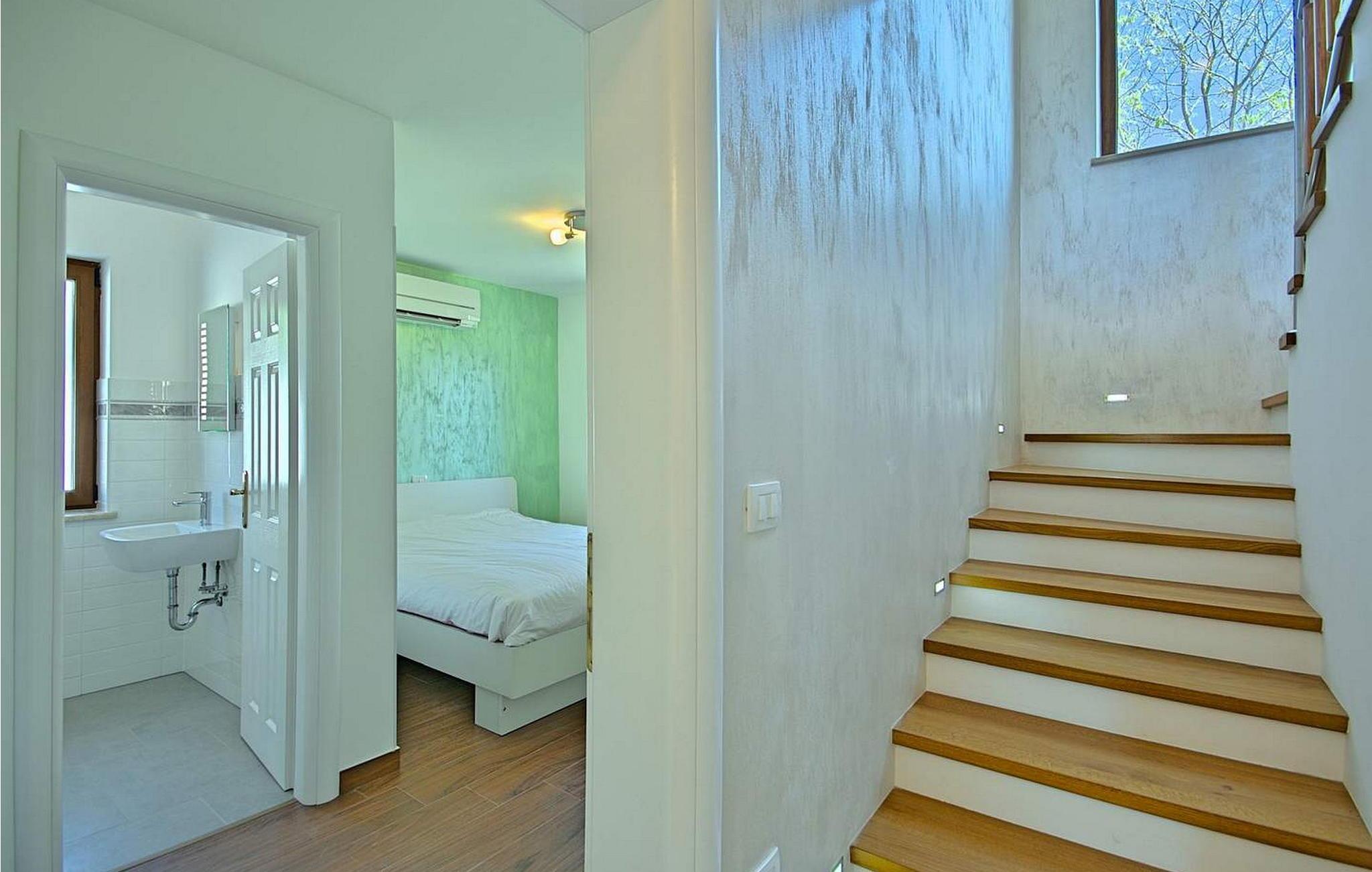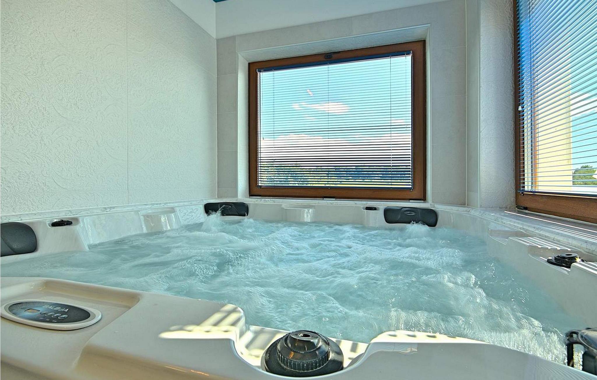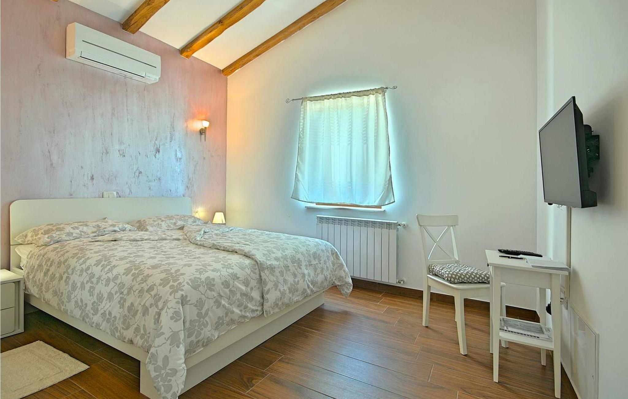 Villa Gloria Vita ist ein wunderschönes, modernes Ferienhaus in der ruhigen ländlichen Umgebung von Nova Vas, nur 8 km von Novigrad und dem nächsten Strand entfernt. Dieser friedliche Rückzugsort bietet einfachen Zugang zu lokalen Tavernen, Weinkellern und dem nahe gelegenen Wasserpark Istralandia. Die Villa befindet sich auf einem umzäunten Grundstück mit einem einladenden Außenpool, einer Sommerküche mit Gasgrill und einer Bar im Freien. Die überdachten Terrassen eignen sich perfekt, um Mahlzeiten im Freien zu genießen, während im Inneren der Villa ein Whirlpool für ultimative Entspannung zur Verfügung steht. Das Erdgeschoss der Villa erstreckt sich über drei Ebenen und umfasst ein gemütliches Wohnzimmer mit einer voll ausgestatteten Küche, einem Essbereich und einem Schlafsofa sowie zwei komfortable Schlafzimmer, beide mit eigenem Bad. Der erste Stock beherbergt ein privates Schlafzimmer mit Balkon und eigenem Bad und bietet einen ruhigen Rückzugsort. Unter dem Sonnendeck bietet das Untergeschoss einen klimatisierten Wohnbereich mit einem großen Esstisch, eine Küche mit Wein- und Bierzapfanlagen, einem Sofa, einem Fernseher und einem zusätzlichen Schlafzimmer mit Dusche/WC. Bitte beachten Sie, dass diese Unterkunft keine Jugendgruppen oder Junggesellenabschiede akzeptiert. Eine Jugendgruppe in dieser Unterkunft besteht aus Personen im Alter von 26 Jahren oder darunter.