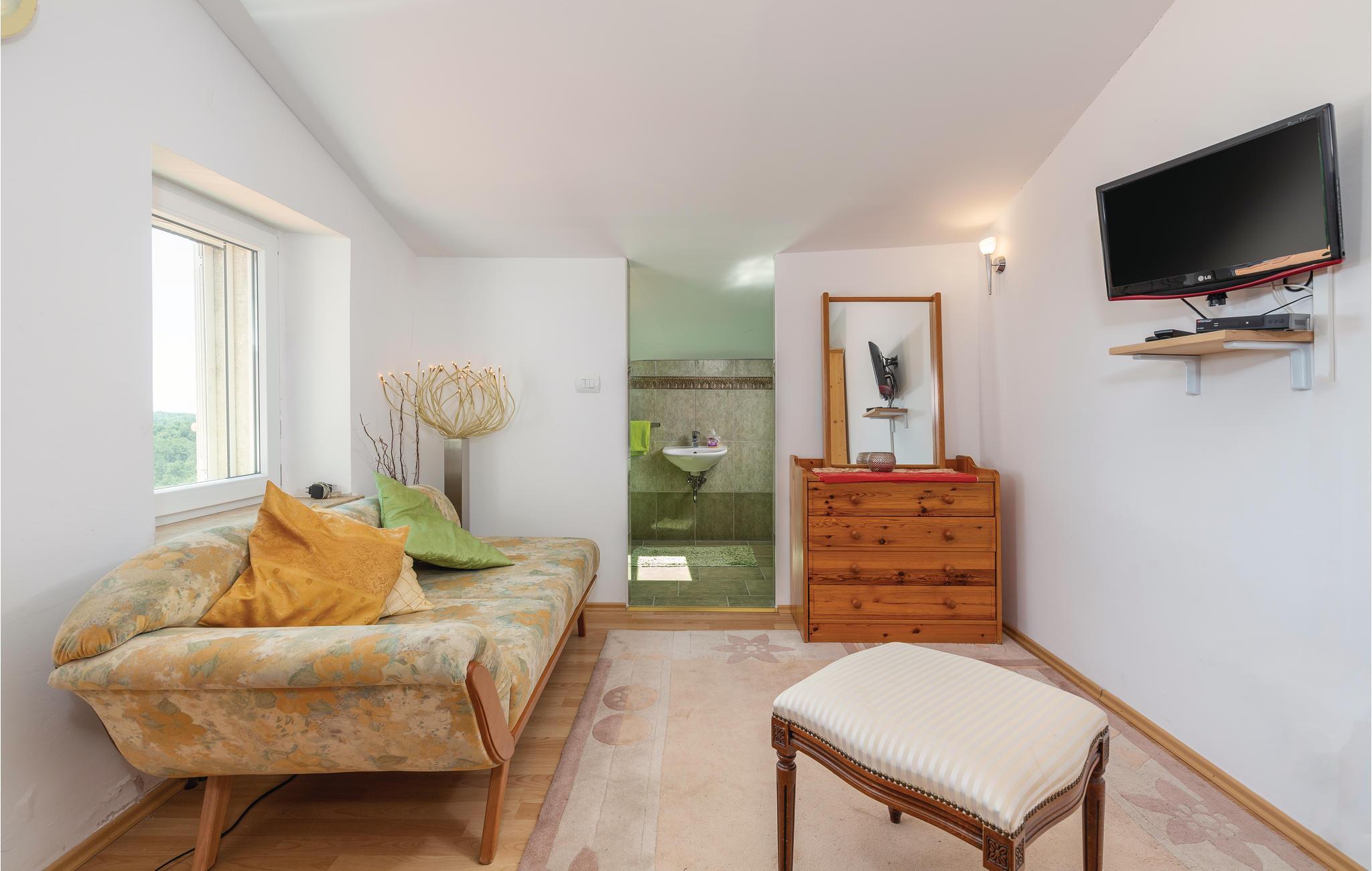 Sie wohnen mitten in malerischer Landschaft in kleinen Städtchen Momjan, das von Weinbergen umgeben ist. Durch die Hügellage wird Ihnen die Aussicht gleich mit angeboten. Sie blicken auf eine hügelige Landschaft und in der Ferne können Sie sogar das Meer sehen. Den besten Blick haben Sie Wintergarten und der Terrasse. Die Doppelhaushälfte aus Stein ist liebevoll renoviert und verspricht Ihnen einen unvergesslichen Urlaub. Vom Eingang im Parterre erreichen Sie zwei Schlafzimmer, das Bad und eine Teeküche. Über die Innentreppe kommen Sie in den ersten Stock, wo eine gut eingerichtete Küche und das Wohnzimmer zum Verweilen einladen. Im Dachgeschoss befinden sich nochmals zwei komfortable Schlafzimmer, eines davon hat ein eigenes Badezimmer. Im Haus verteilt finden Sie 5 Fernseher, 4 Klimaanlagen, 3 Kühlschränke, Zentralheizung und vieles mehr. Das Ambiente ist angenehm und lädt zum Wohlfühlen. Moskitonetze in allen Fenstern auch sorgen für eine angenehme Nachtruhe. So richtig entspannen können Sie sich beim Planschen im beheizten Pool und bei einem Gläschen Momjaner Muskat.