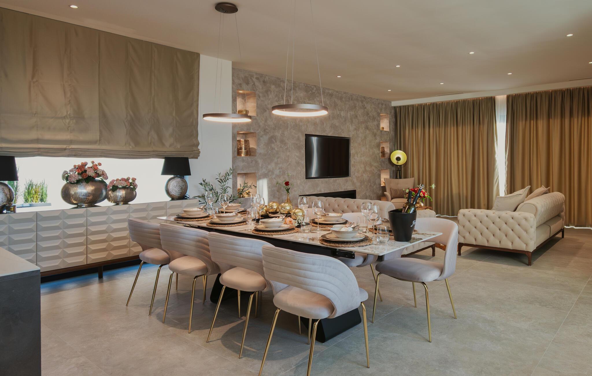 In dieser großzügigen und eleganten Villa ist alles auf Ihr Wohlbefinden ausgerichtet. Im stilvoll eingerichteten Interieur erwarten Sie harmonische Kochabende und gesellige Mahlzeiten. Verbringen Sie wohltuende Momente in der Sauna oder halten Sie sich an den Fitnessgeräten fit, während sich andere an der PlayStation vergnügen oder einen Film streamen.