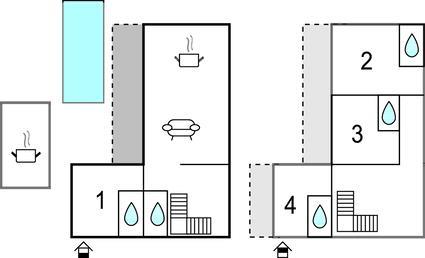 Badezimmer 5m2 (nr. 1) - WC. Warmes und kaltes Wasser. Dusche