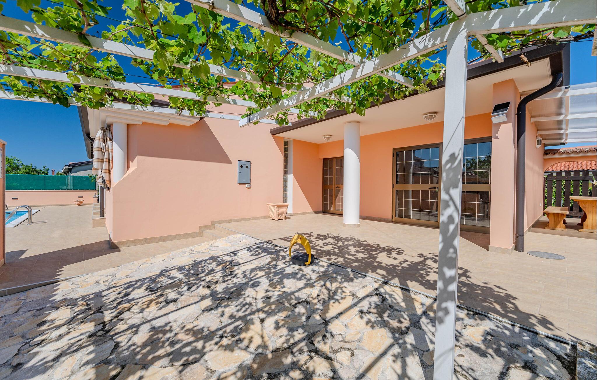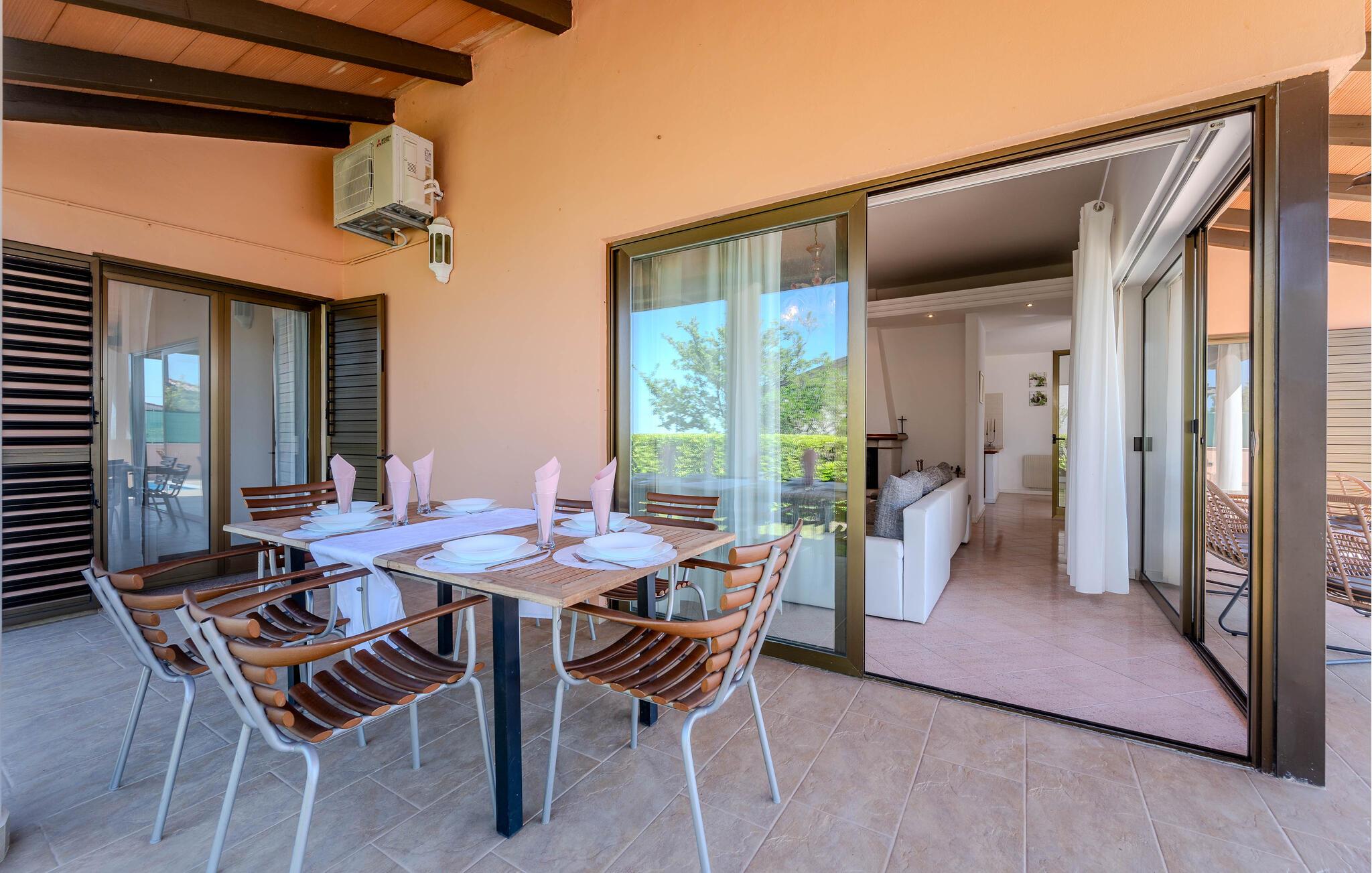 Genießen Sie den Urlaub im attraktiven Ferienhaus mit Pool und Whirlpool im Freien.