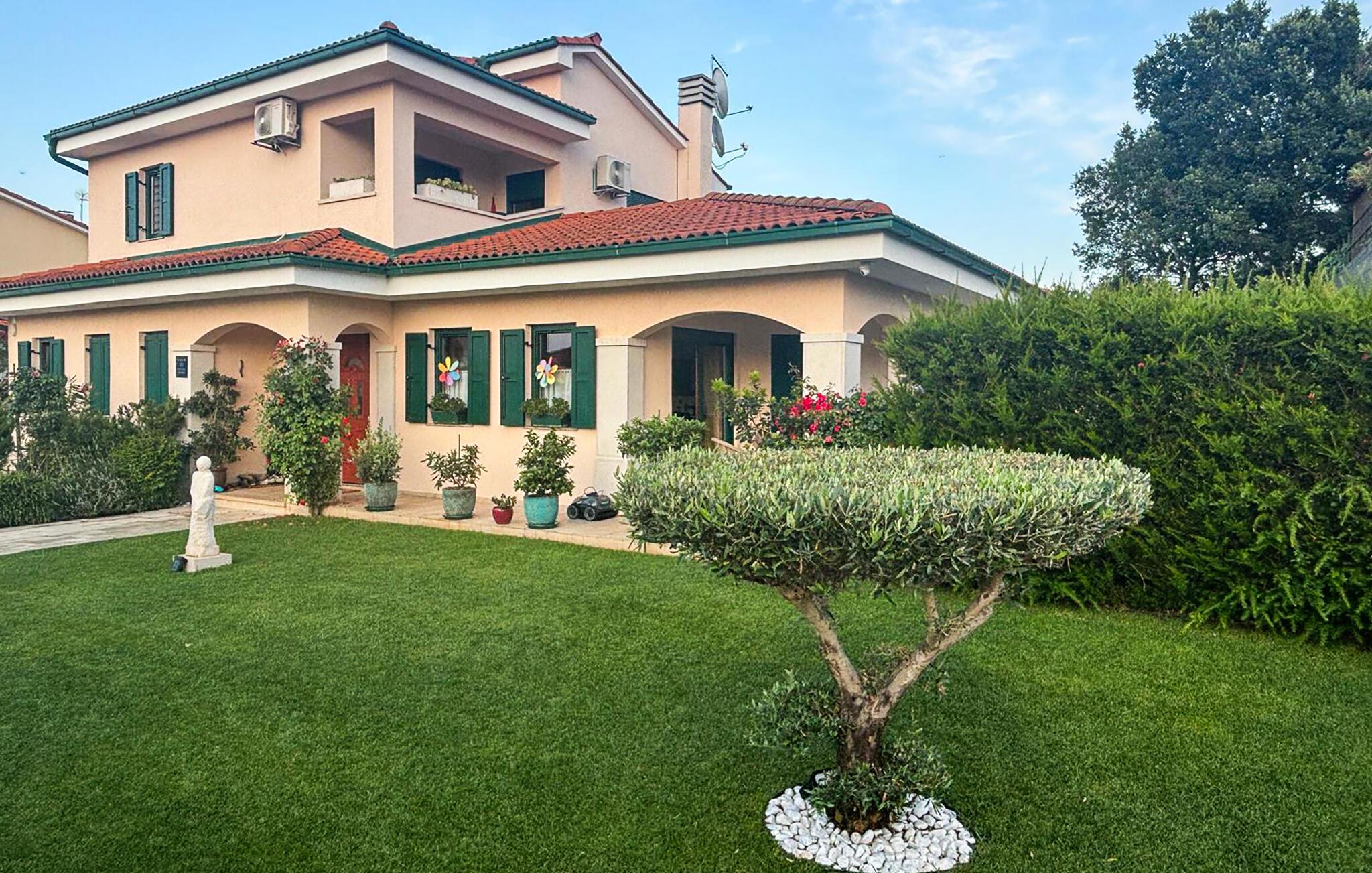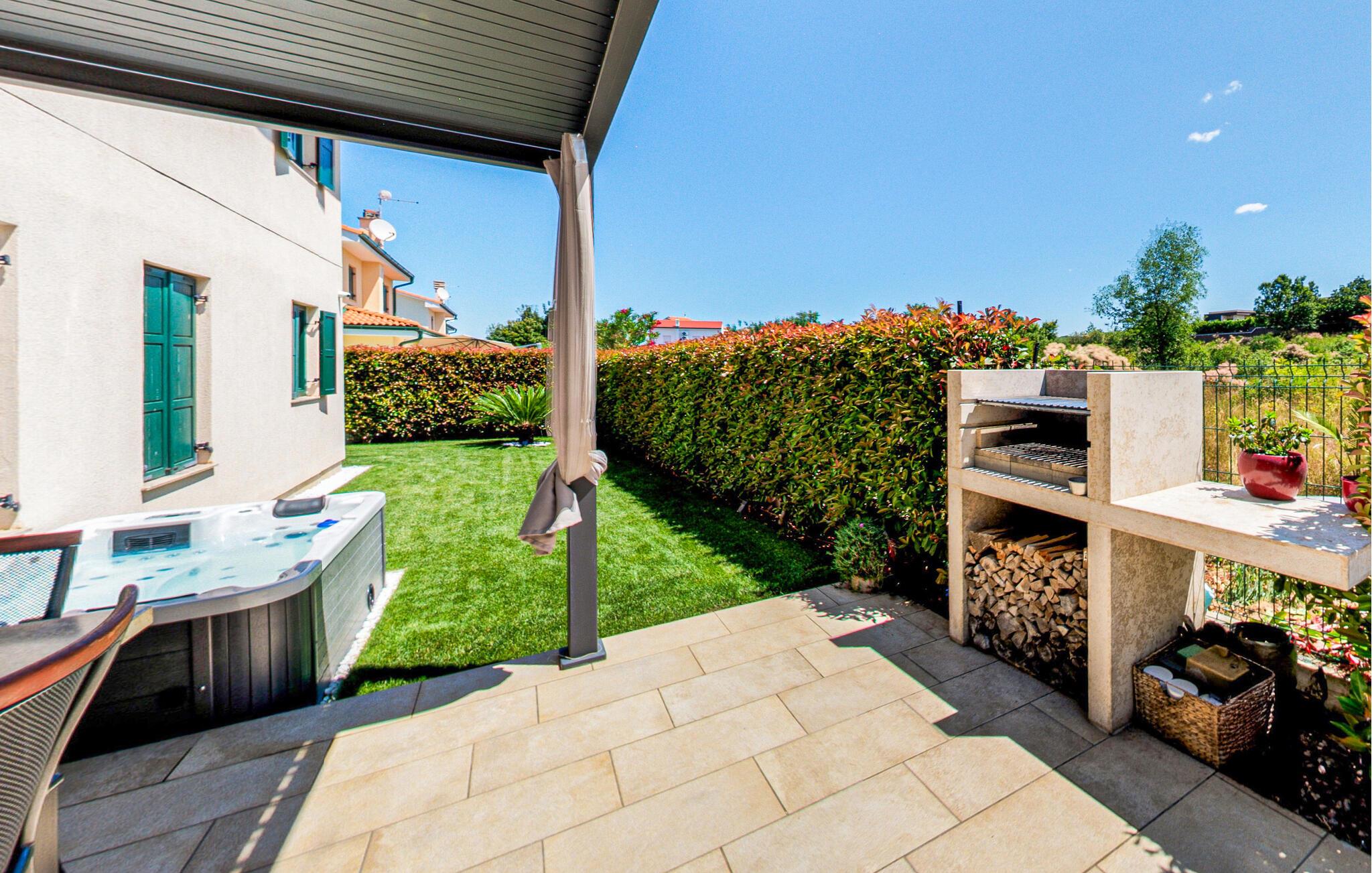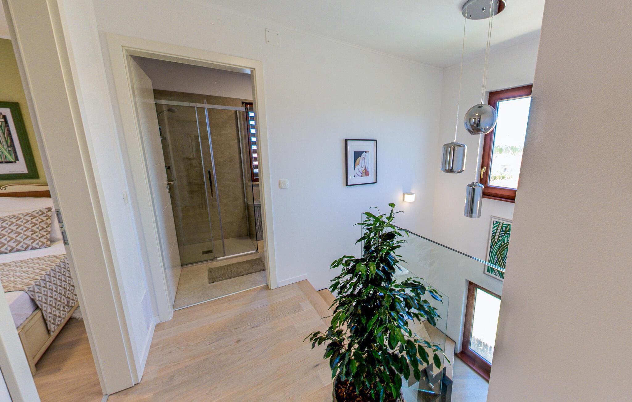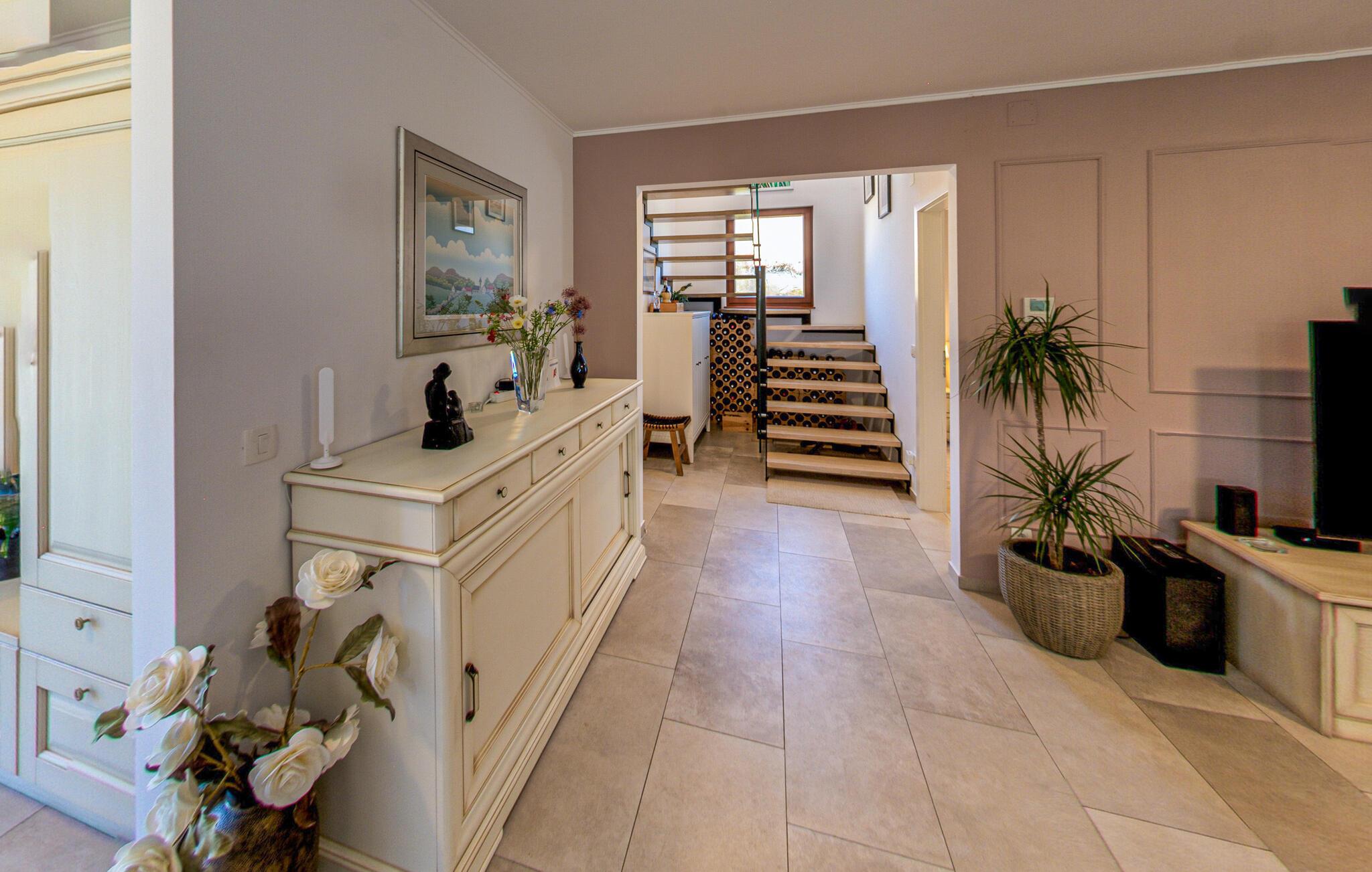 In diesem Ferienhaus schaffen Modernität und Gemütlichkeit eine ebenso einladende wie entspannte Atmosphäre. Helle, großzügige Räume, elegantes Mobiliar und liebevolle Details sorgen für ein Ambiente, in dem Sie schnell zur Ruhe kommen können. Vertiefen Sie sich auf dem bequemen Sofa in ein gutes Buch oder kochen Sie gemeinsam in der modernen Küche und lassen Sie den Abend bei einem Glas Wein ausklingen. Oder genießen Sie einfach den einzigartigen Blick auf das Meer und die Dolomiten sowie auf drei Länder: Kroatien, Slowenien und Italien.