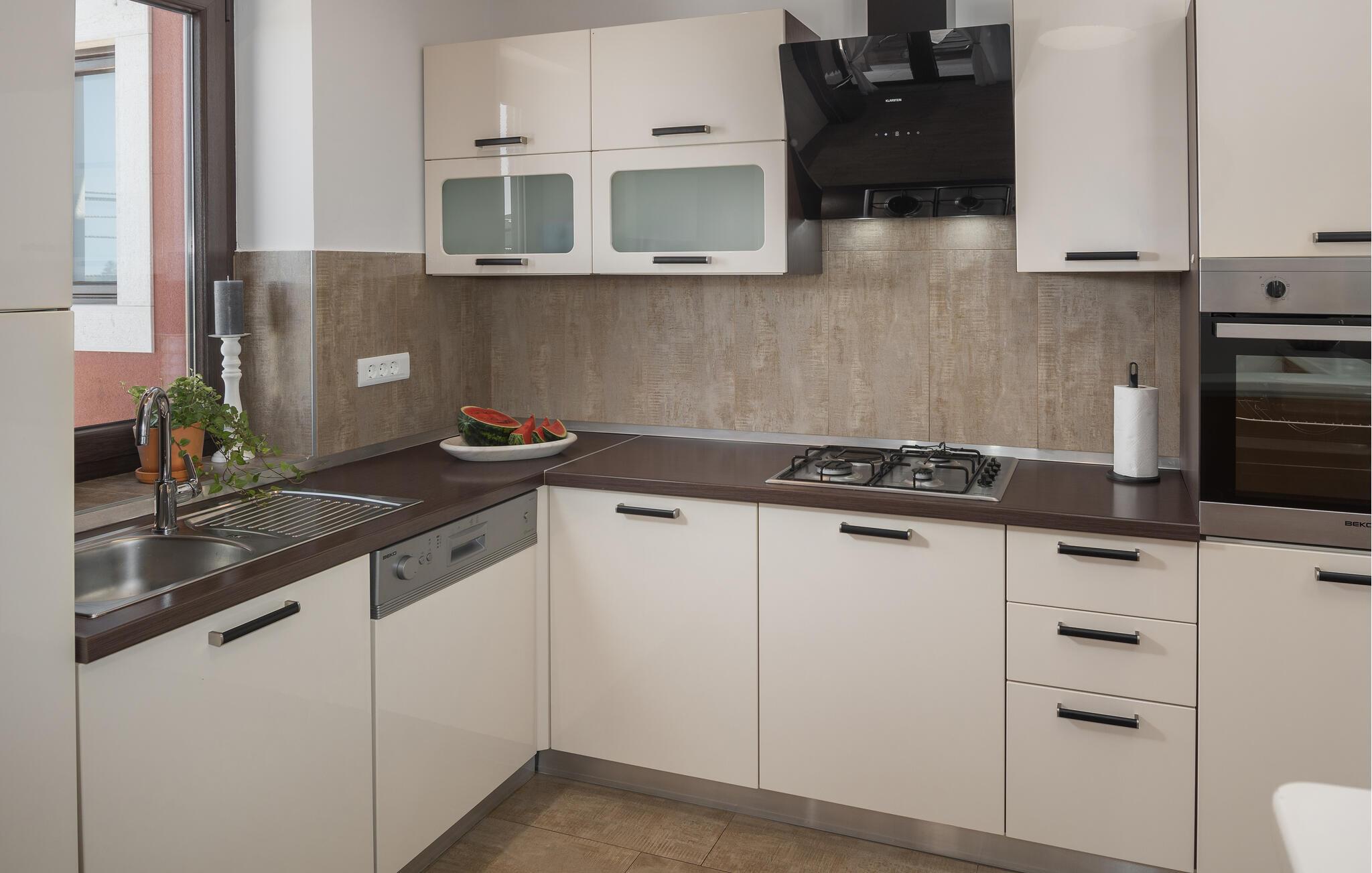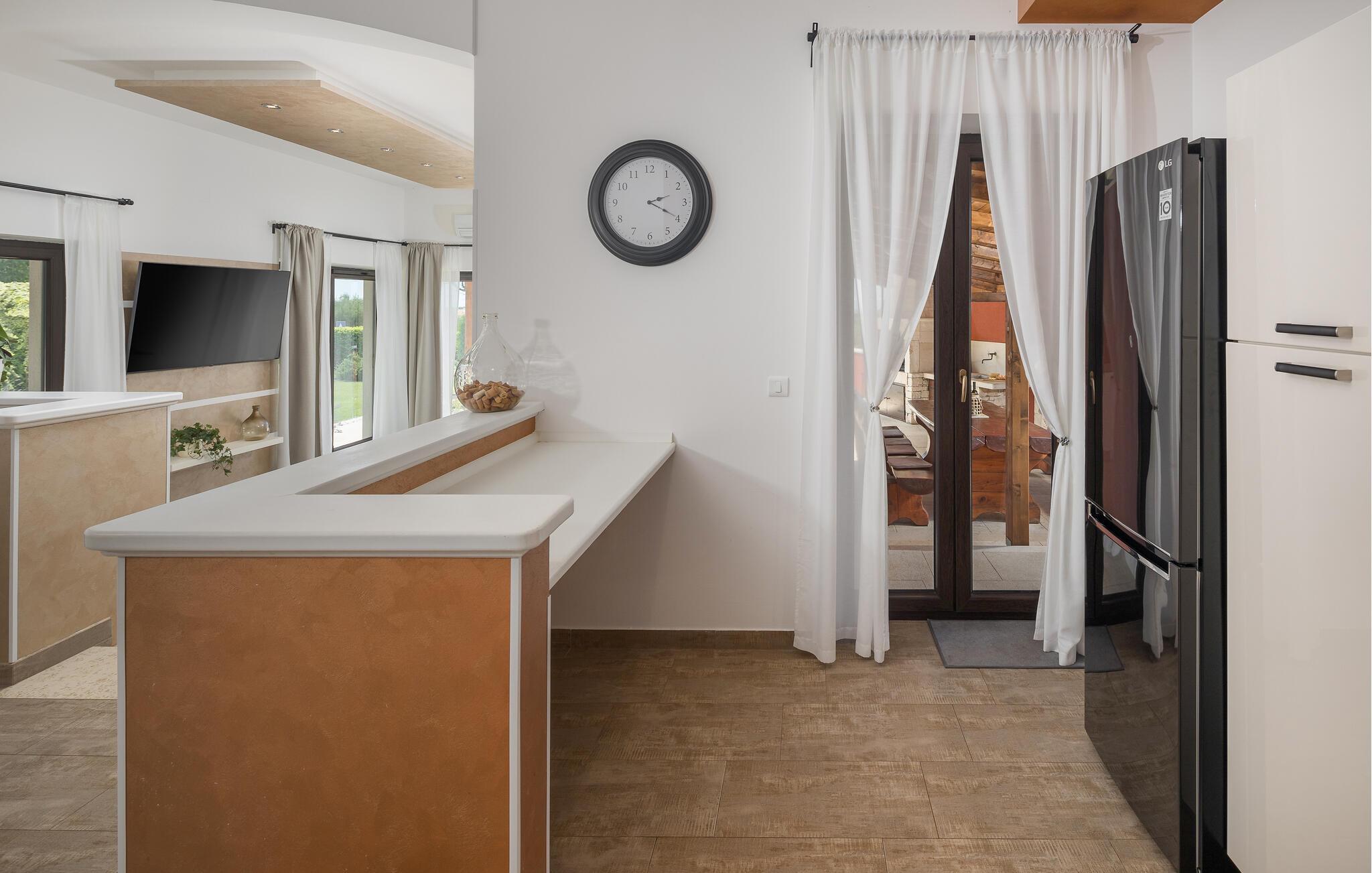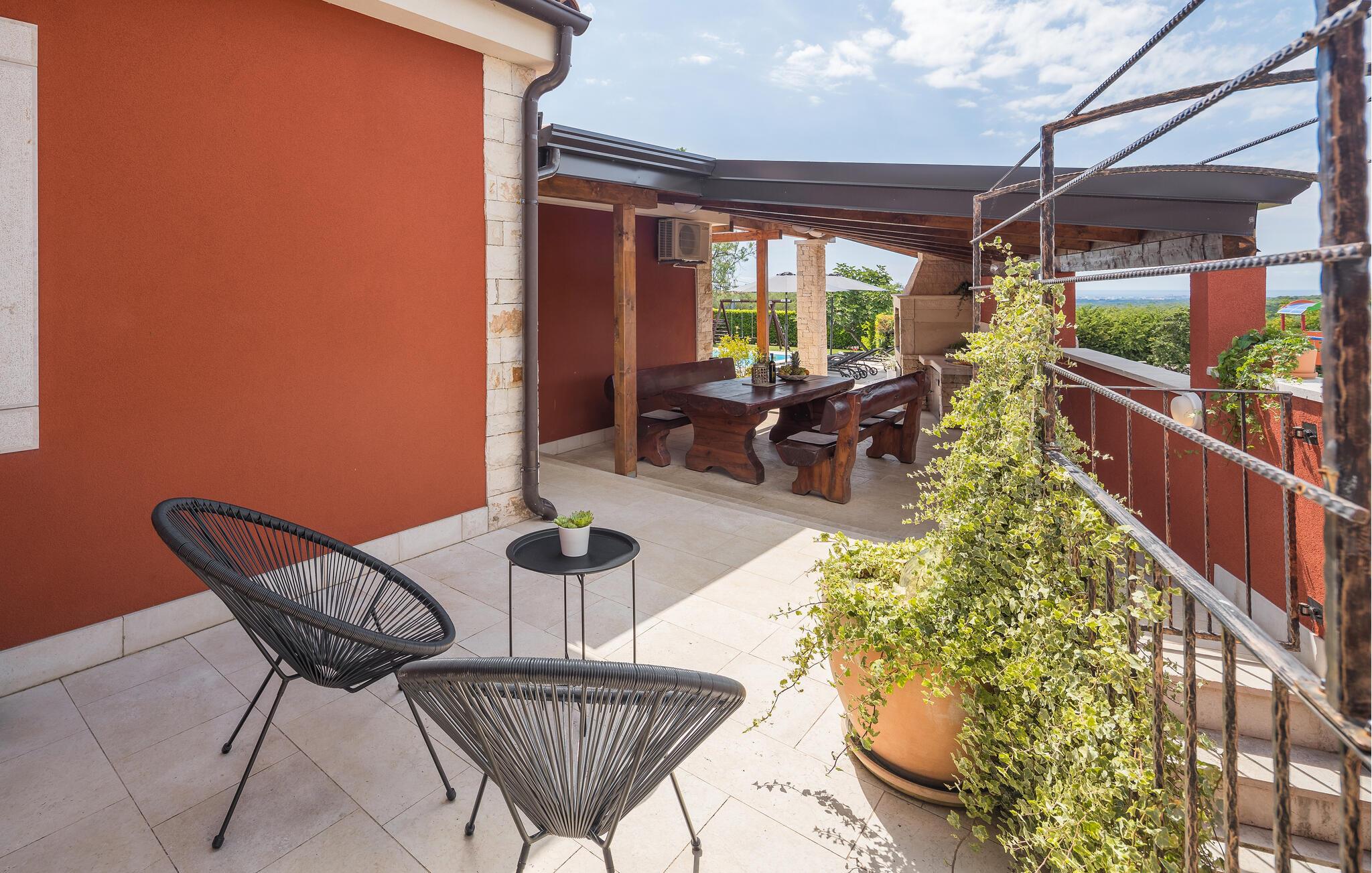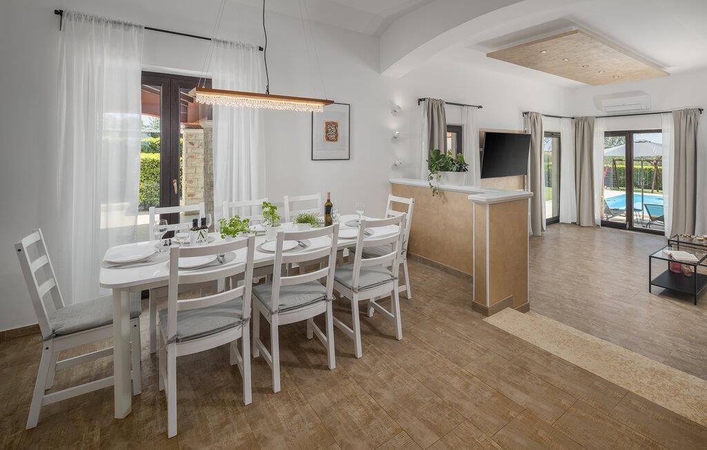 Verbringen Sie Ihren Urlaub in der Villa Marula, die viel Spaß für jede Generation garantiert. Während die Kinder auf dem Spielplatz Spaß haben, können Sie zwischen Tischtennis und Tischfußball wählen. Selbstverständlich steht Ihnen auch der private Pool zur Verfügung, in dem Sie entspannen können. Die Villa ist eine charmantes Landhaus mit offenem Grundriss, dank dessen sie noch gemütlicher und komfortabler wirkt. In der Villa findet man 4 Schlafzimmer und 3 Badezimmer. Da Villa Marula für Familien vorgesehen ist, können in der Villa bis zu 8 Personen beherbergt werden. Direkt aus dem Wohnzimmer hat man Zugang zu zwei Terrassen, die überdacht und ideal zum Entspannen im Schatten sind. Eine der Terrassen ist auch mit einem Steingrill und Gartenmöbeln aus massiven Holz ausgestattet. Besuchen Sie Istrien, die zu einer der schönsten Regionen Kroatiens zählt, und genießen Sie das sonnige Wetter, während die Luft nach Lavendel riecht und man hört nichts außer dem Vogelgesang.