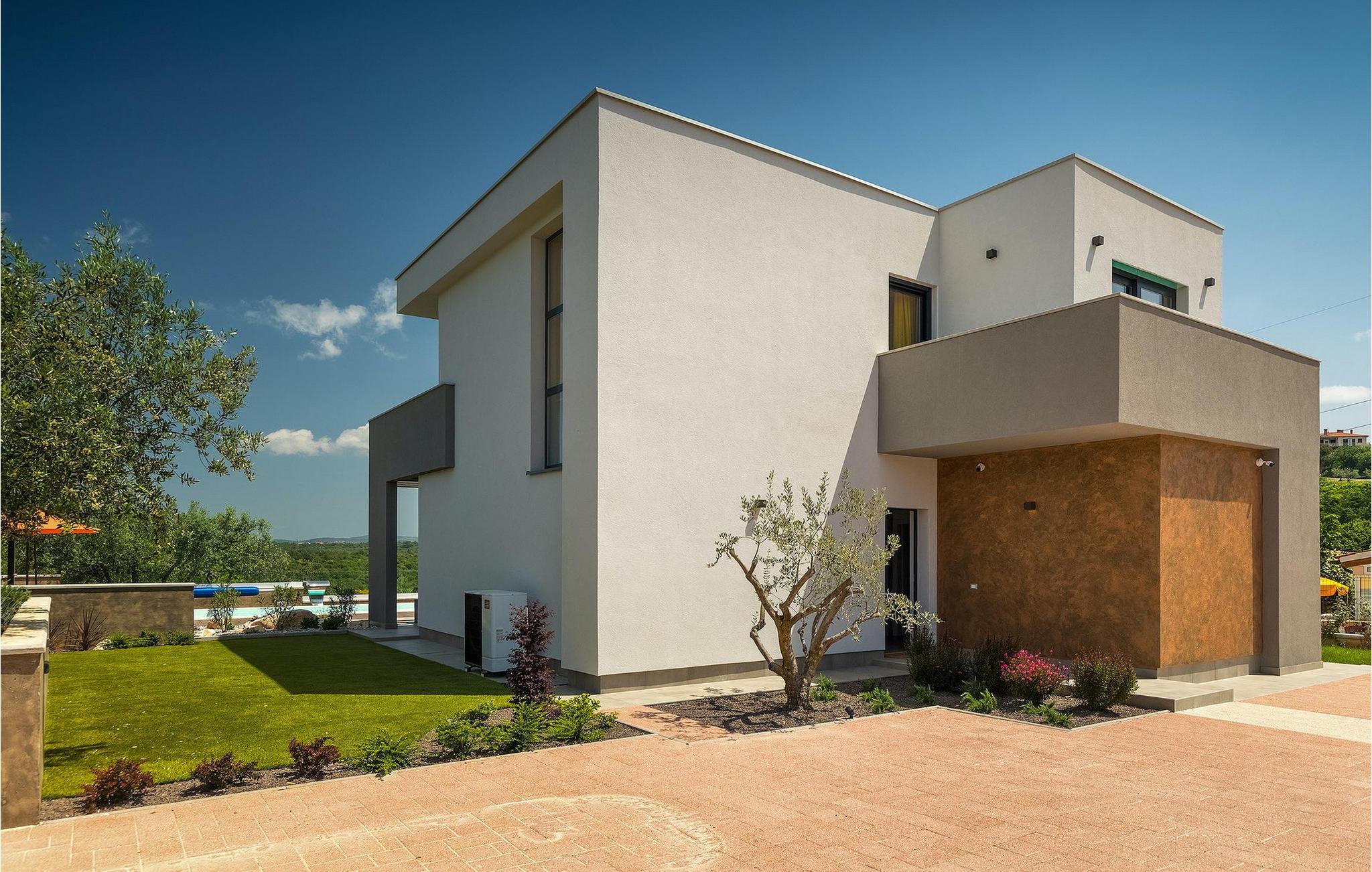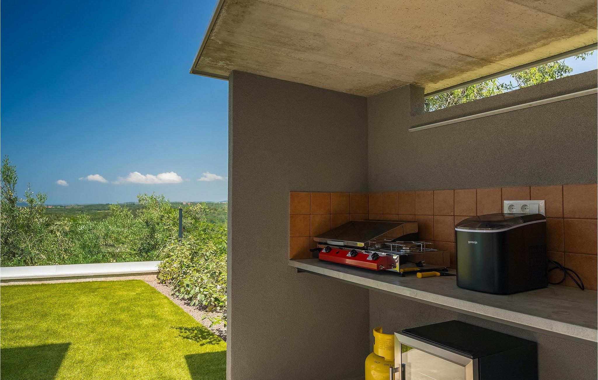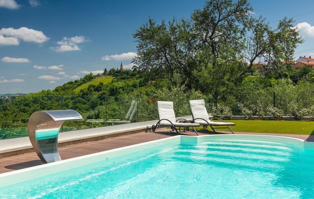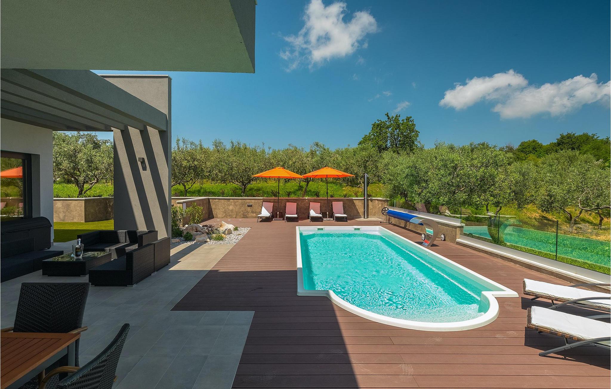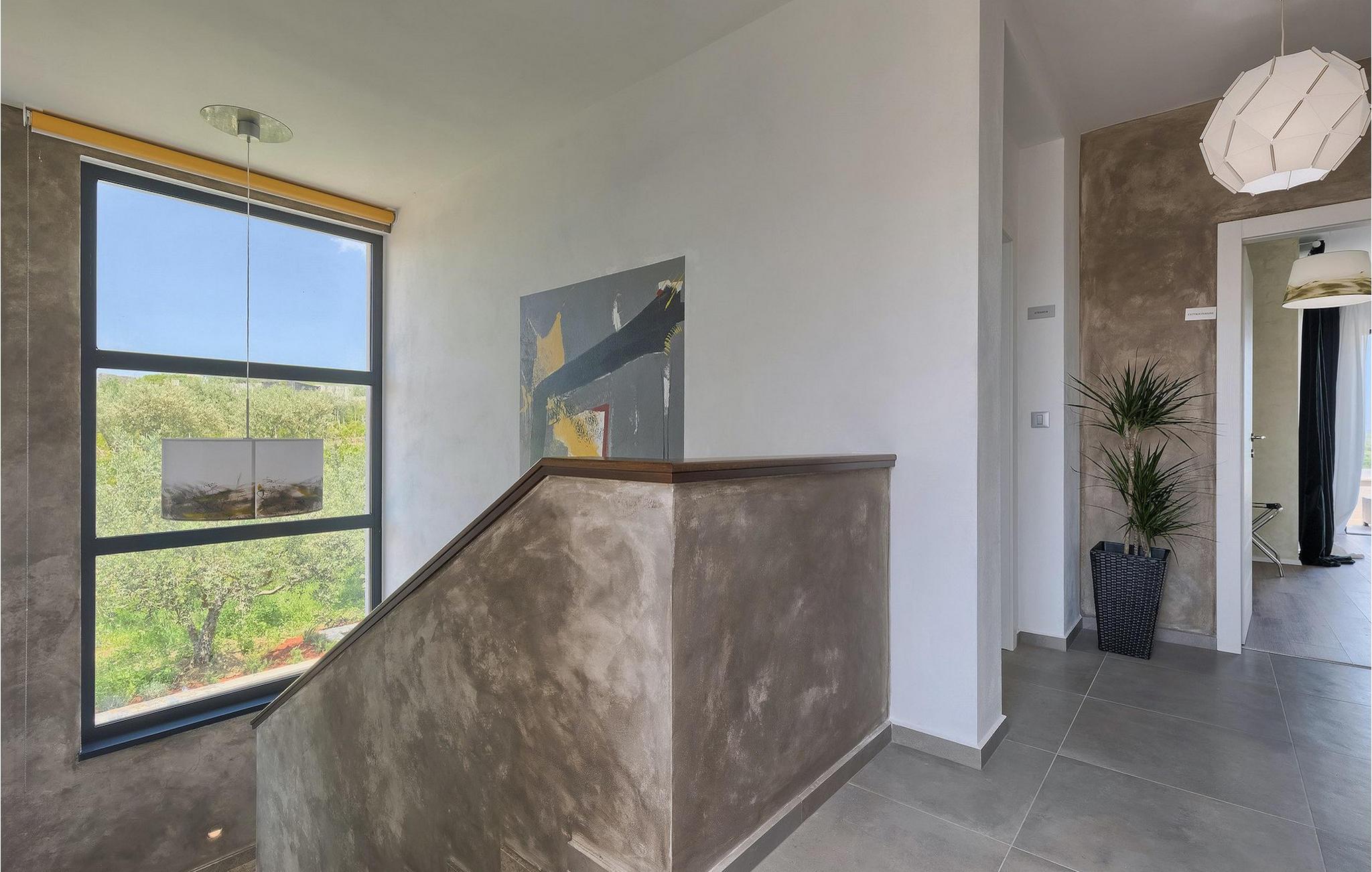 Dieses wunderschöne Anwesen befindet sich am Rande des schönen Buje in Istrien und ist eine moderne Villa mit 4 Schlafzimmern, die perfekt für 8 Personen geeignet ist. Sie befindet sich auf einem 615 m2 großen Grundstück und bietet einen privaten Parkplatz für 3 Autos und einen komplett umzäunten Garten. Im hinteren Teil des Gartens befindet sich der einladende private Pool, in dem Sie sich entspannen und den Blick auf die Altstadt von Buje und die Ruhe der umliegenden Natur genießen können. Im Poolbereich stehen Ihnen Liegestühle, eine Lounge zum Sitzen und Sonnenschirme zur Verfügung. Es gibt auch einen überdachten Teil auf der Terrasse mit einem Esstisch, an dem sich die ganze Gruppe versammeln und die Mahlzeiten auf dem Gasgrill im Freien genießen kann. Von dort haben Sie direkten Zugang zum Inneren der Villa. Hier befindet sich die völlig ausgestattete Küche mit Essbereich und das Wohnzimmer mit einem großen Sofa und Kamin. Ein Schlafzimmer und ein Badezimmer mit Dusche befinden sich im Erdgeschoss. Die restlichen 3 Schlafzimmer und 2 Badezimmer befinden sich in der oberen Etage und haben jeweils Zugang zur Terrasse - der perfekte Ort, um Ihren Tag mit Blick auf die grüne Umgebung zu beginnen! Alle Schlafzimmer sind klimatisiert und verfügen über ein Doppelbett. Die Villa ist in einem interessanten Stil mit viel Liebe zum Detail und einigen künstlerischen Gemälden an den Wänden eingerichtet. Dank der Lage der Villa, kann man Zentralistrien und die Küste Istriens leicht erreichen und erkunden. Kurz beschrieben, eine fablhafte Ferienvilla!Inmitten der bildschönen istrischen Landschaft, umgeben von zauberhafter Natur, befindet sich das historische Städtchen Buje, das schon in der Bronzezeit besiedelt wurde. Bereits vor ewigen Zeiten wurde dieses hügelige Gebiet mit Olivenfeldern bepflanzt, was bis heute unverändert geblieben ist. Die Lage, in der sich die Stadt befindet, garantiert eine ruhige und entspannende Atmosphäre, aber für diejenigen, die Lust haben, die Attraktionen nordwestlichen Istriens zu besichtigen, liegt Umag nur eine kurze Fahrt von Buje entfernt. Zahlreiche historische Sehenswürdigkeiten, 45km lange Küste, venezianische Häuser und barocke Kirchen sind nur ein Beispiel davon, was Umag seinen Besuchern bietet. In der Nähe von Novigrad und nur fünf Kilometer von der Küste entfernt, befindet sich der neueröffnete Aquapark Istralandia, der sowohl für Erwachsene als auch für Kinder geeignet ist. Zu den Highlights des Aquaparks zählen unterschiedliche Wasserrutschen, unter anderem die Free Fall Rutsche und die Familien Rafting Rutsche. Es ist unmöglich, in Istralandia nicht Spaß zu haben, da der Aquapark neben den Wasserrutschen auch Pools, Restaurants und verschiedene Animationsprogramme bietet.
