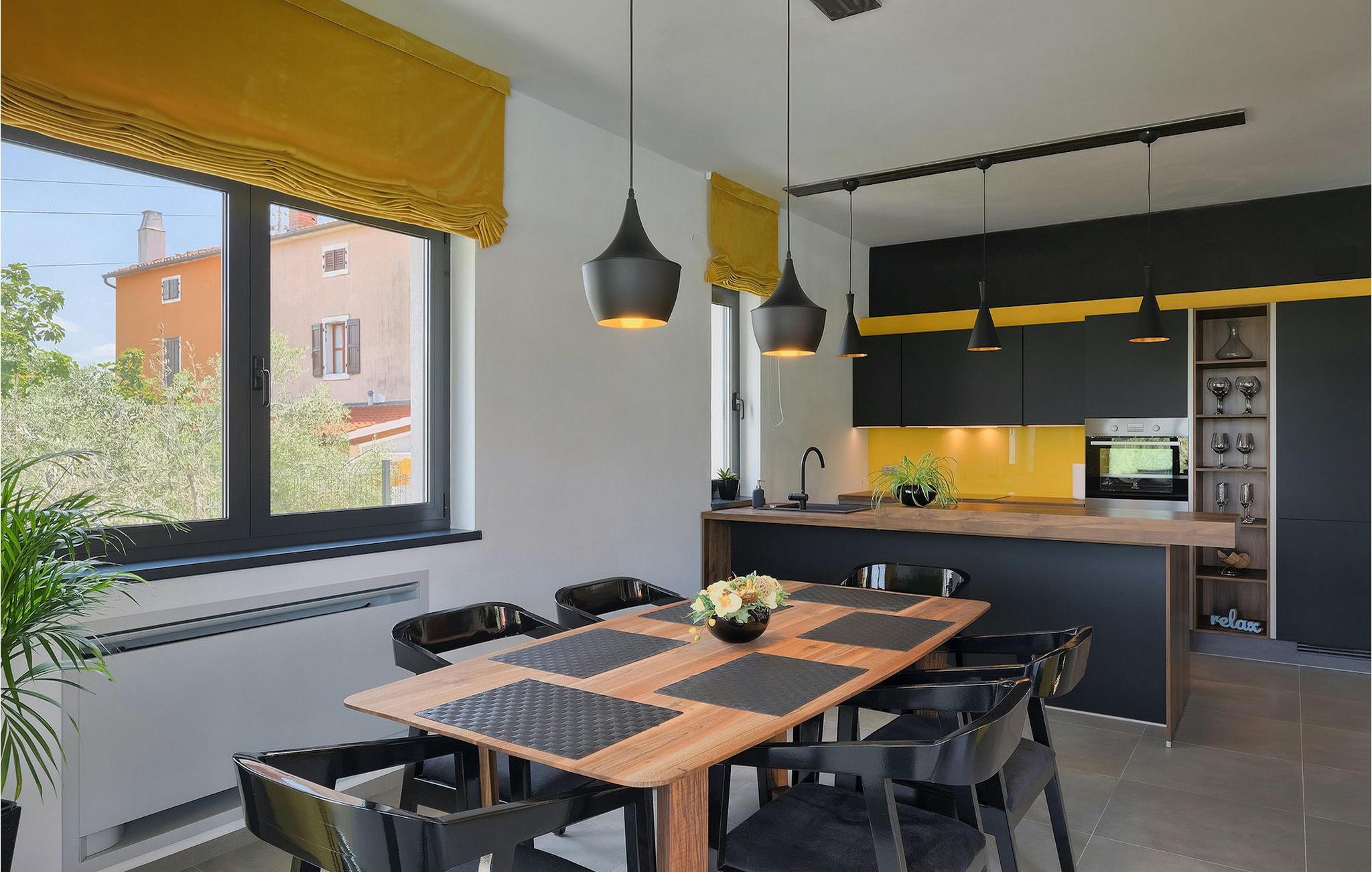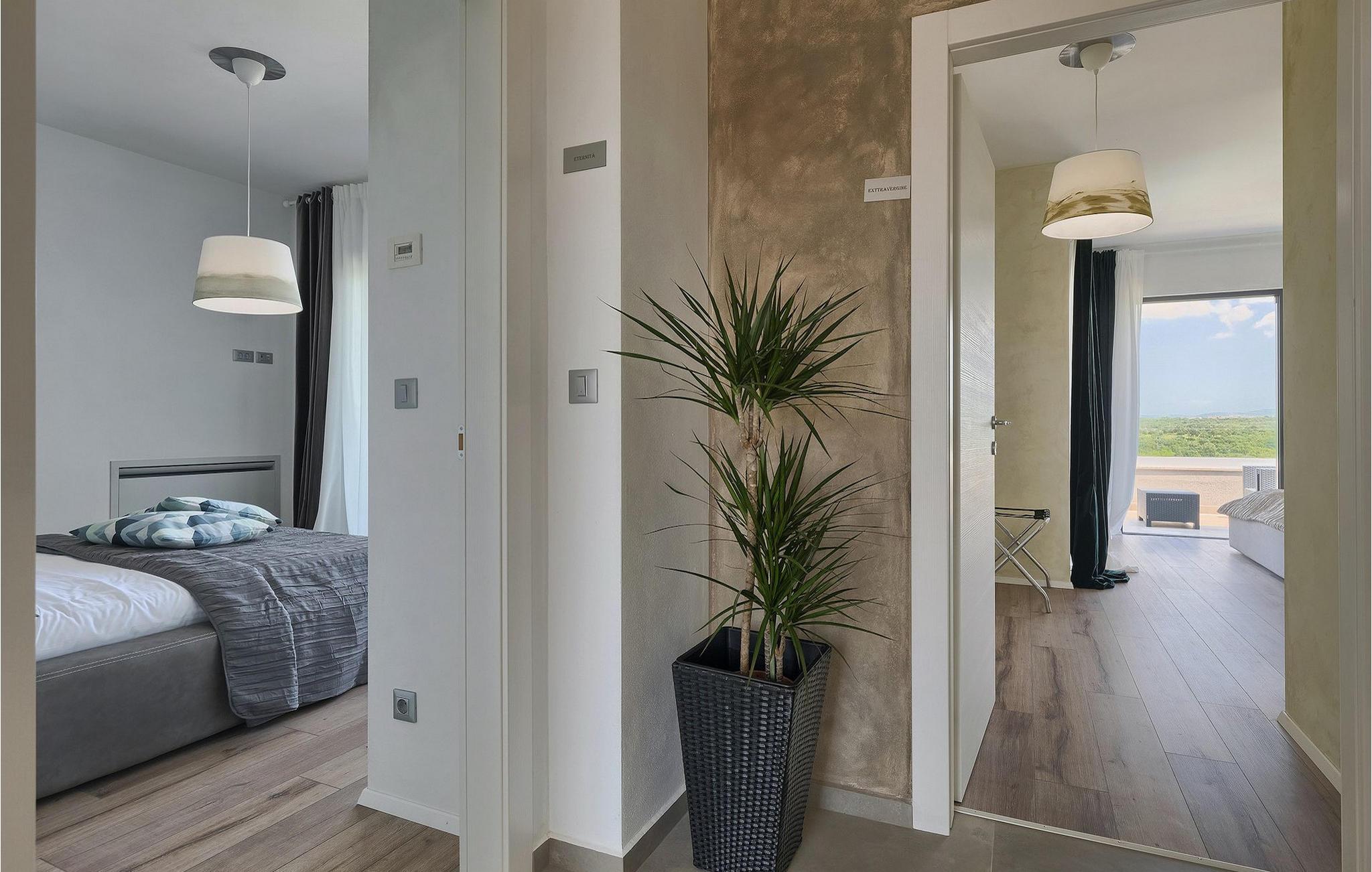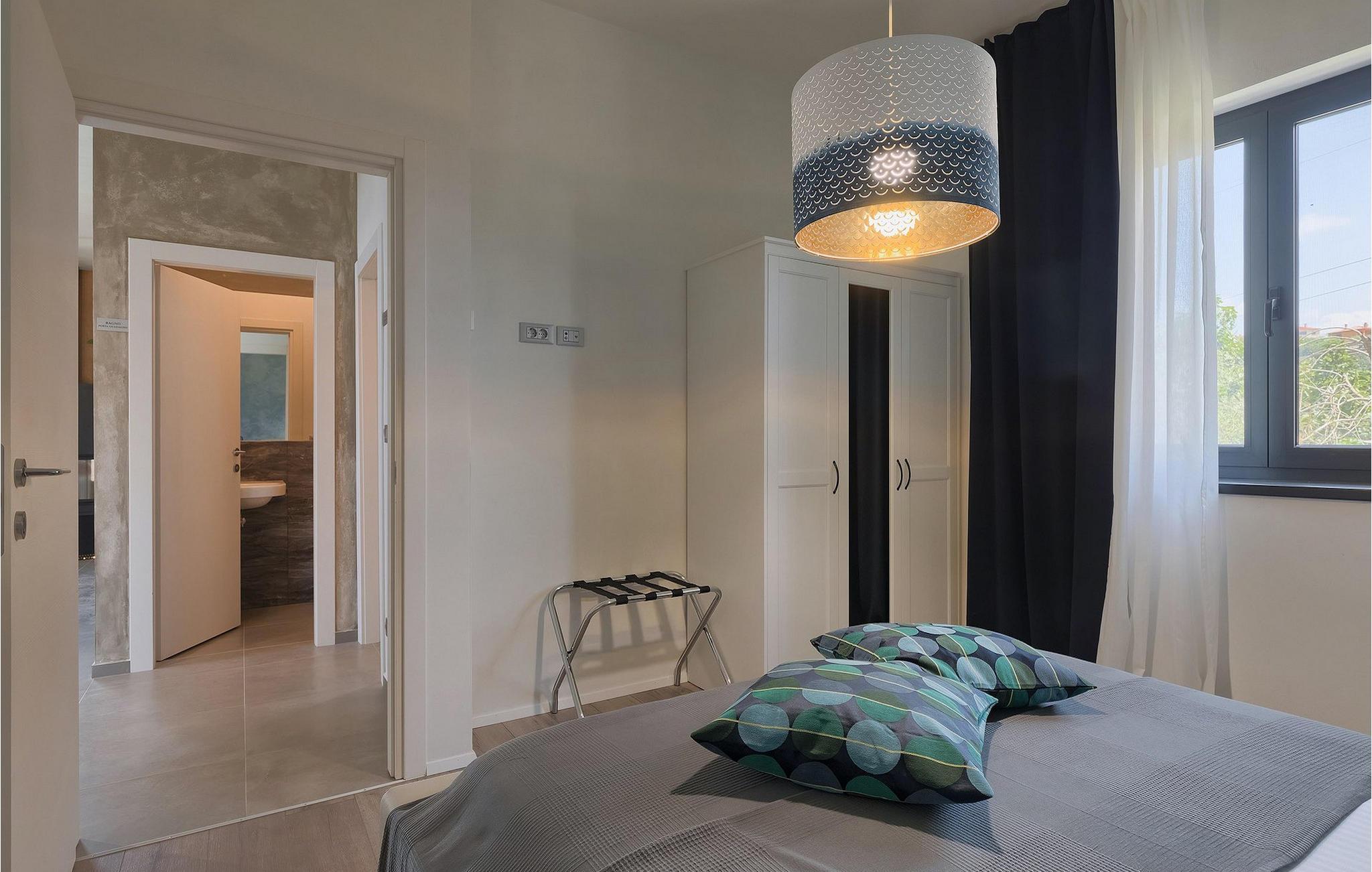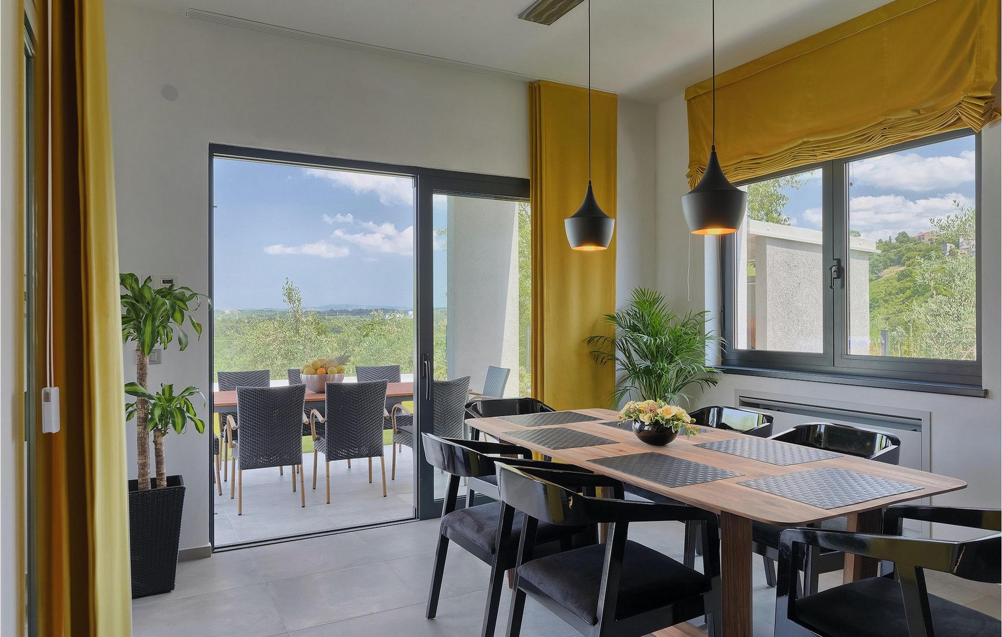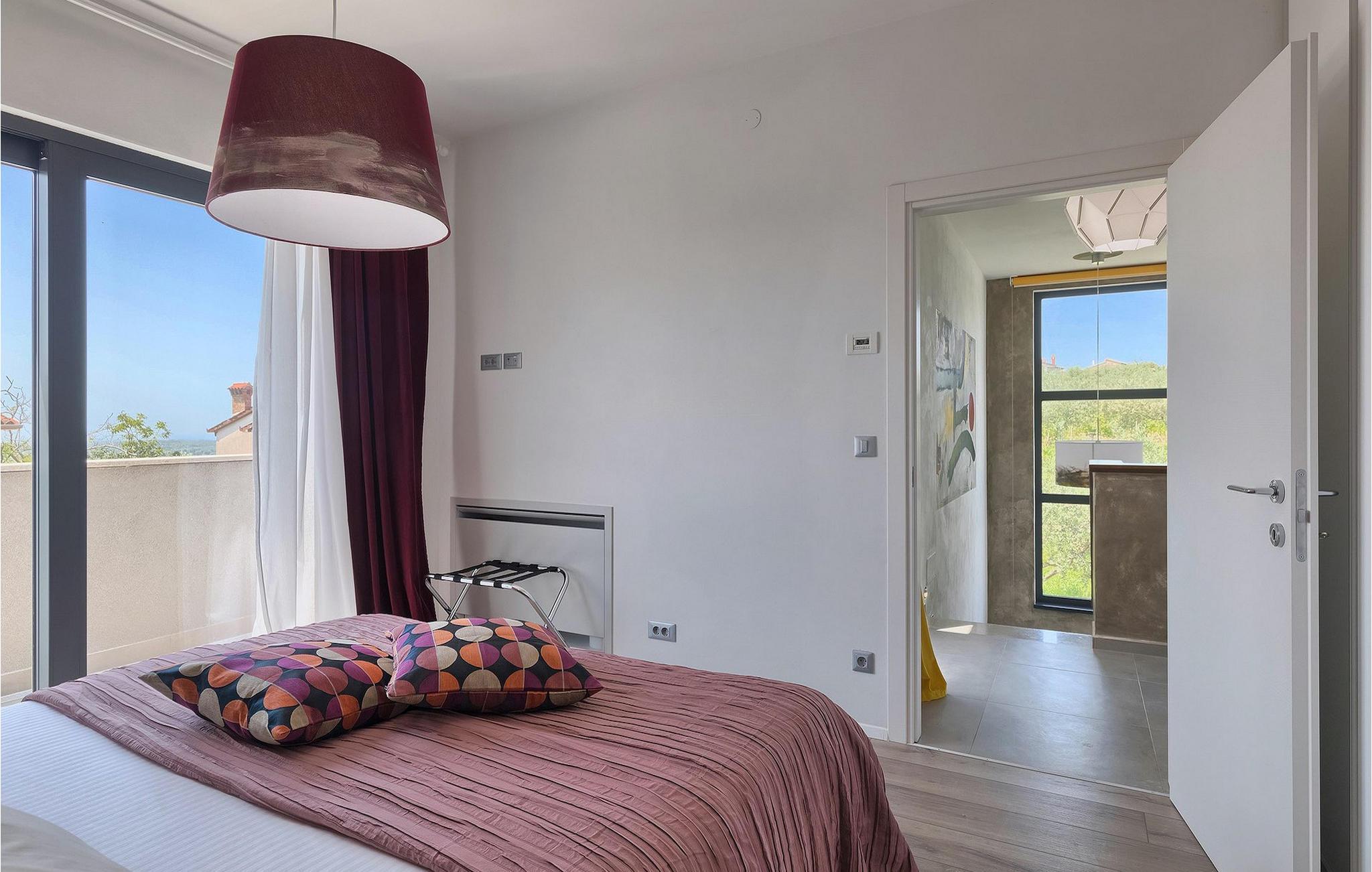 Dieses wunderschöne Anwesen befindet sich am Rande des schönen Buje in Istrien und ist eine moderne Villa mit 4 Schlafzimmern, die perfekt für 8 Personen geeignet ist. Sie befindet sich auf einem 615 m2 großen Grundstück und bietet einen privaten Parkplatz für 3 Autos und einen komplett umzäunten Garten. Im hinteren Teil des Gartens befindet sich der einladende private Pool, in dem Sie sich entspannen und den Blick auf die Altstadt von Buje und die Ruhe der umliegenden Natur genießen können. Im Poolbereich stehen Ihnen Liegestühle, eine Lounge zum Sitzen und Sonnenschirme zur Verfügung. Es gibt auch einen überdachten Teil auf der Terrasse mit einem Esstisch, an dem sich die ganze Gruppe versammeln und die Mahlzeiten auf dem Gasgrill im Freien genießen kann. Von dort haben Sie direkten Zugang zum Inneren der Villa. Hier befindet sich die völlig ausgestattete Küche mit Essbereich und das Wohnzimmer mit einem großen Sofa und Kamin. Ein Schlafzimmer und ein Badezimmer mit Dusche befinden sich im Erdgeschoss. Die restlichen 3 Schlafzimmer und 2 Badezimmer befinden sich in der oberen Etage und haben jeweils Zugang zur Terrasse - der perfekte Ort, um Ihren Tag mit Blick auf die grüne Umgebung zu beginnen! Alle Schlafzimmer sind klimatisiert und verfügen über ein Doppelbett. Die Villa ist in einem interessanten Stil mit viel Liebe zum Detail und einigen künstlerischen Gemälden an den Wänden eingerichtet. Dank der Lage der Villa, kann man Zentralistrien und die Küste Istriens leicht erreichen und erkunden. Kurz beschrieben, eine fablhafte Ferienvilla!Inmitten der bildschönen istrischen Landschaft, umgeben von zauberhafter Natur, befindet sich das historische Städtchen Buje, das schon in der Bronzezeit besiedelt wurde. Bereits vor ewigen Zeiten wurde dieses hügelige Gebiet mit Olivenfeldern bepflanzt, was bis heute unverändert geblieben ist. Die Lage, in der sich die Stadt befindet, garantiert eine ruhige und entspannende Atmosphäre, aber für diejenigen, die Lust haben, die Attraktionen nordwestlichen Istriens zu besichtigen, liegt Umag nur eine kurze Fahrt von Buje entfernt. Zahlreiche historische Sehenswürdigkeiten, 45km lange Küste, venezianische Häuser und barocke Kirchen sind nur ein Beispiel davon, was Umag seinen Besuchern bietet. In der Nähe von Novigrad und nur fünf Kilometer von der Küste entfernt, befindet sich der neueröffnete Aquapark Istralandia, der sowohl für Erwachsene als auch für Kinder geeignet ist. Zu den Highlights des Aquaparks zählen unterschiedliche Wasserrutschen, unter anderem die Free Fall Rutsche und die Familien Rafting Rutsche. Es ist unmöglich, in Istralandia nicht Spaß zu haben, da der Aquapark neben den Wasserrutschen auch Pools, Restaurants und verschiedene Animationsprogramme bietet.