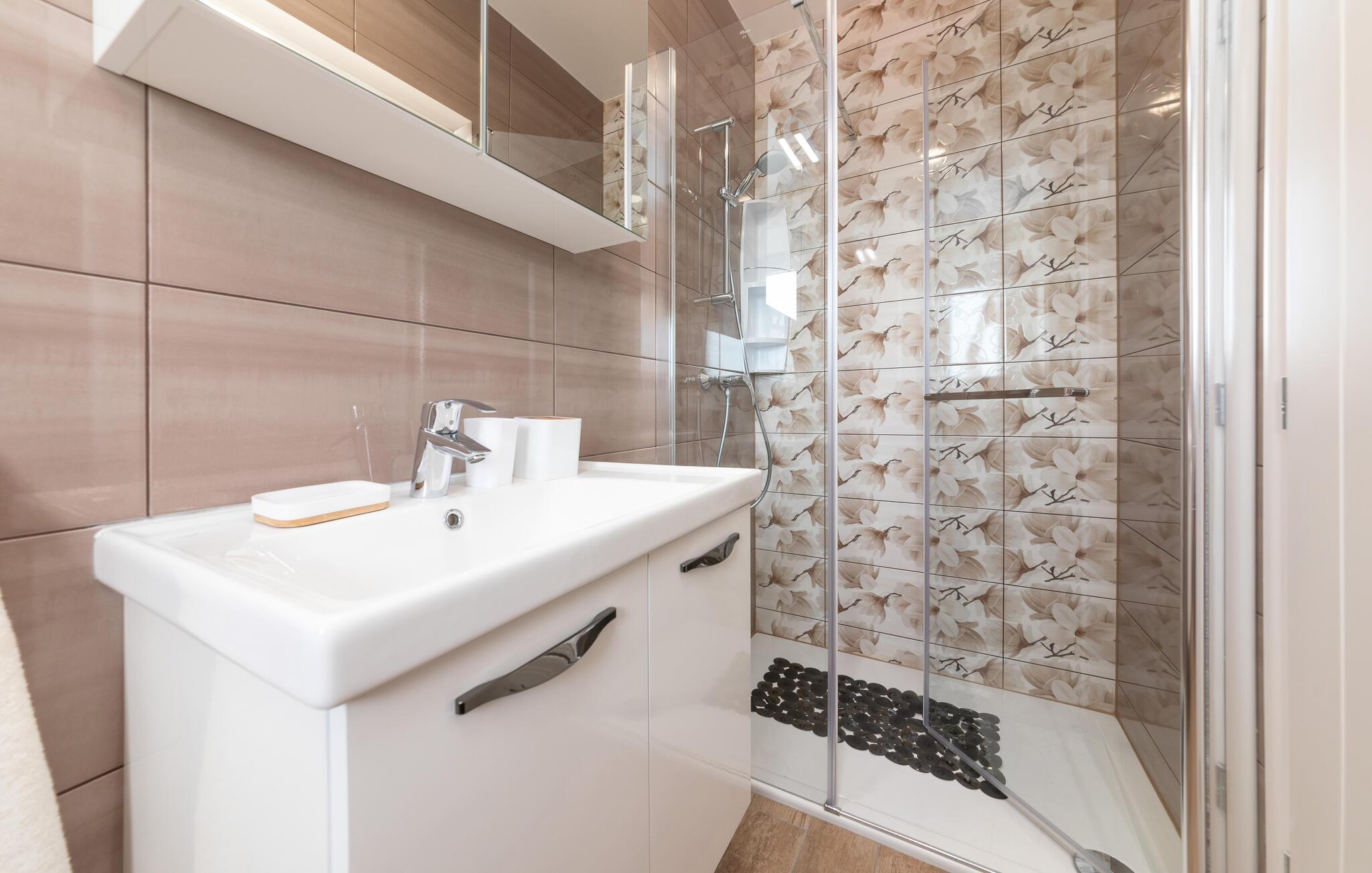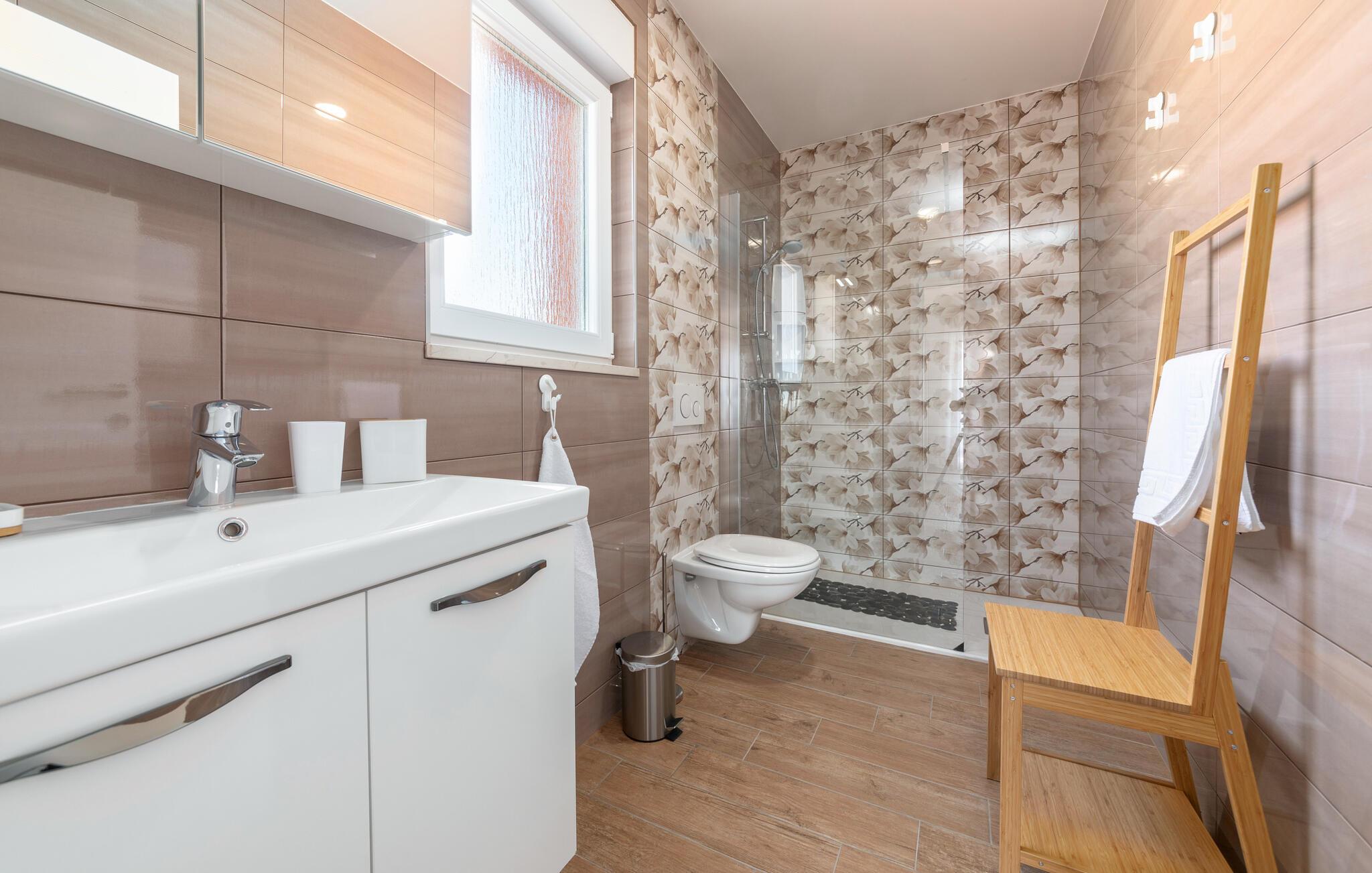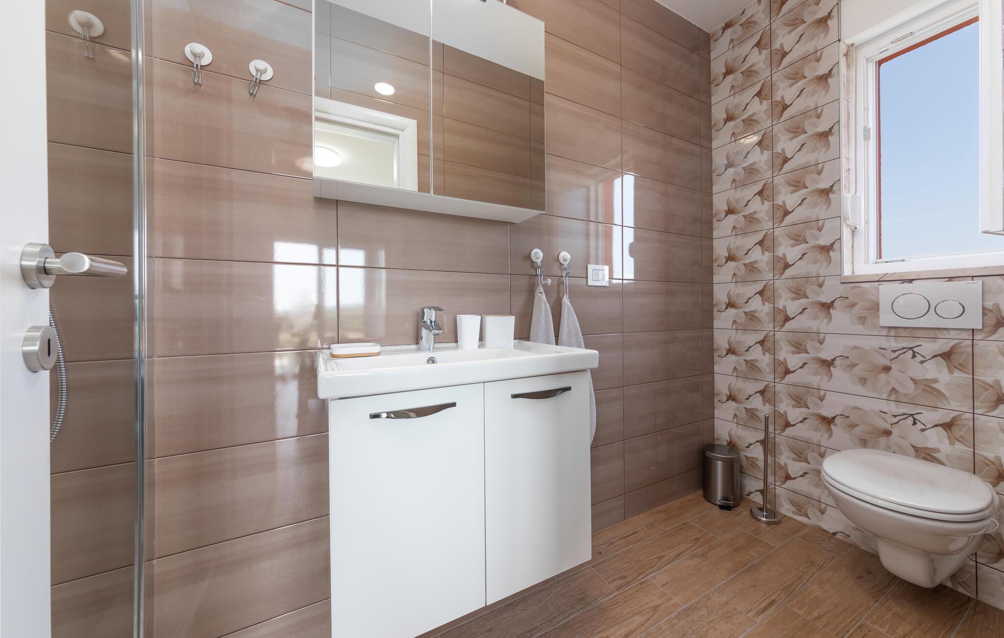 Badezimmer (nr. 2) - WC. Warmes und kaltes Wasser. Dusche