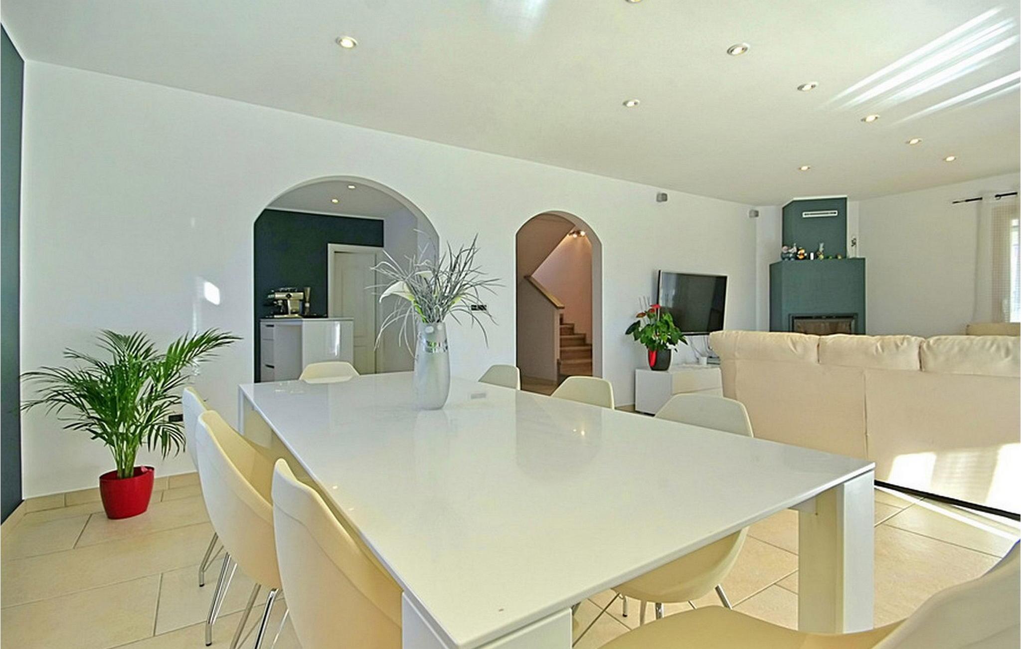 Villa mit Pool für 8 Personen mit einer gesamt Wohnfläche von 150 qm auf zwei komplett klimatisierte Etagen. Im Erdgeschoss des Hauses befindet sich ein geräumiger Wohnraum mit Sitzgarnitur und Esstisch, voll ausgestattete Küche, ein Doppelzimmer mit Einzelbetten und Dusche/WC. Auf dem ersten Stock befinden sich ein Doppelzimmer mit Einzelbetten und Balkon, Dusche/WC im Flur, ein Doppelzimmer mit Doppelbett und Dusche/WC und ein Doppelzimmer mit Doppelbett, Dusche/WC und Balkon.