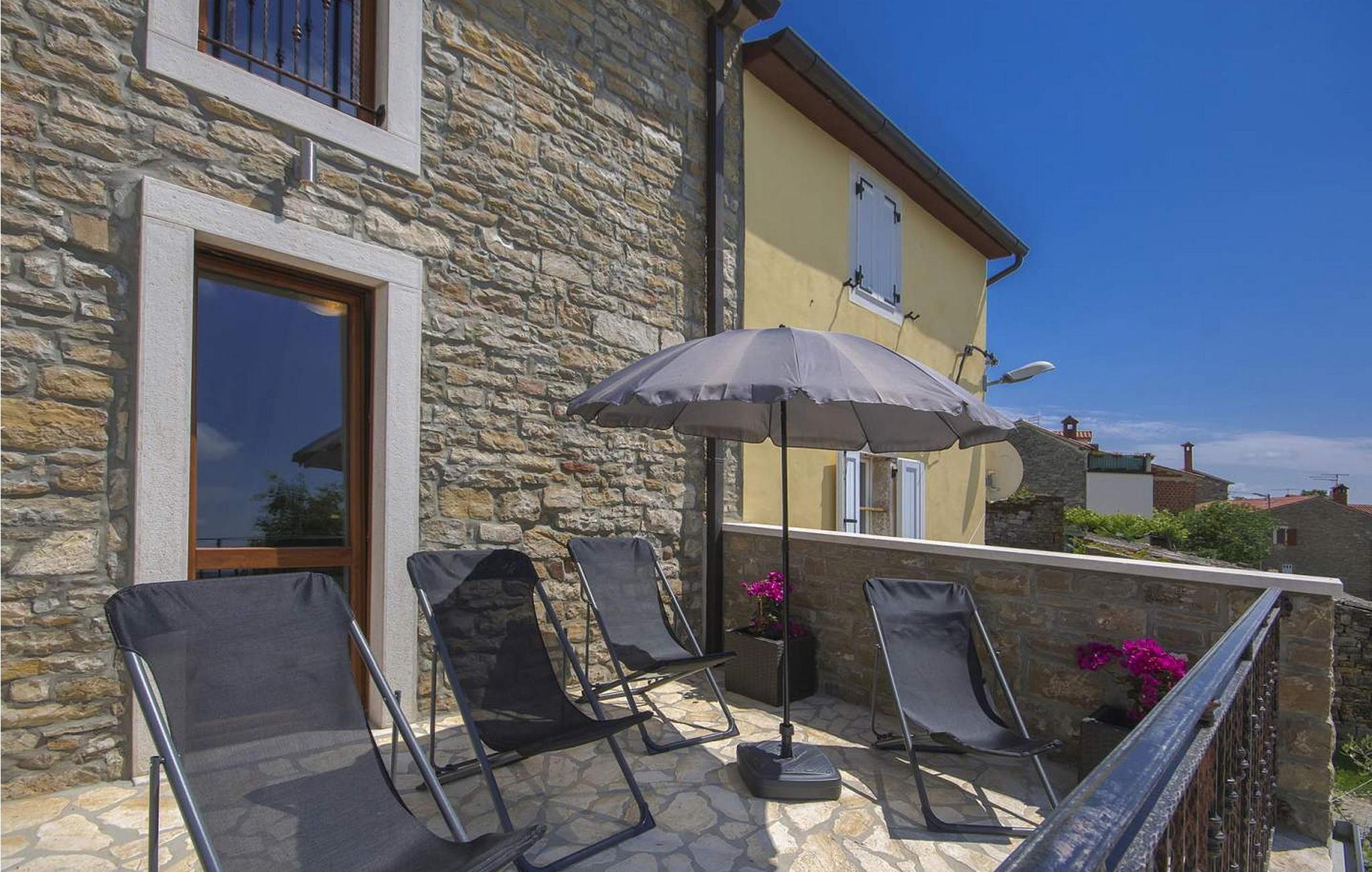 In Buje gibt es Bank, Restaurants, Cafés, Geschäfte, Tennisplätze, und in wenigen Minuten zu Fuß durch die wundervolle Natur sind einige der besten Weinkeller erreichbar. Mit dem Auto oder über die schön eingerichtete Rad- und Wanderstrecke Parenzana, ist in wenigen Kilometer Groznjan, der jeden Gast erstaunt, mit den engen Gassen durch welche Jazzmelodien klingeln, und Brtonigla, mit den vielen Weinkellern und typischen Tavernen (Konoben), erreichbar. Die Ferienwohnung liegt im ersten Stock im letzten Reihenhaus. Den Gästen steht ein Parkplatz hinter dem Haus zur Verfügung.
