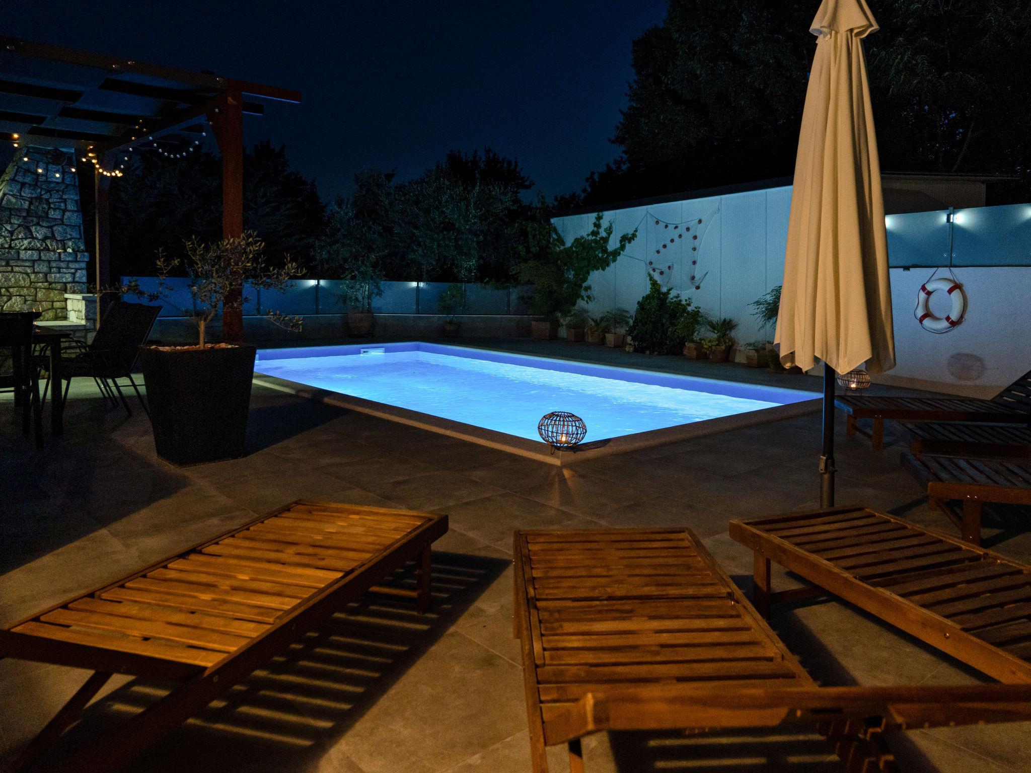 Brtonigla: Beautiful house "Gabi", 2 storeys. In the hamlet Radini 4 km from the centre of Brtonigla, 11 km from the centre of Novigrad, 12 km from the centre of Umag, in a quiet, sunny position, 3 km from the sea, 4 km from the beach. Private: property 800 m2 (fenced), well-kept garden, swimming pool angular (8 x 4 m, depth 150 cm, seasonal availability: 01.May. - 01.Oct.) with internal staircase. Barbecue, pool maintenance by the owner/gardener. In the house: internet access, washing machine, tumble dryer. Parking (for 2 cars) at the house on the premises. Shop 5 km, supermarket 10 km, restaurant 4 km, bus stop 5 km, railway station 35 km, pebble beach 4 km, rocky beach 4 km. Golf course (18 hole) 23 km, walking paths from the house 400 m, cycle lane 450 m. Nearby attractions: Aquapark 6 km, Mramornica Cave 5 km. The owner does not accept any youth groups.