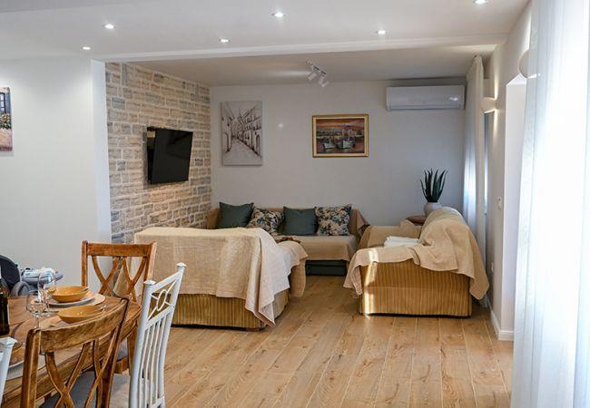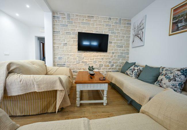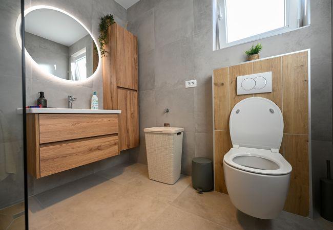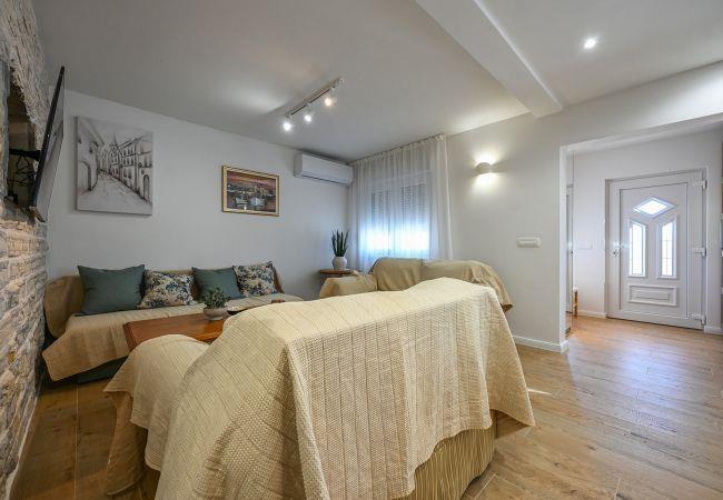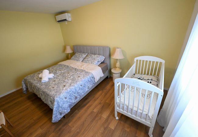 Holiday Home Marija is located in the peaceful village of Bukovic near Benkovac and is an ideal choice for families or smaller groups looking for comfortable accommodation. The house accommodates optimally six and up to a maximum of eight guests (with children). It features three bedrooms – two double rooms with an additional baby cot and one children's room with a bunk bed and a baby cot as well. An extra bed is available in the living room in the form of a sofa bed for two people. For the youngest guests, a high chair, BabyBjorn bouncer, and Ergobaby carrier are available on request, as well as a changing table and baby bathtub.