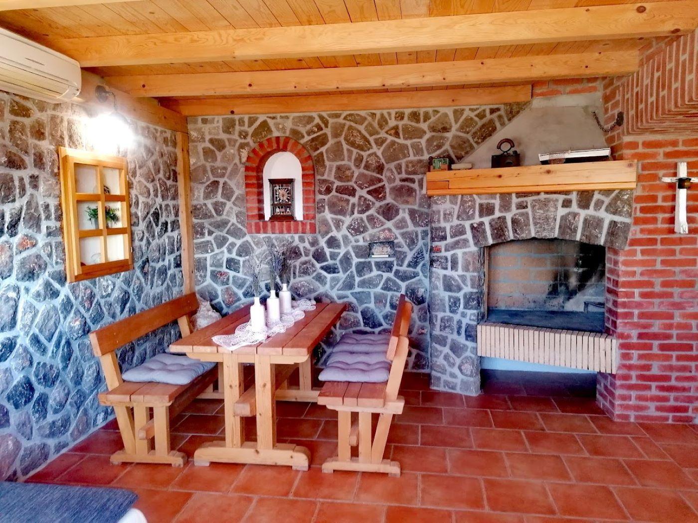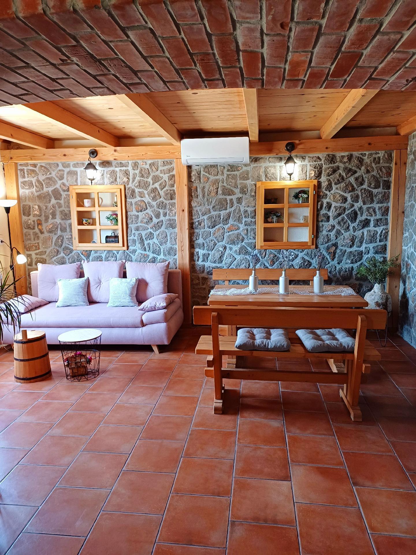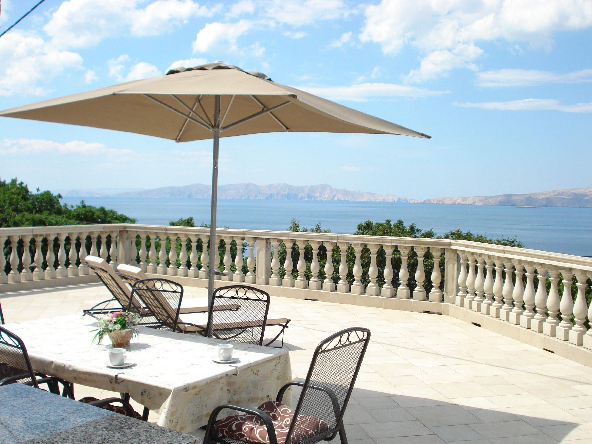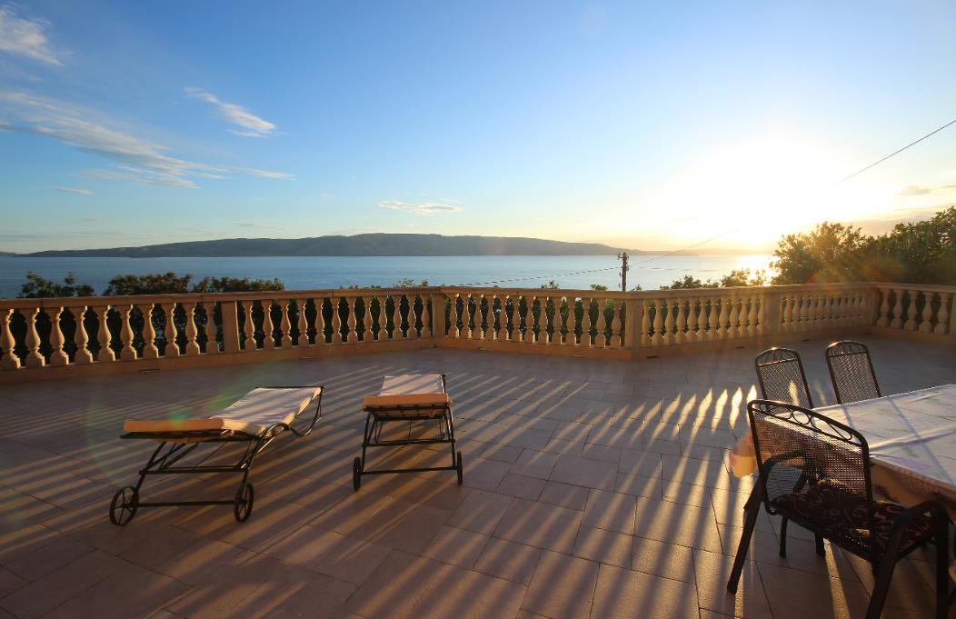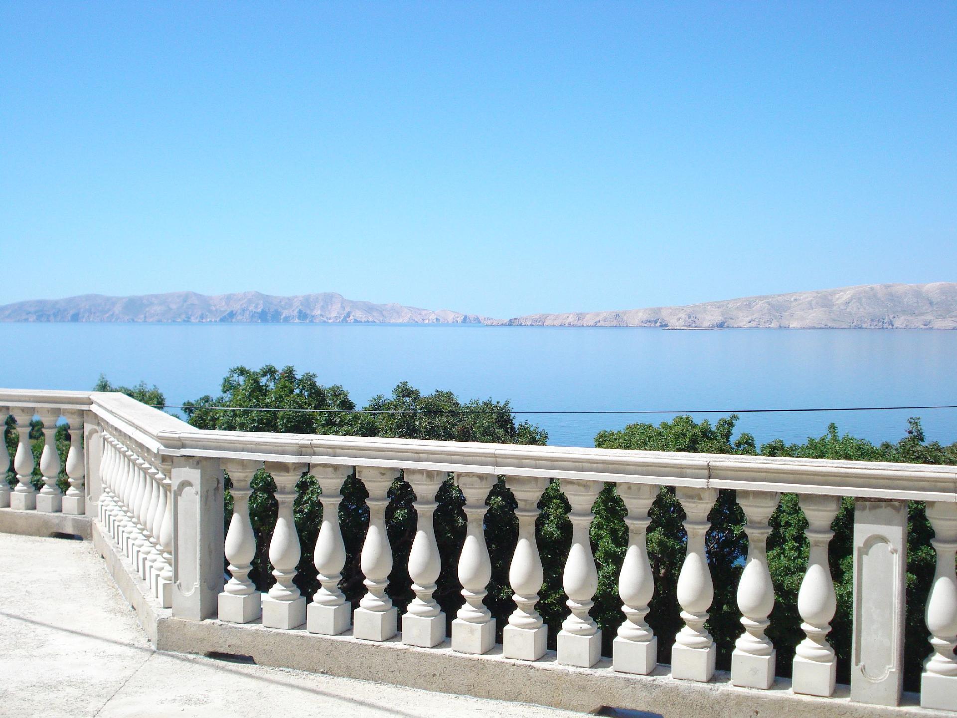 Apartment with a spacious sea view terrace The apartment is situated in small and quiet place Bunica close to the beautiful natural beach. Town of Senj is only 5 minutes drive with the car. The 100m² terrace is very big and affords a breathtaking view. It is furnished with a table and six chairs. A large parasol provides shade. There is also a gas grill and two deckchairs. Garage only on request. The apartment is on the ground floor of the house. It measures around 55m² and can accommodate four people. The living and dining room has a sofa bed for two people and a flatscreen TV. The dining room provides a wooden table and two matching rustic benches, which harmonise perfectly with the exposed stone walls and wooden ceiling beams. The adjoining cooking space is equipped with a kitchen counter also made of exposed brickwork, an induction hob, fridge, microwave and kettle. The cosy bedroom is furnished with a double bed 160cm wide and a wardrobe. The bathroom has a shower, WC and washbasin. Wi-Fi access is available. The air conditioning unit is in the living room and is positioned so it can cool the whole apartment. Town of Senj is only 5 minutes drive with the car. Pets are not allowed at this apartment. A garage parking space can be rented on site for a fee.