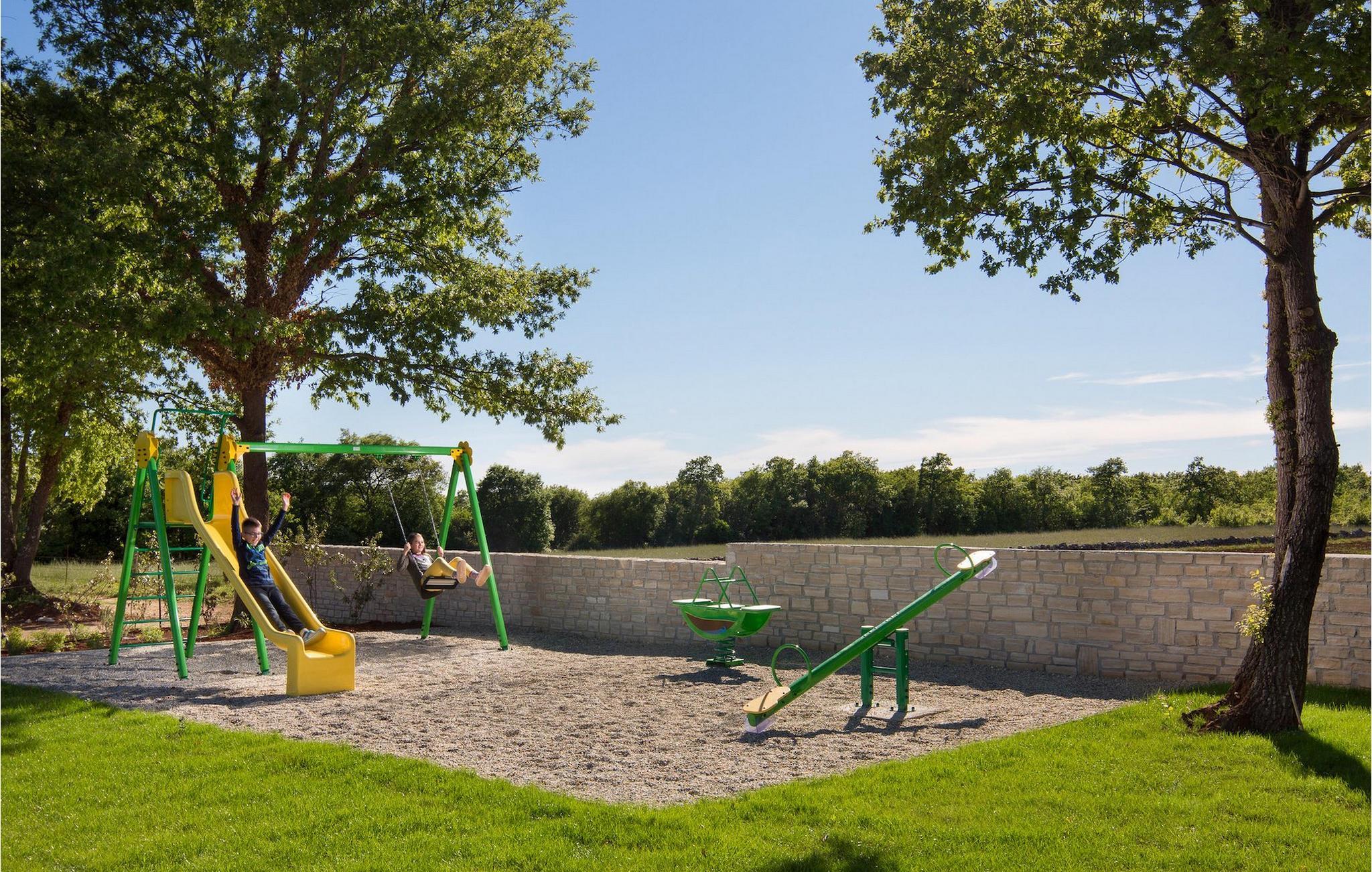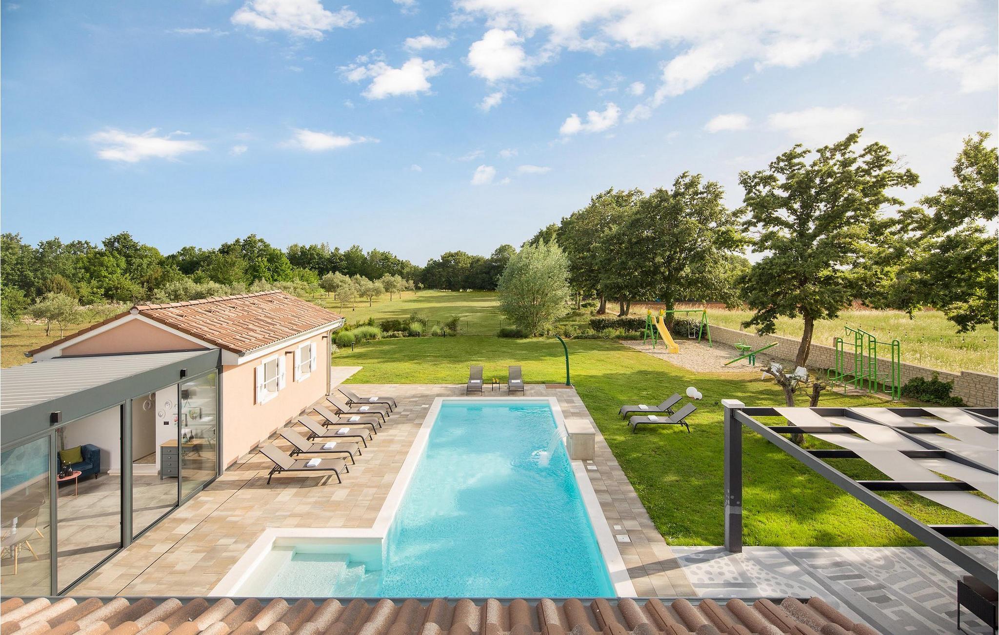 Schon ein kurzer Blick auf den großen türkisfarbenen Pool inmitten des gepflegten grünen Gartens genügt, um sich bereits bei der Ankunft willkommen zu fühlen. Im Außenbereich stehen Ihnen eine Außenküche und ein überdachtes Außenessbereich zur Verfügung - perfekt, um leckere Mahlzeiten zu kochen und diese unter dem Sternenhimmel gemeinsam zu genießen. Kinder werden sicher viel Zeit im Außenbereich verbringen, da im Garten ein kleiner Spielplatz zu finden ist. Erwachsene können sich an dem Spaß im Freien beteiligen und im Fitnessbereich Dampf ablassen.