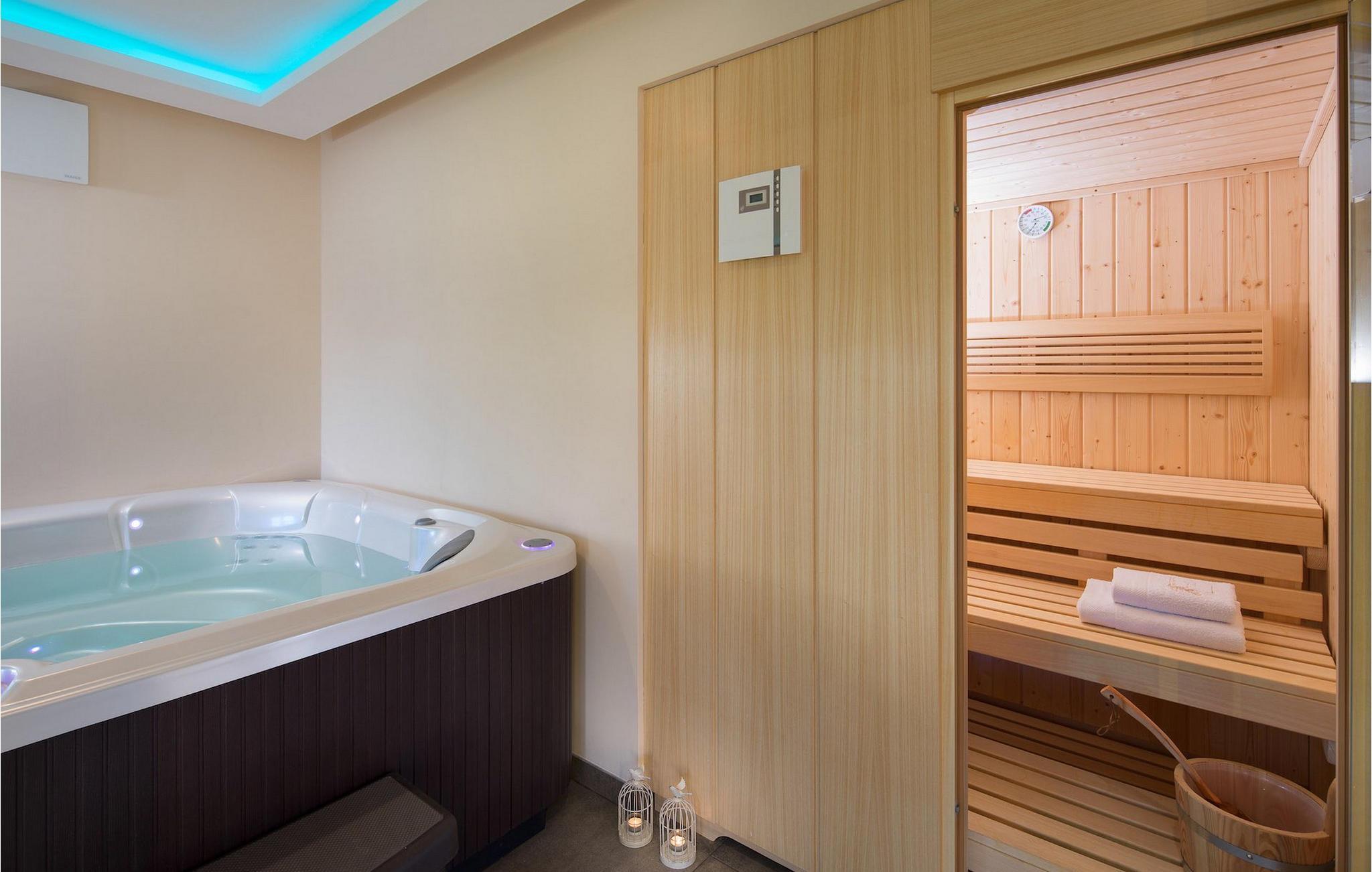 Verbringen Sie einen entspannten Nachmittag im elegant eingerichteten Wellnessbereich mit Whirlpool und Sauna, der keine Wünsche offen lässt. Im Obergeschoss befinden sich vier Schlafzimmer mit Doppelbett und jeweils eigenem Badezimmer.