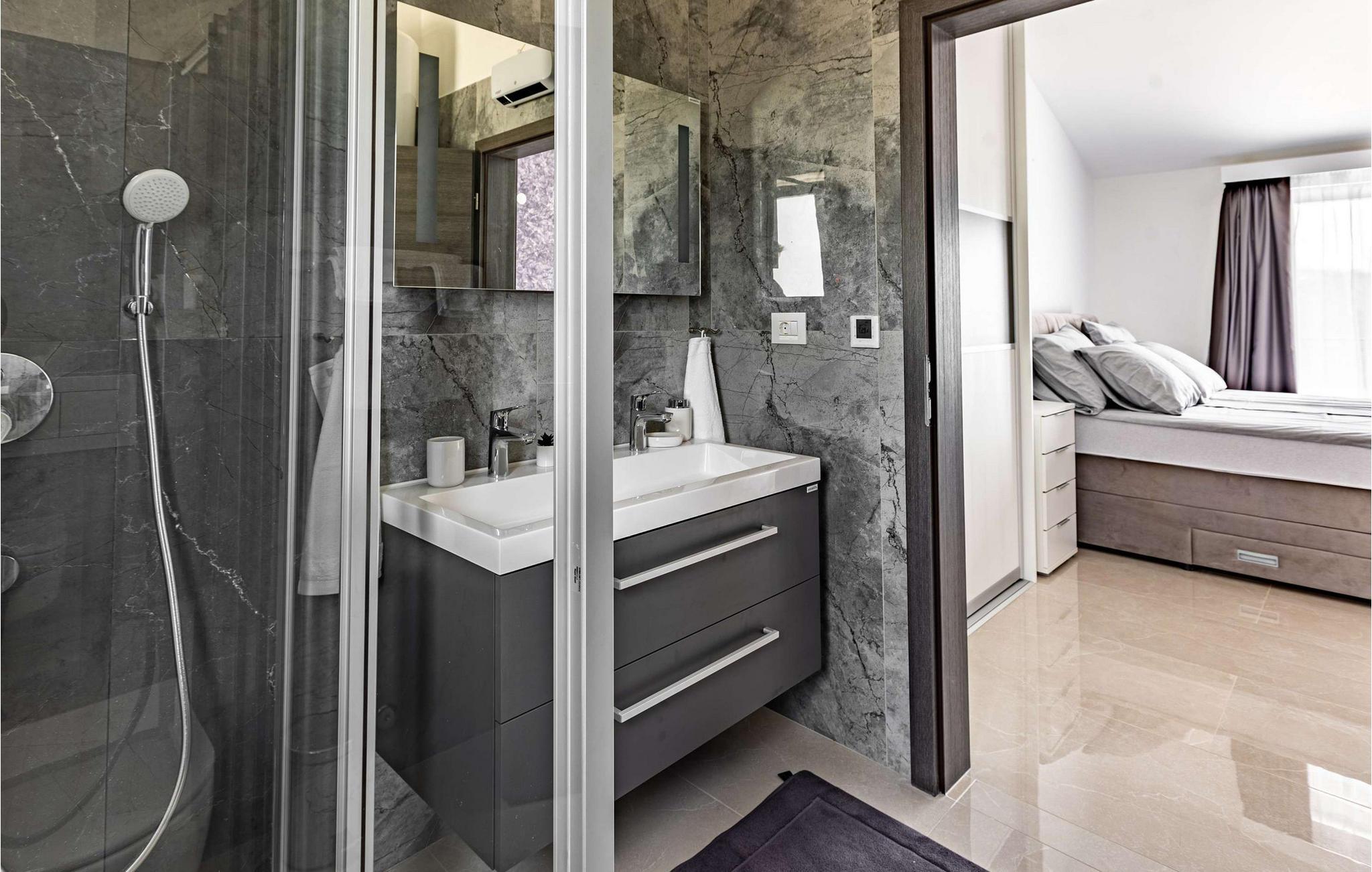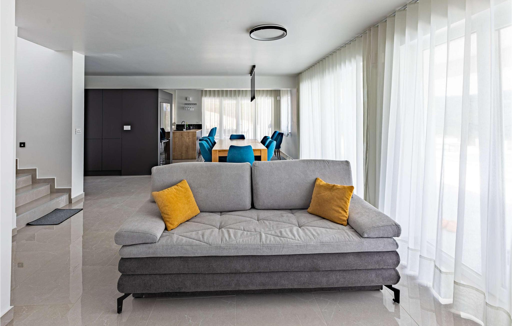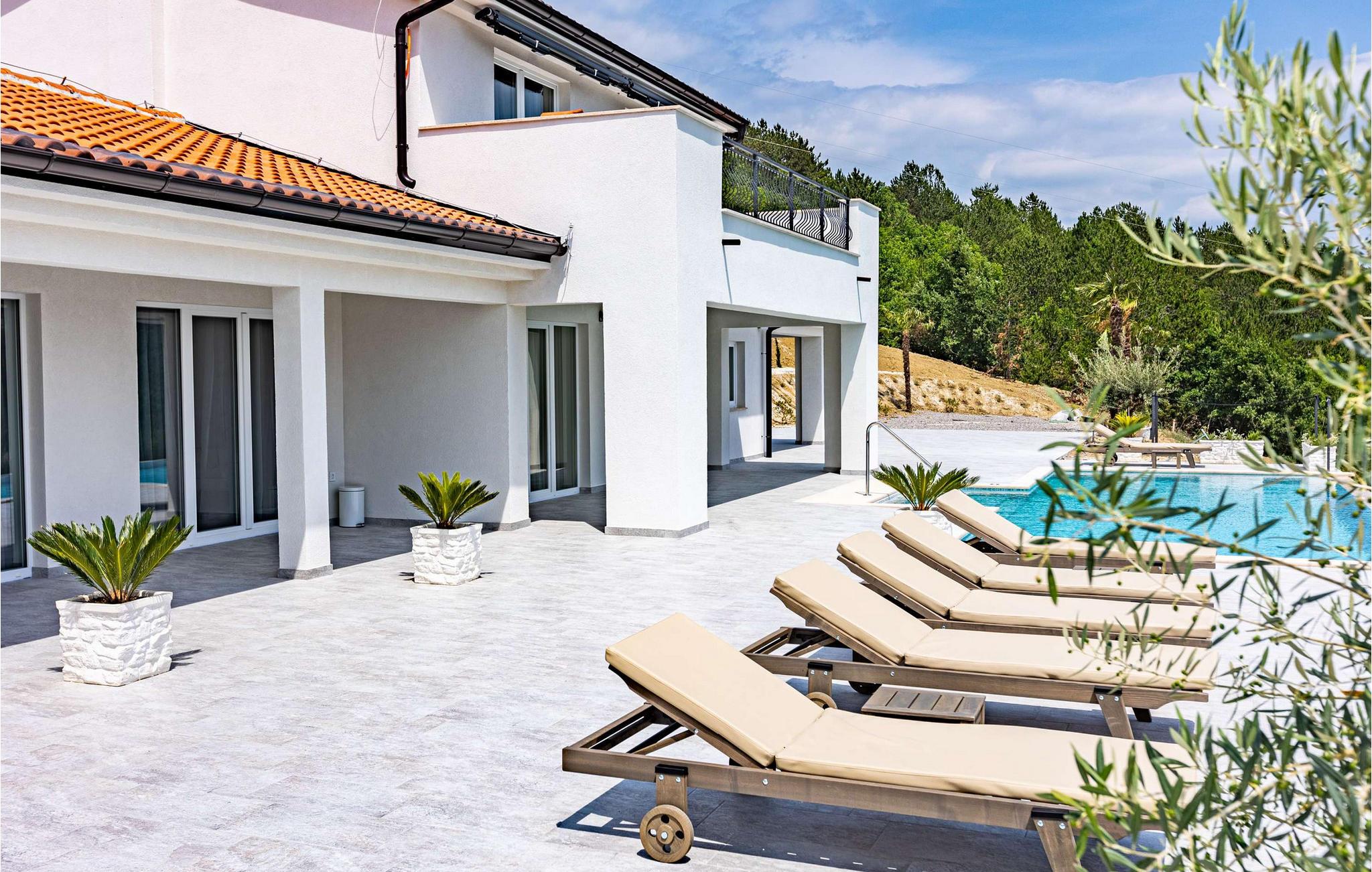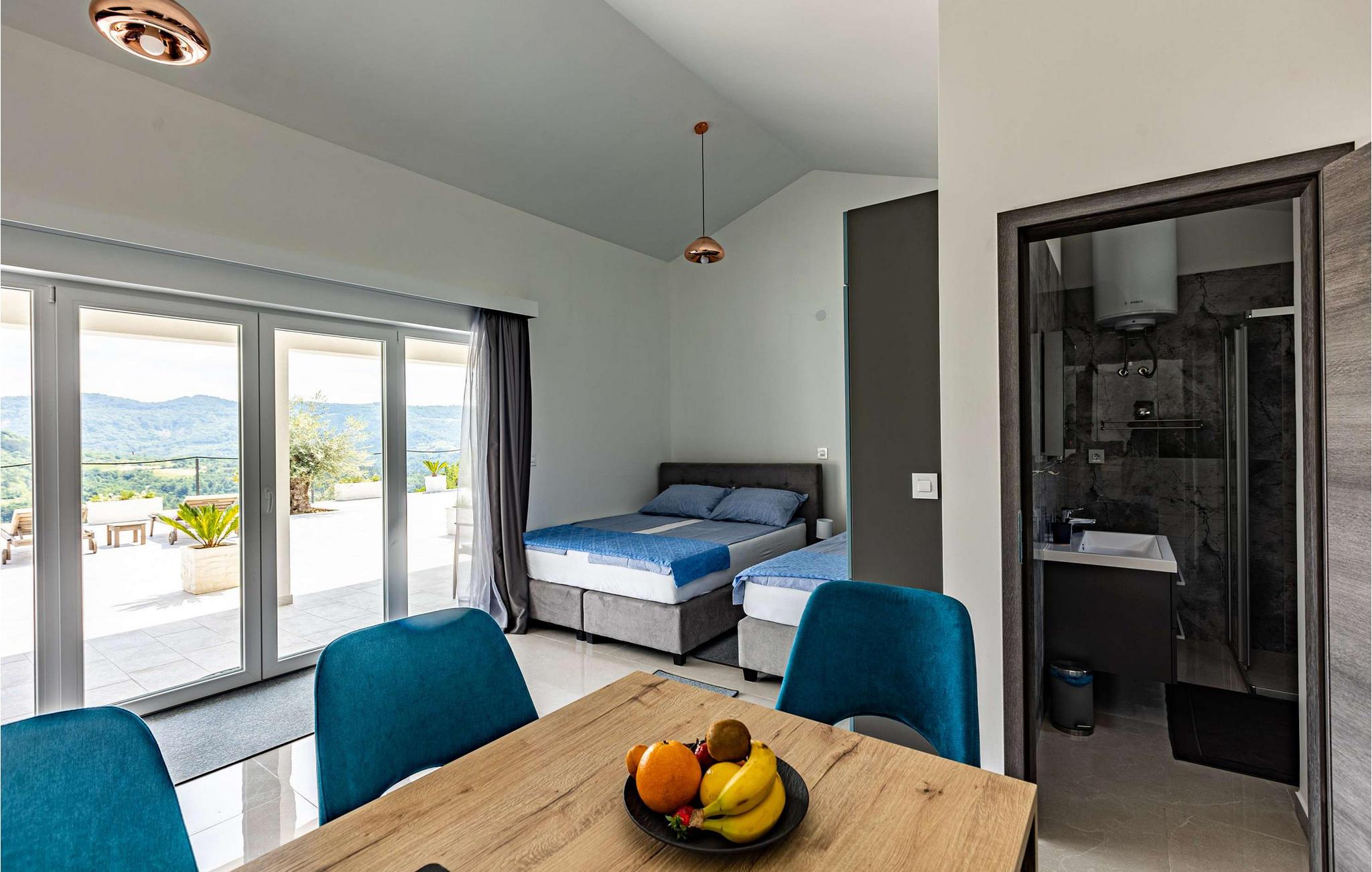 Die wunderschöne neu erbaute Villa Bella Draguc befindet sich am gleichnamigen Ort im tiefsten Landesinneren Istriens und auf halber Strecke zwischen Pazin und Buzet. Dieser Ort ist ein Ziel für Gäste, die dem hektischen Alltag entfliehen und in völliger Privatsphäre und Ruhe mit Familie oder Freunden entspannen möchten. Wenn Sie einer von ihnen sind, lassen Sie sich vom Charme der Villa Bella Draguc verwöhnen und genießen Sie alle Sinne! Auf einem Hügel gelegen, umgeben von unberührter Natur und viel Grün, ist die Villa Bella Draguc in einem modernen Baustil erbaut und bietet Platz für maximal und optimal 10 Personen. Es ist voll klimatisiert und verfügt über eine Wohnfläche von 310 m2, während die Gesamtfläche des Anwesens prächtige 20.226 m2 beträgt. Die Villa besteht aus einem Erdgeschoss und einem Obergeschoss, wo Sie während Ihres Urlaubs auf jeden Fall genügend Platz zum Ausruhen und Entspannen haben werden. Im Erdgeschoss erwartet Sie eine moderne und voll ausgestattete Küche, in der Sie einfach und erfolgreich Ihre Lieblingsgerichte für die ganze Familie zubereiten können. Außerdem gibt es ein Esszimmer mit einem Esstisch mit 8 Sitzplätzen. In der Küche, hinter der Bar, gibt es 4 weitere Sitzplätze. Es gibt auch ein Wohnzimmer mit einem Sofa und einem Fernseher. Sie werden bequem in 5 Schlafzimmern mit 2 Einzelbetten und 4 Doppelbetten untergebracht. Die Villa verfügt außerdem über 7 Badezimmer, von denen jedes über eine Duschkabine verfügt. Auf der Außenterrasse befindet sich ein Pool von 40 m2 und einer Tiefe von 1,55 m. Zusätzliche Funktionalität des Pools sind Massagetreppen (römisches Bad), Wasserfall und Überlauf. Am Pool können Sie sich auf 6 Sonnenliegen sonnen, lesen oder entspannen. Auf der Terrasse gibt es außerdem einen Außengrill auf Holzkohle oder Holz, einen Esstisch im Freien mit 8 Sitzplätzen und die Villa verfügt über einen Balkon, von dem aus Sie Ihren Morgenkaffee und den Blick auf die unberührte Natur genießen können. Die Villa verfügt über zusätzliche Einrichtungen, die Sie während Ihres Aufenthalts nutzen können, wie Waschmaschine, Trockner und Bügeleisen. Der Hof ist umzäunt und die Kinder können darin spielen und Spaß haben. Im Hof gibt es 12 Parkplätze. Nach vorheriger Absprache ist es möglich, eine Tour durch Zentralistrien, die Weinstraße und die Olivenölstraße zu organisieren. Außerdem gibt es einen Besuch in Brijuni, der Stadt Porec, Umag oder Rovinj. Für Sportbegeisterte besteht die Möglichkeit, Golf zu spielen, und Liebhaber der Entspannung können eine Massage buchen. Draguc wird auch istrisches Hollywood genannt und ist ein wunderschöner Ort, der leicht in die Rolle des magischen Florenz schlüpfen kann. In der zweiten Hälfte des letzten Jahrhunderts, aber auch in diesem Jahrhundert versammelte es zahlreiche einheimische und internationale Produzenten und Regisseure und wurde zu einem der begehrtesten Drehorte in Istrien, aber auch in Kroatien. Verlieben Sie sich in Istrien und seine wunderschönen Städte, probieren Sie das köstliche gastronomische Angebot und haben Sie Spaß mit Familie und Freunden! *Villa Bella Draguc ist eine völlig neue Anlage, die bereit ist, ihre Türen für alle Gäste zu öffnen, die einen wunderschönen Urlaub und Luxus suchen! Willkommen! Bitte beachten Sie, dass diese Unterkunft Jugendgruppen oder Junggesellenabschiede nur gegen Zahlung einer erstattbaren Kaution akzeptiert. Eine Jugendgruppe in dieser Unterkunft besteht aus Personen unter 18 Jahren. Wenn Sie eine Jugendgruppe oder ein Junggesellenabschied sind, werden Sie bei der Ankunft gebeten, die Kaution zu hinterlegen. Alle Beträge, die zur Behebung von Schäden an der Unterkunft erforderlich sind, die Sie während Ihres Aufenthalts verursacht haben, werden von der Kaution abgezogen und anschließend an Sie zurückerstattet.