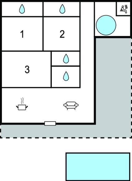 Badezimmer 6m2 (nr. 3) - WC. Warmes und kaltes Wasser. Dusche