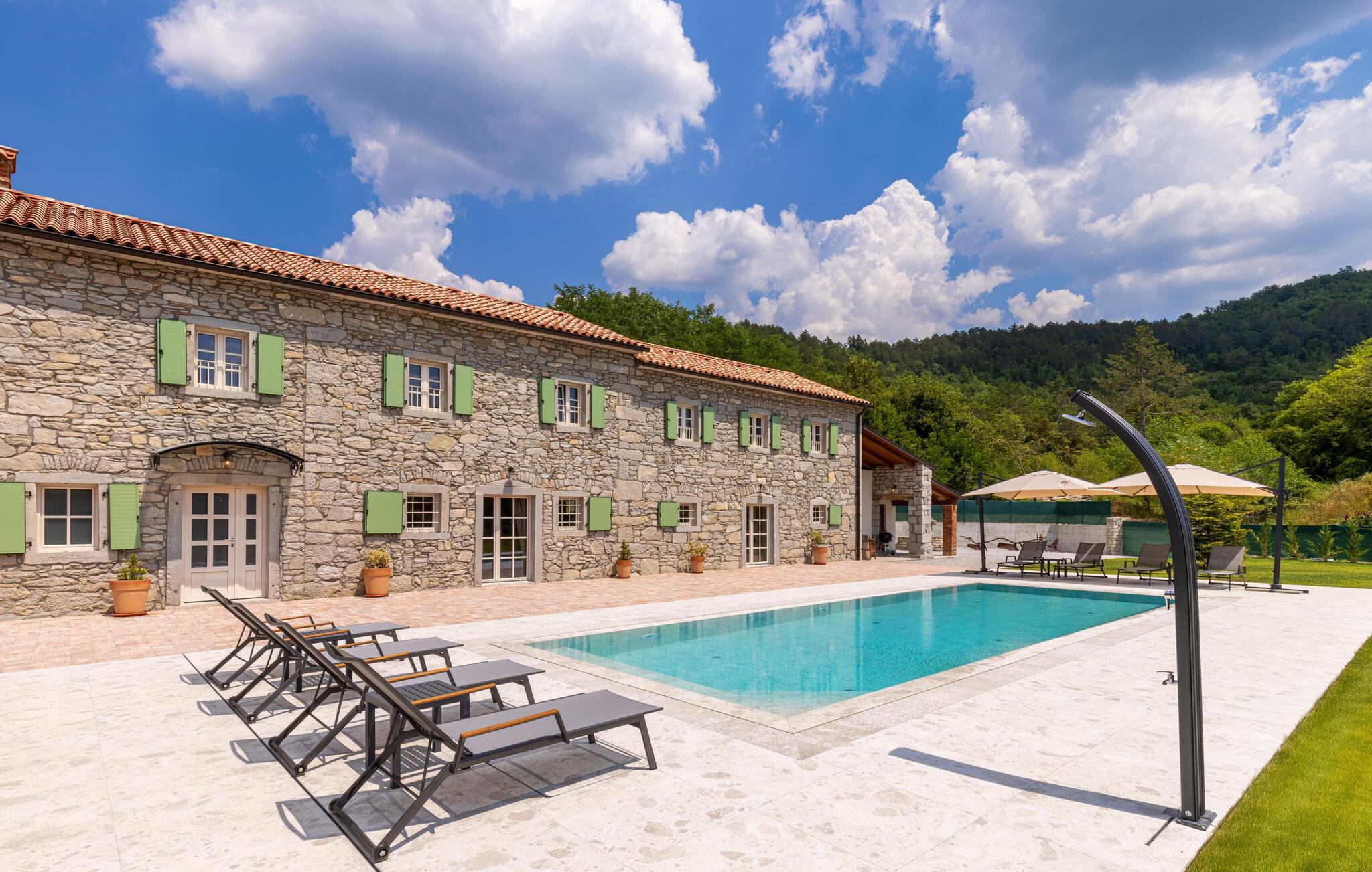 Nahe der Grenze zu Slowenien erwartet Sie diese wunderschöne Steinvilla, die eine traditionelle Bauweise mit modernem Komfort vereint und Ihnen einen entspannten Urlaub bietet. Lassen Sie sich von der charmanten Architektur und der luxuriösen Einrichtung dieses Hauses begeistern. Der großzügige Poolbereich mit bequemen Sonnenliegen lädt dazu ein, die sonnigen Tage in vollen Zügen zu genießen.