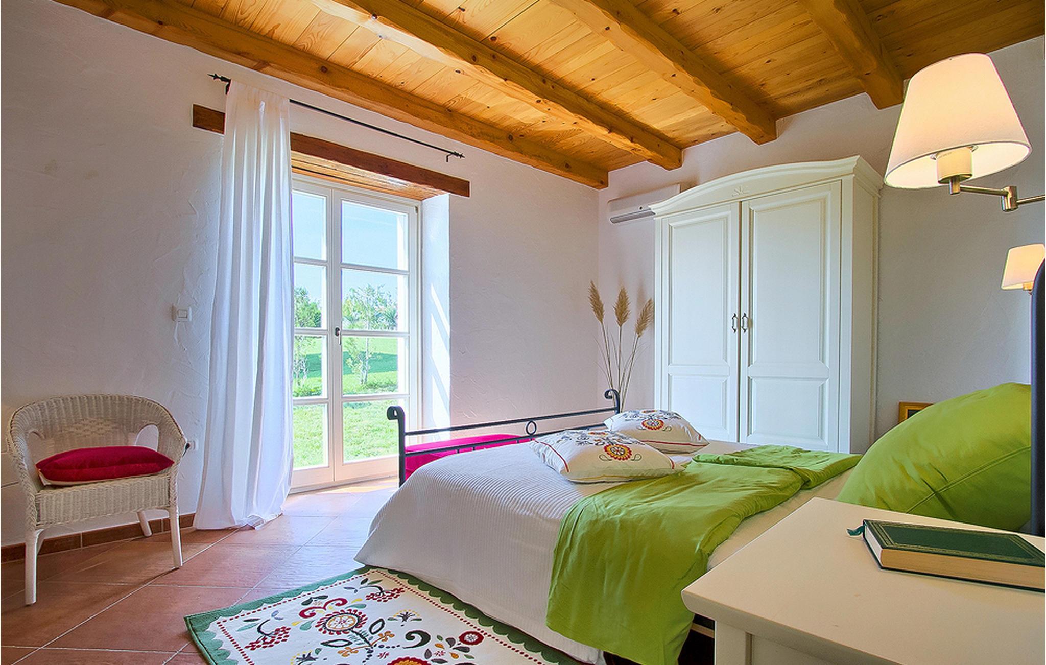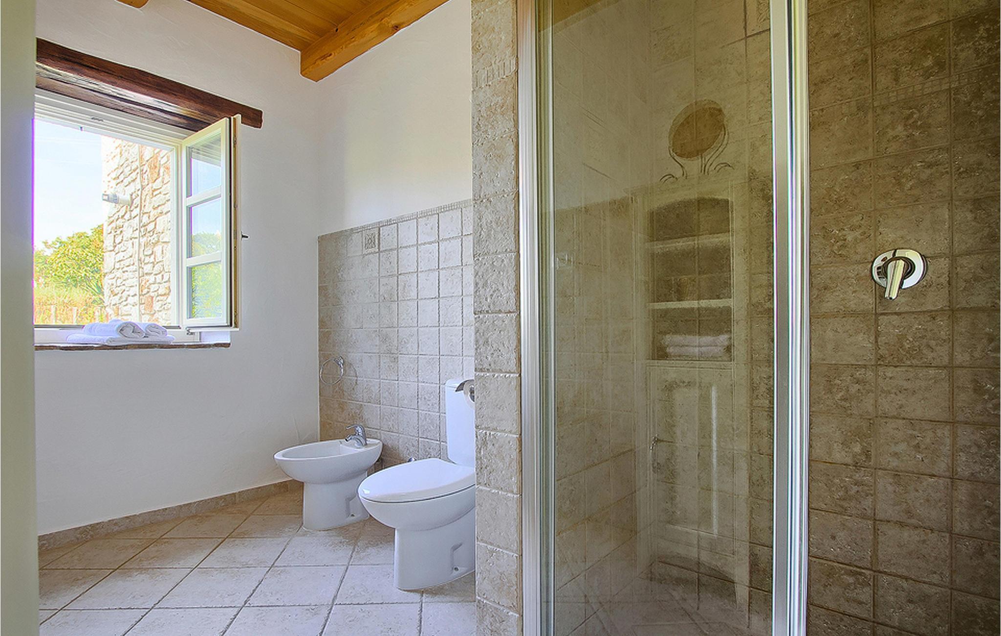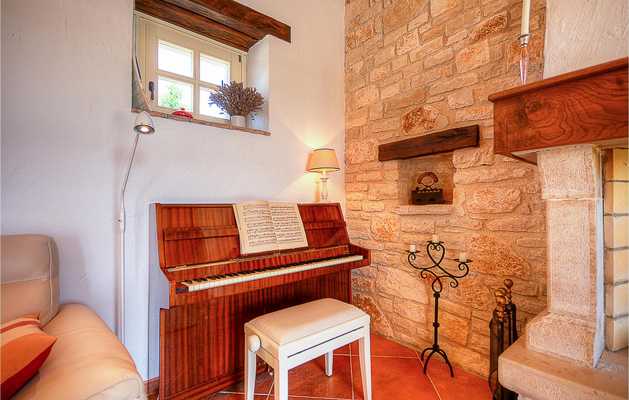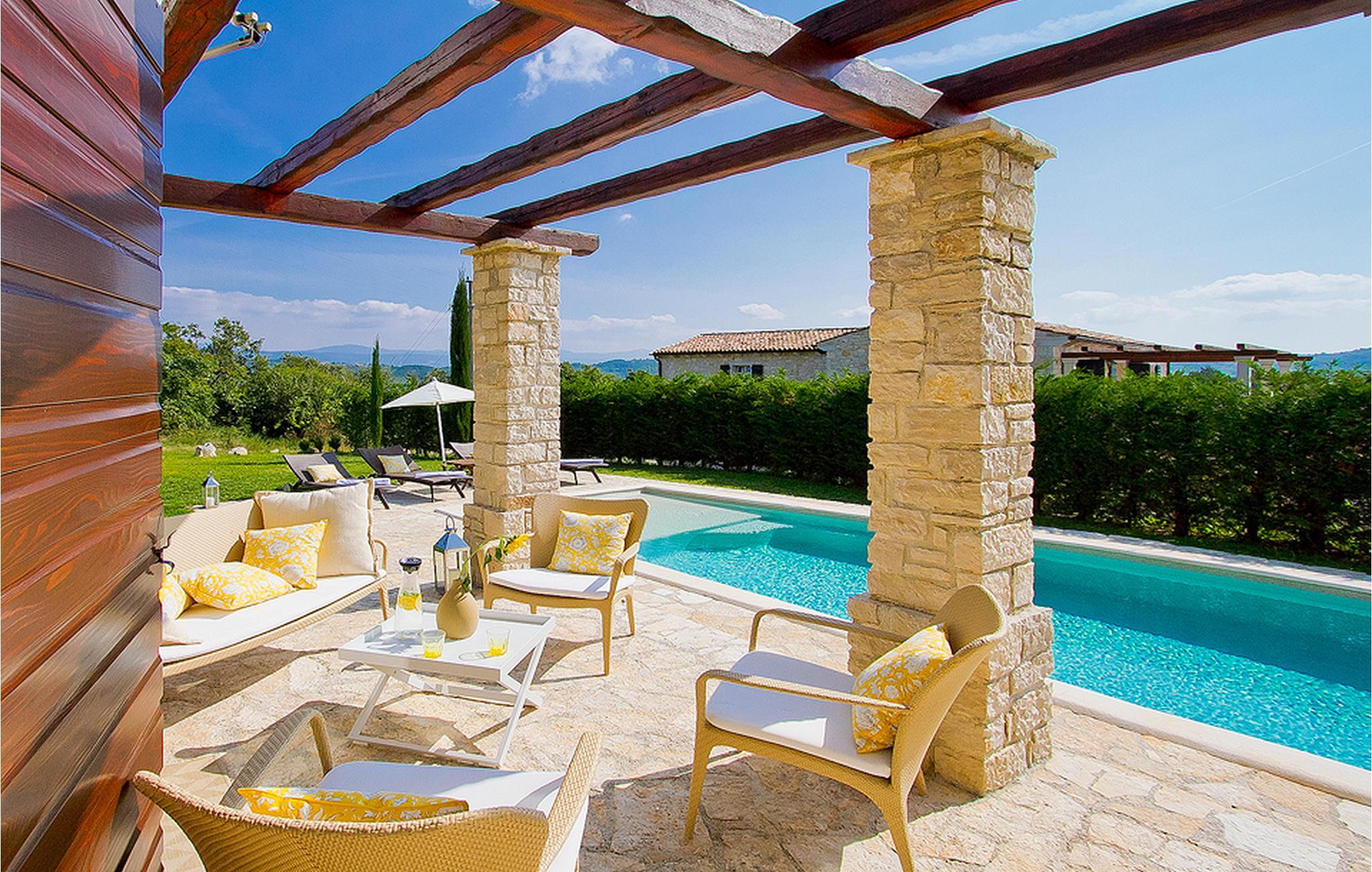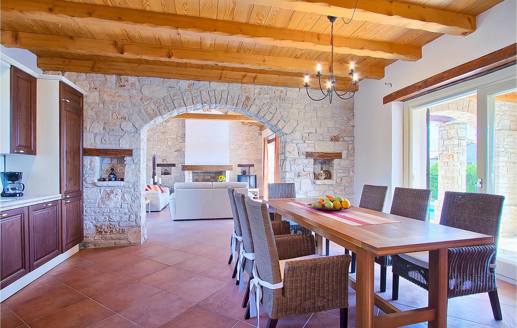 In der wunderschönen mit Holzbalken geschmackvoll dekorierten Villa gibt es vier Schlafzimmer, drei Bäder und ein schönes Wohnzimmer mit angeschlossener Küche und Essbereich. Das Erdgeschoss verfügt über Zugang zum Pool, charmanten grünen Garten und gemütlicher Essecke. Hier können Sie leckere Mahlzeiten zubereiten oder einfach ein Glas guten istrischen Weins genießen. Der große private Pool 40 m2 ist ausschließlich für die Nutzung während Ihres Aufenthaltes in dieser schönen Villa. Aus der Terrasse im Obergeschoss können Sie den herrlichen Blick auf die Umgebung genießen. Villa Livia hat einen schönen Garten rund um die Villa. Hier können Sie in der Sonne an bequemen Liegestühlen genießen. Diese Villa bietet einen ruhigen Rückzugsort aus der Hektik des 21. Jahrhunderts und ist doch gut als Ausgangspunkt, von dem Sie alle Freuden, die Istrien zu bieten hat, besuchen können. Jugendgruppen sind nicht erlaubt.