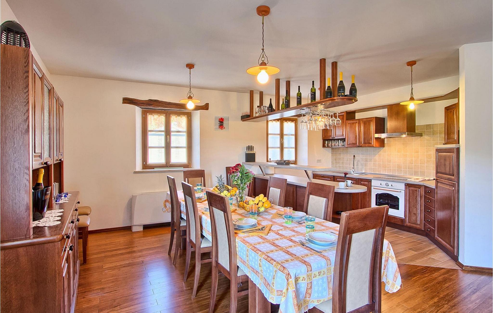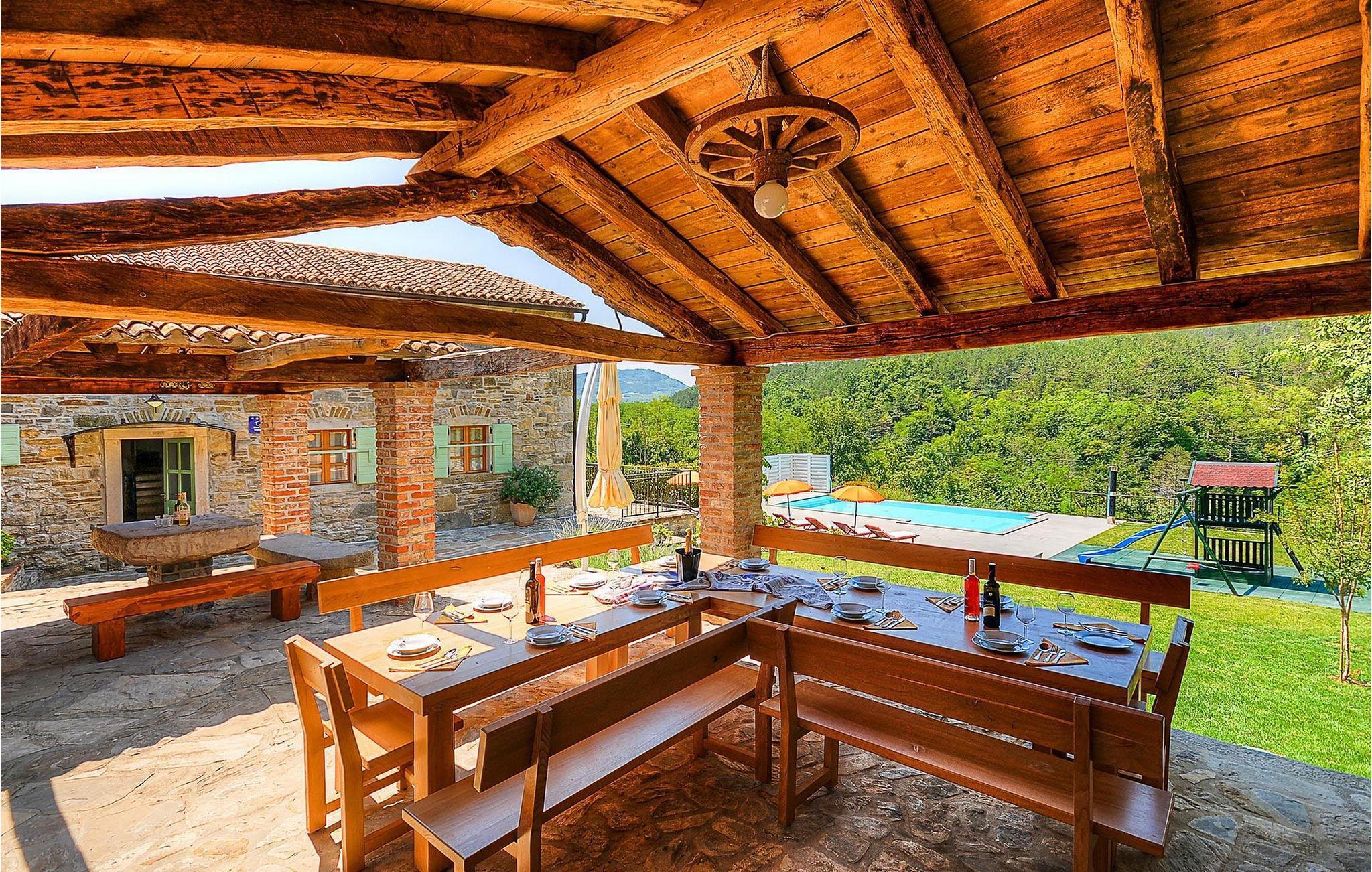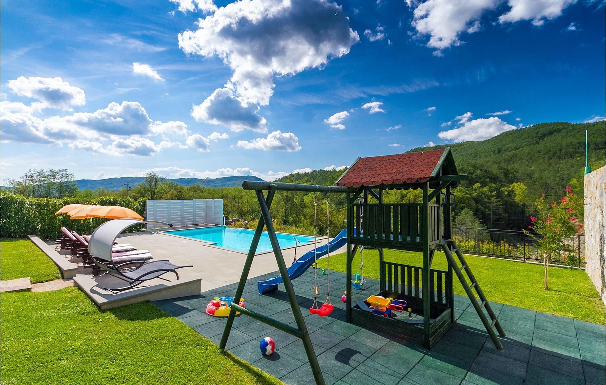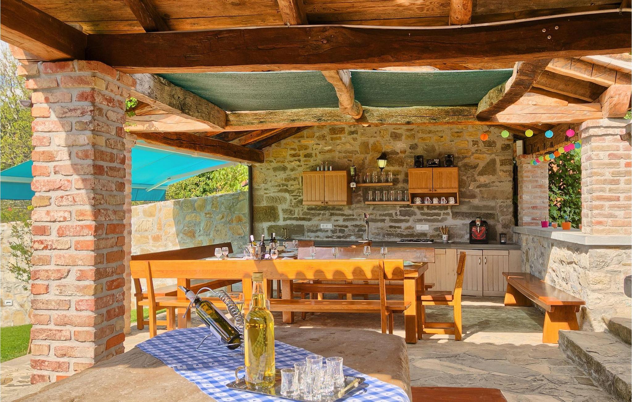 Draußen finden Sie einen verlockenden Infinity-Pool, schönen Garten, großen Außenessbereich und Küche mit Grill. Während sie sorglos den Blick auf die umliegenden hundertjährigen Wälder genießen, können Ihre Kinder Spaß auf Ihrem eigenen Spielplatz haben.Die Villa liegt in der altertümlichen Stadt Buzet im Norden Istriens, in der Nähe der Grenze zu Slowenien. Ihr mittelalterliches Stadtzentrum liegt auf einem Hügel über dem fruchtbaren Tal des längsten Flusses Istriens, der Mirna.