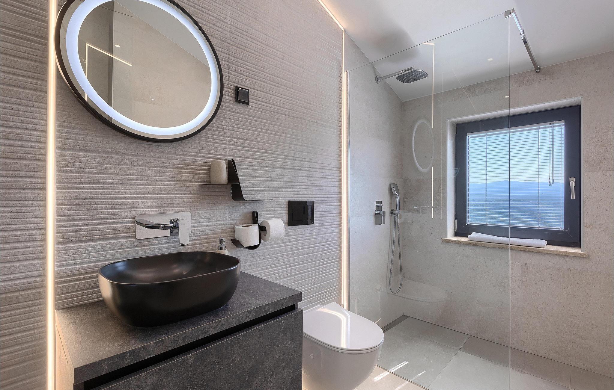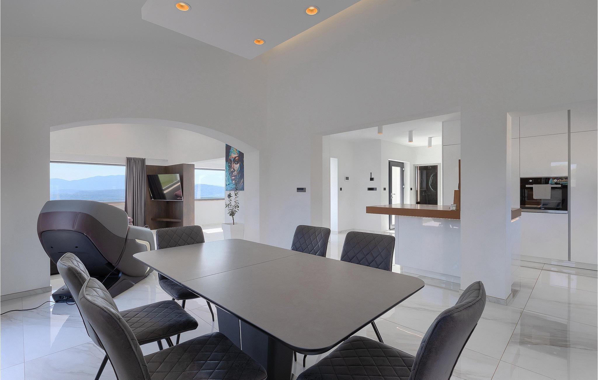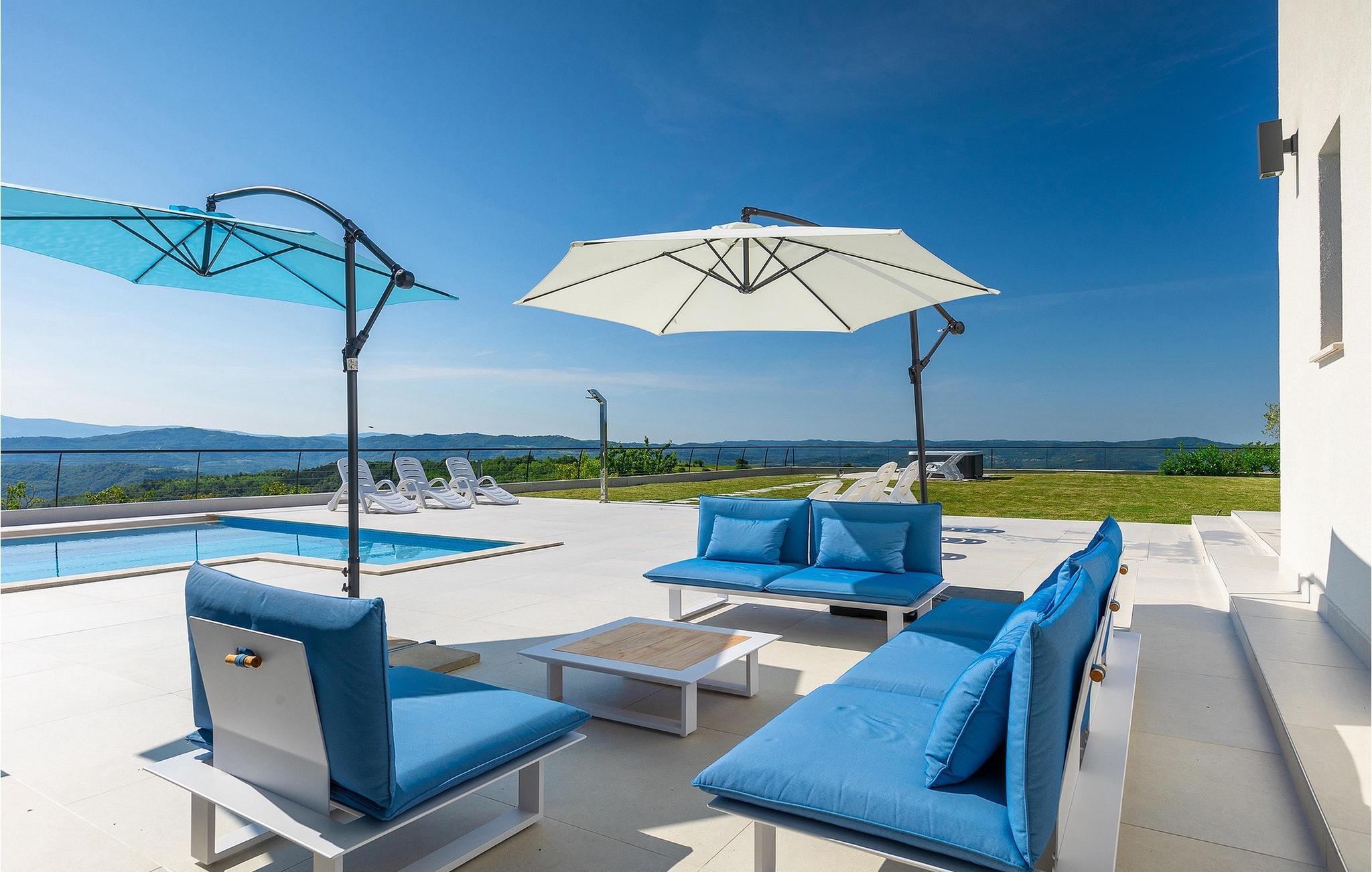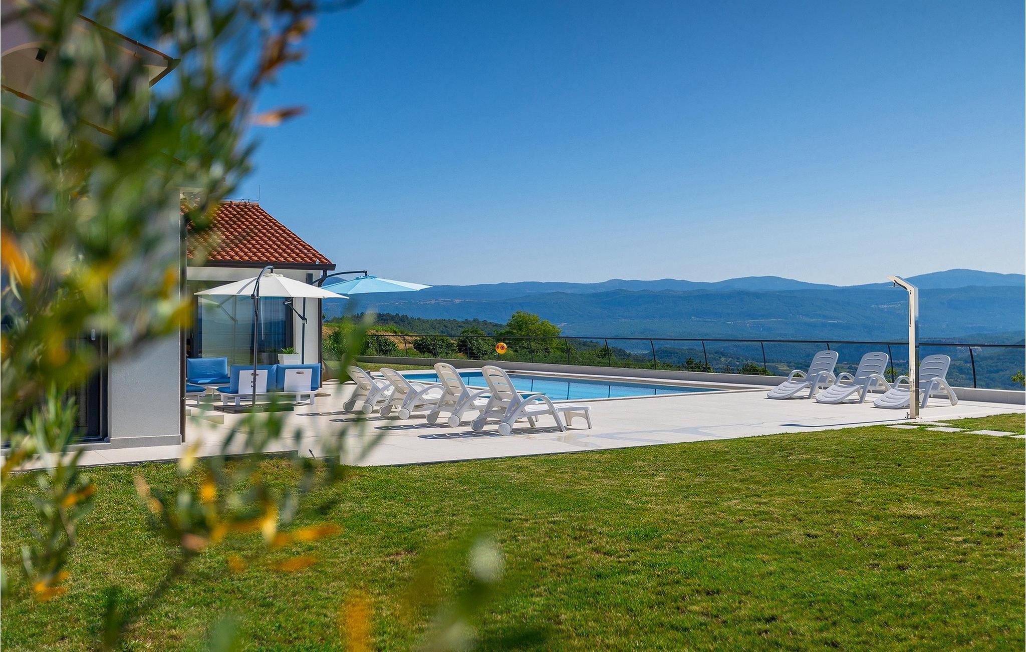 Villa Panorama ist eine wunderschöne moderne Villa für einen erholsamen Urlaub in der ruhigen Umgebung unberührter Natur. Diese Villa ist ideal für Liebhaber eines aktiven Urlaubs. Die Villa bietet einen privaten Pool mit Hydromassage von 60 m2, ein Fitnessstudio im Erdgeschoss der Villa, Tischtennis, Badminton, Darts... Outdoor-Spaß erwartet die jüngsten Gäste auf dem Kinderspielplatz mit Rutsche, Schaukel und Klettergerüst. Treffen Sie sich mit Ihren Lieben am Esstisch im Freien mit 8 Sitzplätzen und genießen Sie die auf dem Grill zubereiteten Mahlzeiten. Im Inneren der Villa finden Sie einen offenen Raum mit 2 Wohnzimmern, einer voll ausgestatteten Küche und einem Esszimmer für 8 Personen. Jedes Zimmer ist mit einer wunderschönen Aussicht dekoriert, als wäre es mit einem Pinsel gemalt worden, was den Namen der Villa rechtfertigt. Entspannen Sie sich im Wohnzimmer auf dem Massagesessel. Außerhalb der Villa finden Sie Entspannung und Erfrischung im schönen Pool mit Liegestühlen oder im Whirlpool im Freien. Genießen Sie das zweite Wohnzimmer voller Tageslicht und mit Blick auf den Pool und die umliegende Landschaft. Die Villa verfügt über 2 Schlafzimmer mit Doppelbetten und eigenem Bad im ersten Stock und ein Schlafzimmer mit Doppelbett und separatem Bad im Erdgeschoss. Verpassen Sie nicht einen Urlaub in der wunderschönen modernen Villa Panorama, wo Sie jeden Tag von einer märchenhaften Aussicht verzaubert werden und in einem charmanten istrischen Dorf mit seinen Inhalten entspannen können. Die Villa Panorama befindet sich im istrischen Dorf Vrh, in der Nähe von Buzet. Der Name des Ortes deutet auf seine Lage auf einem Hügel nördlich des Butoniga-Sees hin. Von der Spitze des Glockenturms aus haben Sie sicherlich den schönsten Panoramablick auf Istrien. Neben der schönen Aussicht wird Sie auch das gastronomische Angebot dieser Region begeistern. Buzet ist die Heimat der berühmten schwarzen und weißen Trüffel. Probieren Sie es auf einem örtlichen Trüffelfest oder gehen Sie mit den Einheimischen auf Trüffelsuche. Setzen Sie Ihr gastronomisches Vergnügen auf den Spuren von Olivenöl und Wein fort und lassen Sie sich in zahlreichen Tavernen und Restaurants mit traditionellen Gerichten verwöhnen, die von den Gastgebern mit Liebe zubereitet werden. Entdecken Sie das reiche historische und kulturelle Erbe auf den “Straßen des glagolitischen Volkes”. Für Abenteurer bietet dieses Gebiet zahlreiche Wander- und Radwege, Paragliding, Freeclimbing sowie versteckte Höhlen und Grotten. Schwimmen Sie am schönsten Strand mit kristallklarem Meer in Novigrad.