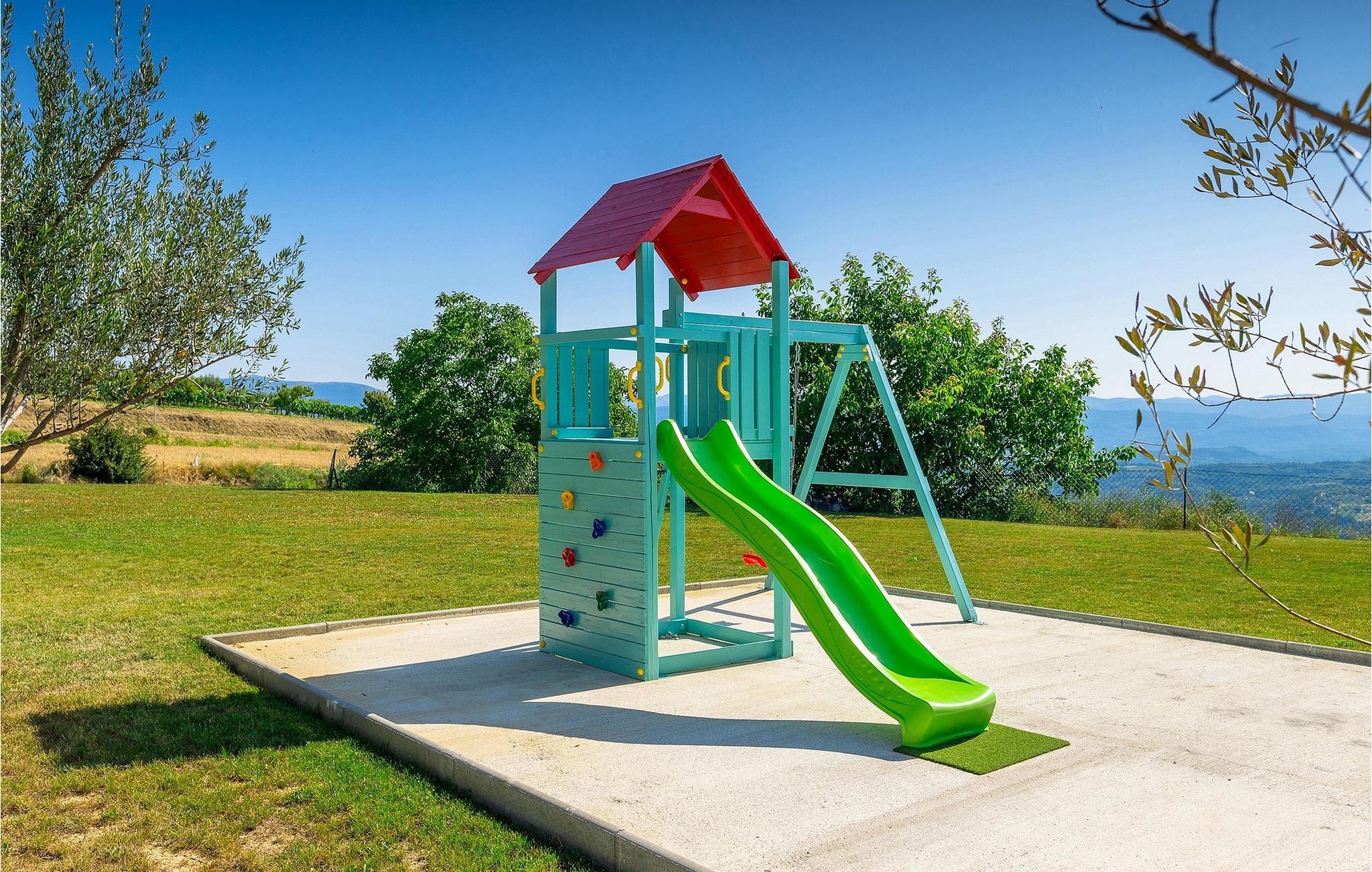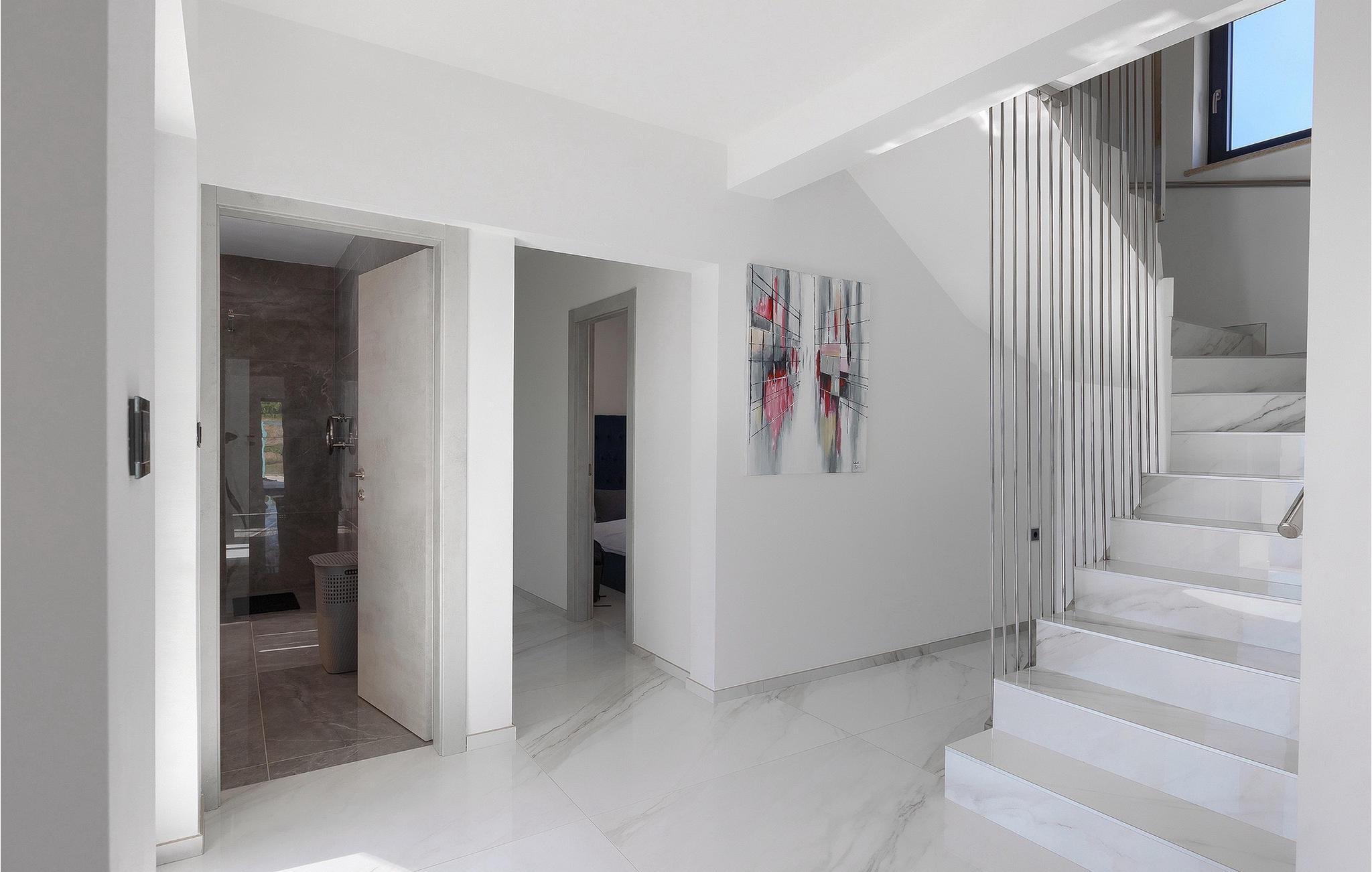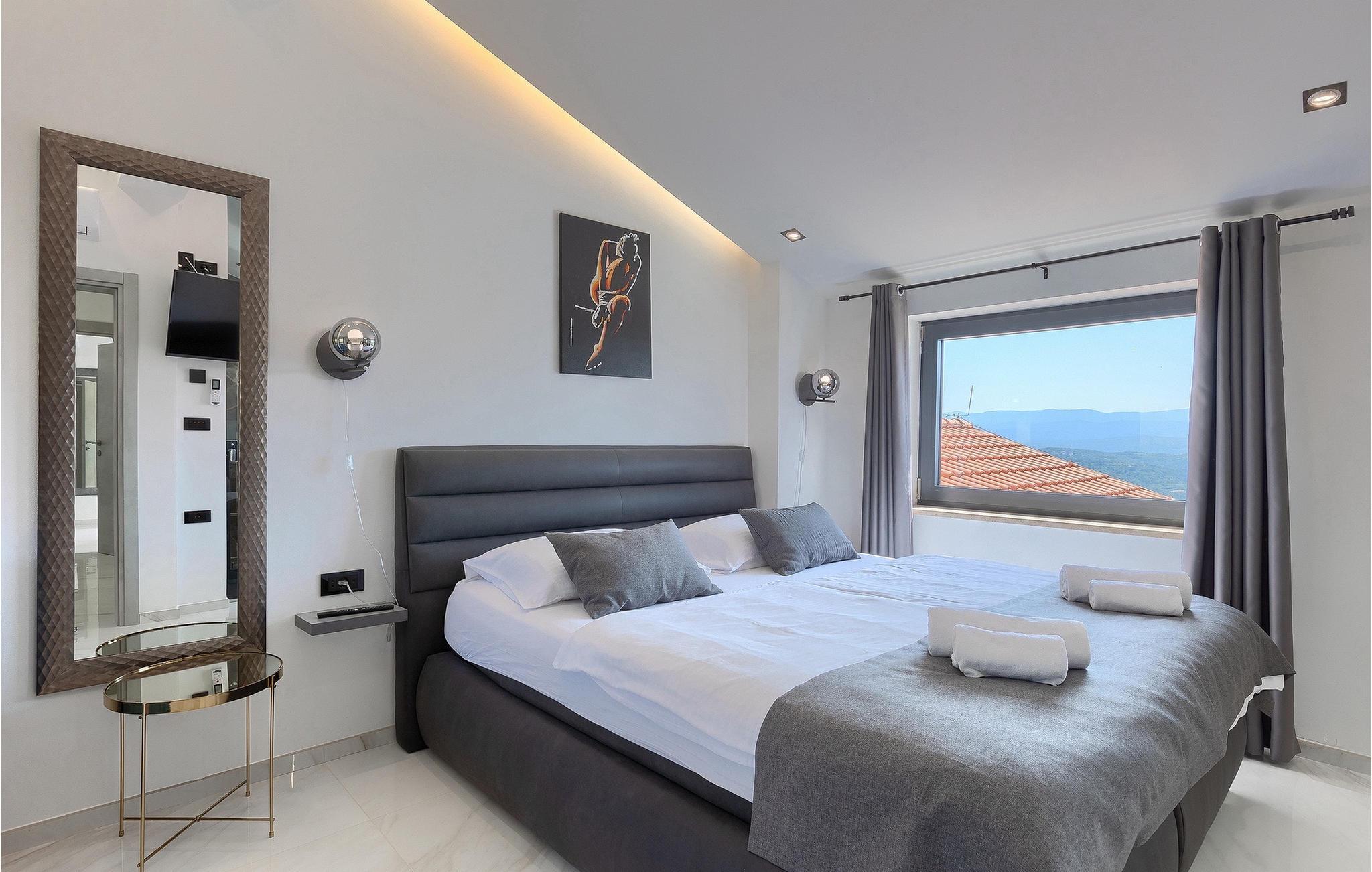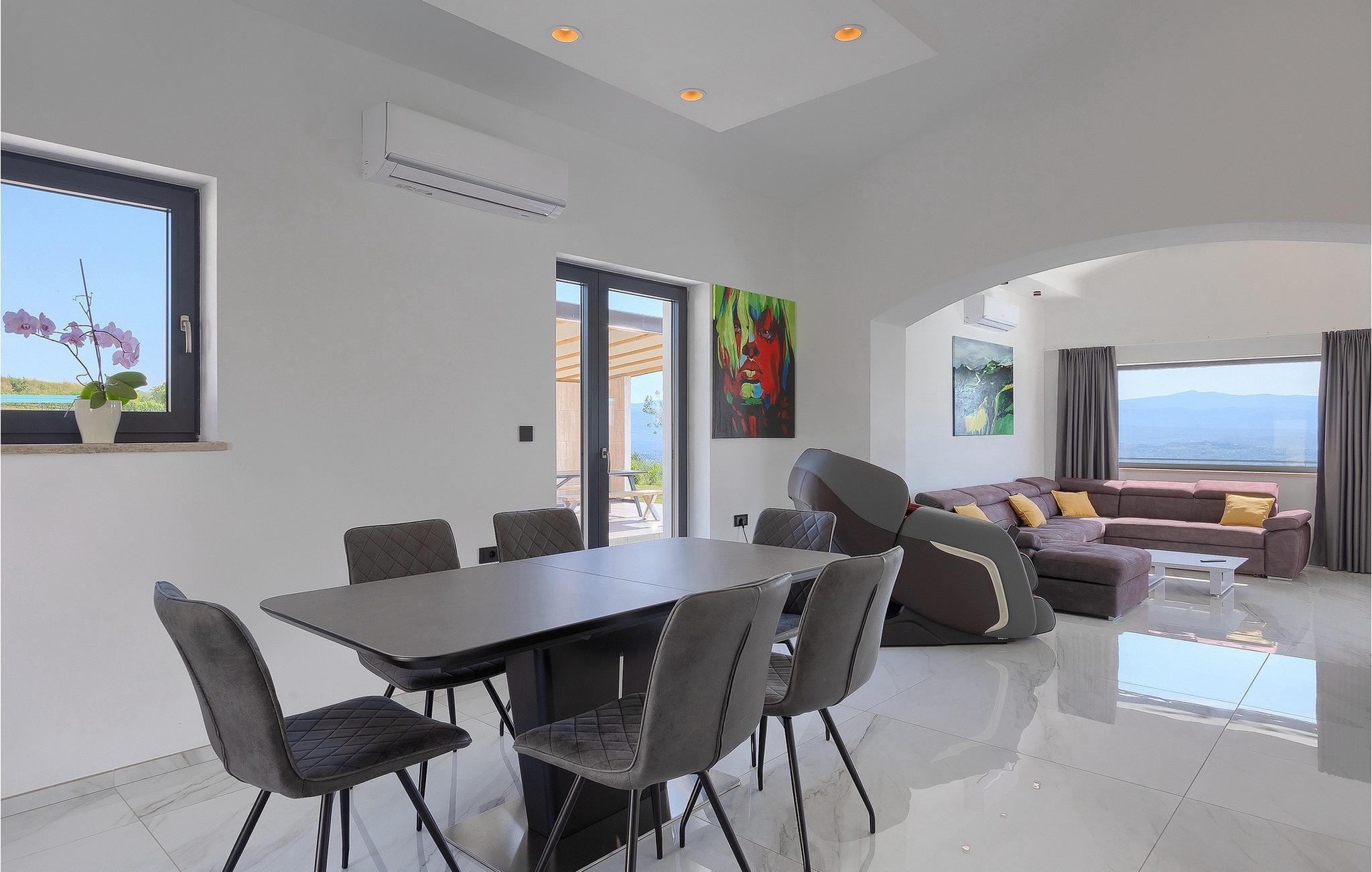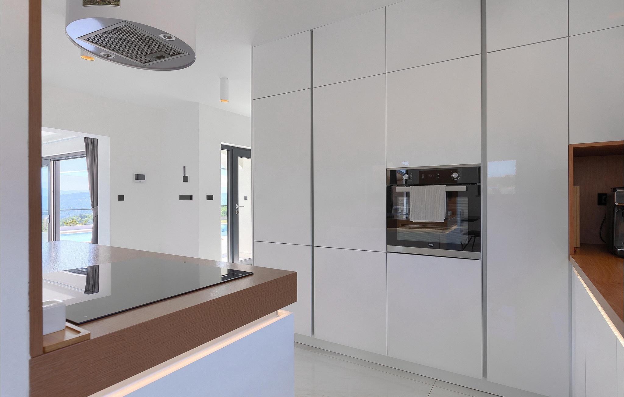 Villa Panorama ist eine wunderschöne moderne Villa für einen erholsamen Urlaub in der ruhigen Umgebung unberührter Natur. Diese Villa ist ideal für Liebhaber eines aktiven Urlaubs. Die Villa bietet einen privaten Pool mit Hydromassage von 60 m2, ein Fitnessstudio im Erdgeschoss der Villa, Tischtennis, Badminton, Darts... Outdoor-Spaß erwartet die jüngsten Gäste auf dem Kinderspielplatz mit Rutsche, Schaukel und Klettergerüst. Treffen Sie sich mit Ihren Lieben am Esstisch im Freien mit 8 Sitzplätzen und genießen Sie die auf dem Grill zubereiteten Mahlzeiten. Im Inneren der Villa finden Sie einen offenen Raum mit 2 Wohnzimmern, einer voll ausgestatteten Küche und einem Esszimmer für 8 Personen. Jedes Zimmer ist mit einer wunderschönen Aussicht dekoriert, als wäre es mit einem Pinsel gemalt worden, was den Namen der Villa rechtfertigt. Entspannen Sie sich im Wohnzimmer auf dem Massagesessel. Außerhalb der Villa finden Sie Entspannung und Erfrischung im schönen Pool mit Liegestühlen oder im Whirlpool im Freien. Genießen Sie das zweite Wohnzimmer voller Tageslicht und mit Blick auf den Pool und die umliegende Landschaft. Die Villa verfügt über 2 Schlafzimmer mit Doppelbetten und eigenem Bad im ersten Stock und ein Schlafzimmer mit Doppelbett und separatem Bad im Erdgeschoss. Verpassen Sie nicht einen Urlaub in der wunderschönen modernen Villa Panorama, wo Sie jeden Tag von einer märchenhaften Aussicht verzaubert werden und in einem charmanten istrischen Dorf mit seinen Inhalten entspannen können. Die Villa Panorama befindet sich im istrischen Dorf Vrh, in der Nähe von Buzet. Der Name des Ortes deutet auf seine Lage auf einem Hügel nördlich des Butoniga-Sees hin. Von der Spitze des Glockenturms aus haben Sie sicherlich den schönsten Panoramablick auf Istrien. Neben der schönen Aussicht wird Sie auch das gastronomische Angebot dieser Region begeistern. Buzet ist die Heimat der berühmten schwarzen und weißen Trüffel. Probieren Sie es auf einem örtlichen Trüffelfest oder gehen Sie mit den Einheimischen auf Trüffelsuche. Setzen Sie Ihr gastronomisches Vergnügen auf den Spuren von Olivenöl und Wein fort und lassen Sie sich in zahlreichen Tavernen und Restaurants mit traditionellen Gerichten verwöhnen, die von den Gastgebern mit Liebe zubereitet werden. Entdecken Sie das reiche historische und kulturelle Erbe auf den “Straßen des glagolitischen Volkes”. Für Abenteurer bietet dieses Gebiet zahlreiche Wander- und Radwege, Paragliding, Freeclimbing sowie versteckte Höhlen und Grotten. Schwimmen Sie am schönsten Strand mit kristallklarem Meer in Novigrad.