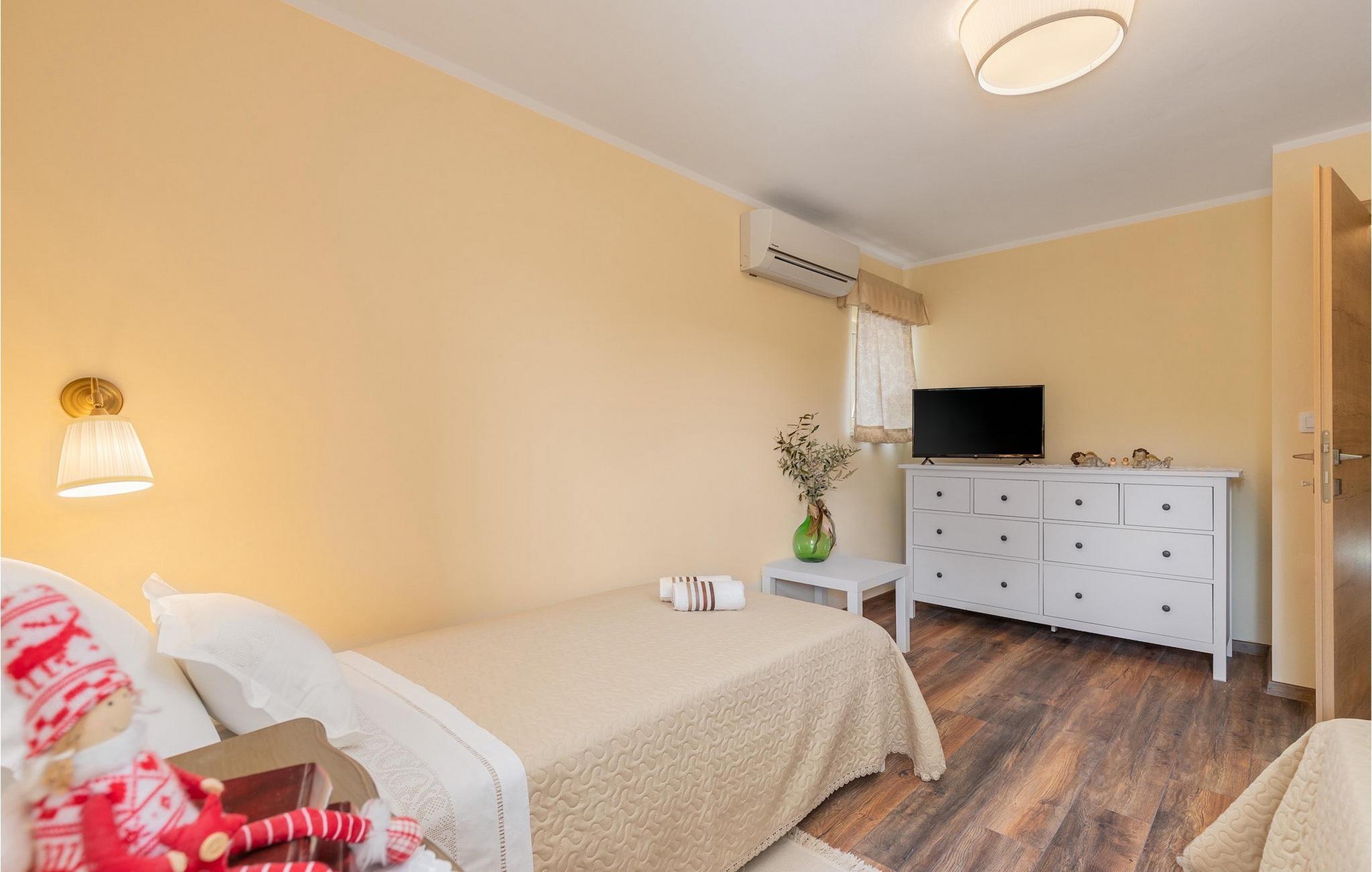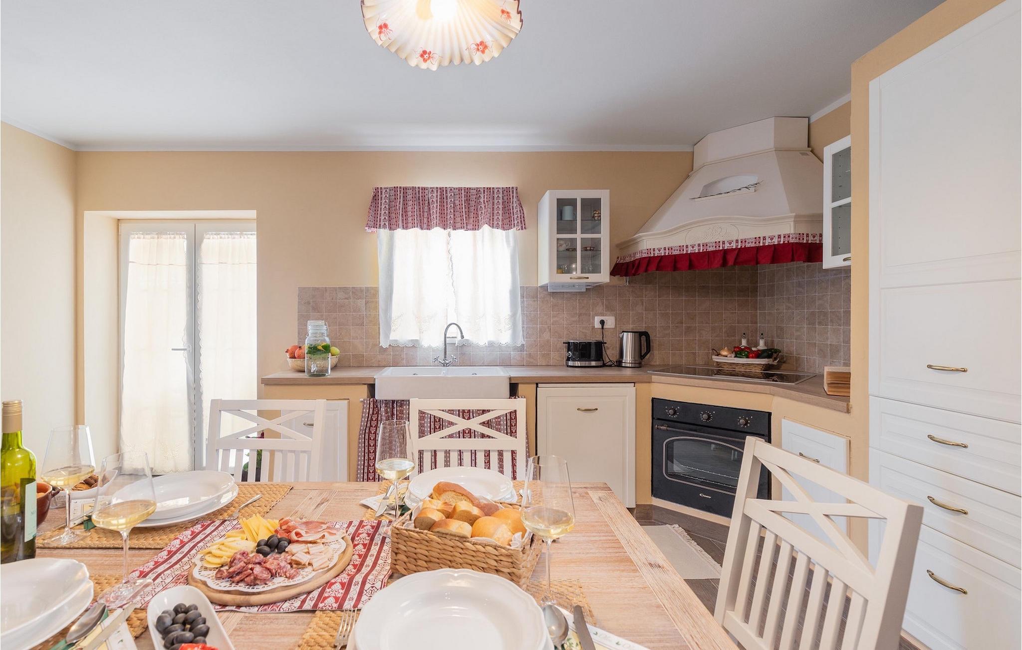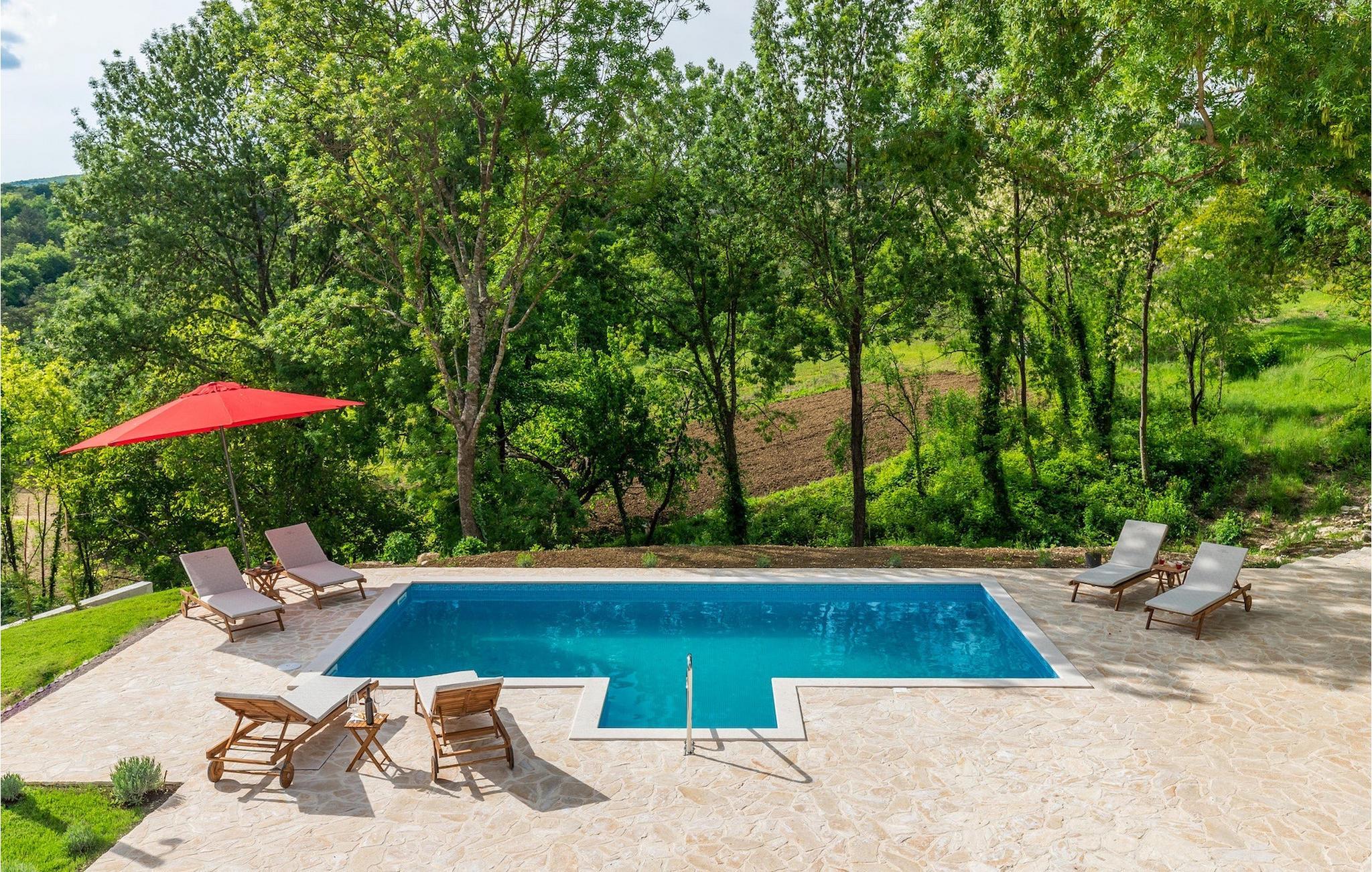 Die schöne Stein Villa Casa di nonno Giovanni ist die perfekte Wahl für einen erholsamen Urlaub weg von der Hektik der Stadt in einer authentischen istrischen Umgebung. Die Villa ist geeignet für einen Urlaub mit Familie, Freunden und Haustieren. Beginnen Sie Ihren erholsamen Urlaub im erfrischenden 32 m2 großen Swimmingpool und genießen Sie ein Sonnenbad auf den eleganten Liegestühlen am Pool. Zu den Aktivitäten, die in der Villa angeboten werden, gehören Trampolin, für die Kleinen und die Großen, Badminton und Darts. Ein Holzkohlegrill und ein überdachter Essbereich im Freien für 8 Personen stehen zu Ihrer Verfügung. Lassen Sie den Tag im Außen-Whirlpool unter dem Sternenhimmel ausklingen. Obwohl der typisch istrische Stein von außen den Eindruck von Kälte vermittelt, herrscht im Inneren der Villa eine Wärme wie im eigenen Heim. Im Erdgeschoss der Villa gibt es eine voll ausgestattete Küche, ein Esszimmer mit 8 Plätzen, ein Wohnzimmer und ein Badezimmer. Im ersten Stock befinden sich 2 Schlafzimmer und ein separates Badezimmer. Das erste Schlafzimmer mit Zugang zum Balkon ist mit einem Doppelbett ausgestattet, während das zweite Schlafzimmer ein Doppelbett hat. Im zweiten Stock der Villa befindet sich ein drittes Schlafzimmer mit eigenem Bad und einem Balkon, auf dem Sie morgens bei einer Tasse Kaffee die schöne Aussicht auf die Natur genießen können. Alle Schlafzimmer sind klimatisiert und verfügen über einen Fernseher. Schaffen Sie unvergessliche Erinnerungen mit Ihren Liebsten in der einheimischen Villa Casa di nonno Giovanni. Buzet ist eine Stadt in Istrien im Tal des Flusses Mirna an der Grenze zu Slowenien. Lernen Sie diese Stadt der Trüffel mit ihrer jahrhundertealten Architektur und bezaubernden Aussicht kennen. Istrische Spezialitäten mit Trüffeln, Olivenöl, hausgemachtem Käse und Prosciutto sind Aromen, an die man sich in Buzet erinnert. Neben dem gastronomischen Angebot bietet Buzet auch zahlreiche Festivals und Sportveranstaltungen sowie großzügige Gastgeber. Wenn Sie ein Fan von Aktivurlaub sind, erkunden Sie diese Gegend auf zahlreichen Wander- und Radwegen. Wir empfehlen Tagesausflüge nach Hum, der kleinsten Stadt der Welt, Roc, Sovinjak und Vrh. Dann besuchen Sie Cicarija, ein hügeliges Plateau an der Grenze zu Slowenien und Teil des Naturparks Ucka, der Sie einlädt, alle verborgenen Ecken dieser unberührten Natur zu entdecken.