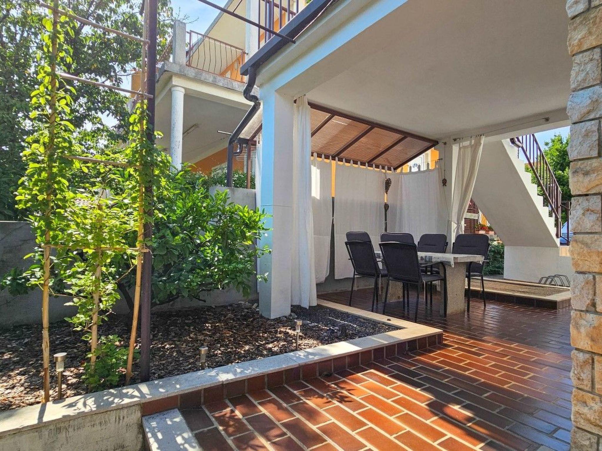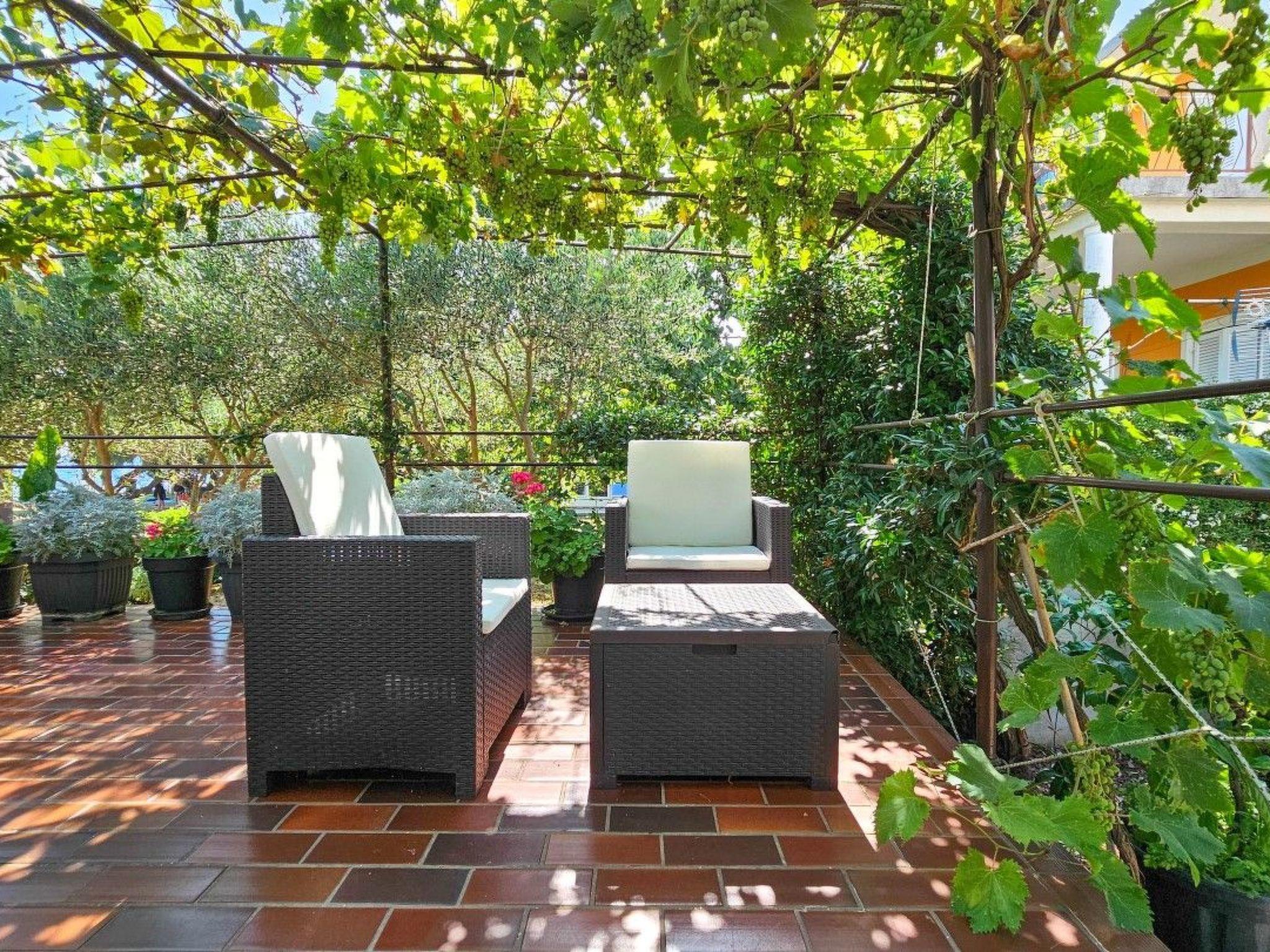 Located on the ground floor of a family house, it offers everything you need for a carefree vacation: a kitchen with a dining table, a bedroom with a double bed and a bathroom with a shower. What makes this apartment special are two private terraces - ideal for enjoying morning coffee, evening wine or simply - for a break in the shade with the sound of the sea.