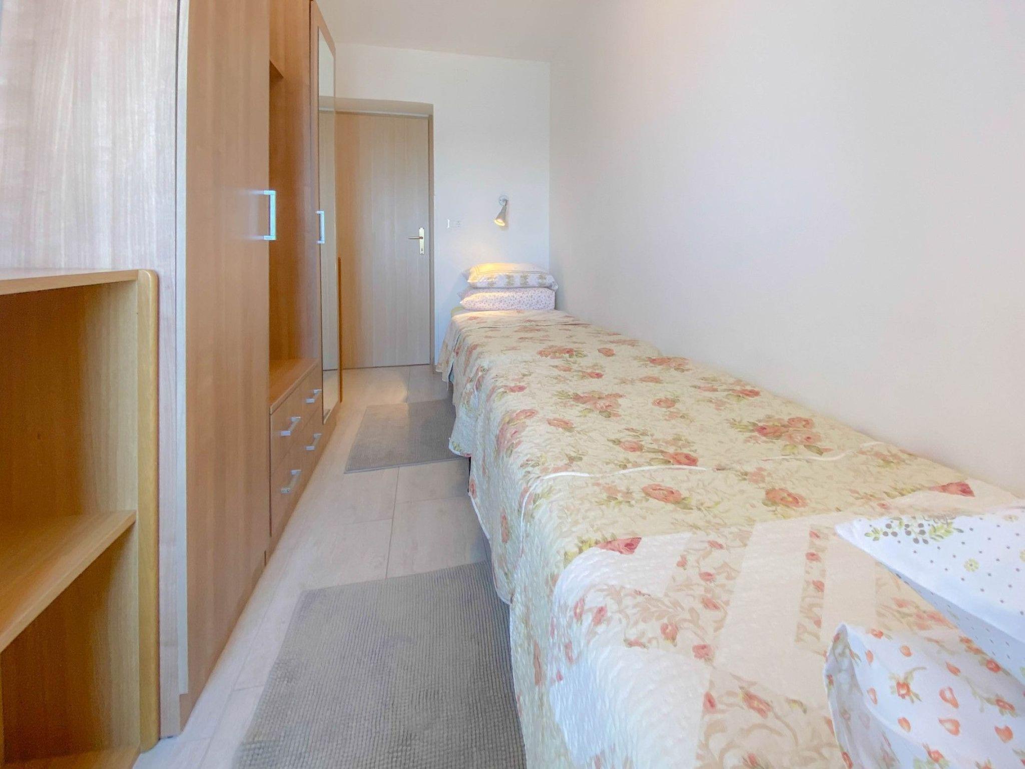Inside, the apartment boasts a functional design to ensure your comfort throughout the stay. It features two well-appointed bedrooms, catering to both couples and families with one room housing a double bed and the other equipped with two single beds. The living area merges seamlessly with the kitchen, creating a cohesive space for relaxation and meal preparation. The kitchen is fully equipped with a gas/electric stove, oven, refrigerator, microwave, and coffee maker, catering to all your culinary needs. Additionally, the convenience of having two bathrooms, each with a shower and WC, adds to the comfort and privacy of your stay. Not to forget, amenities such as air conditioning in parts of the apartment, SAT-TV, internet access, and a washing machine available for your exclusive use, all contribute to a homely and hassle-free holiday experience.